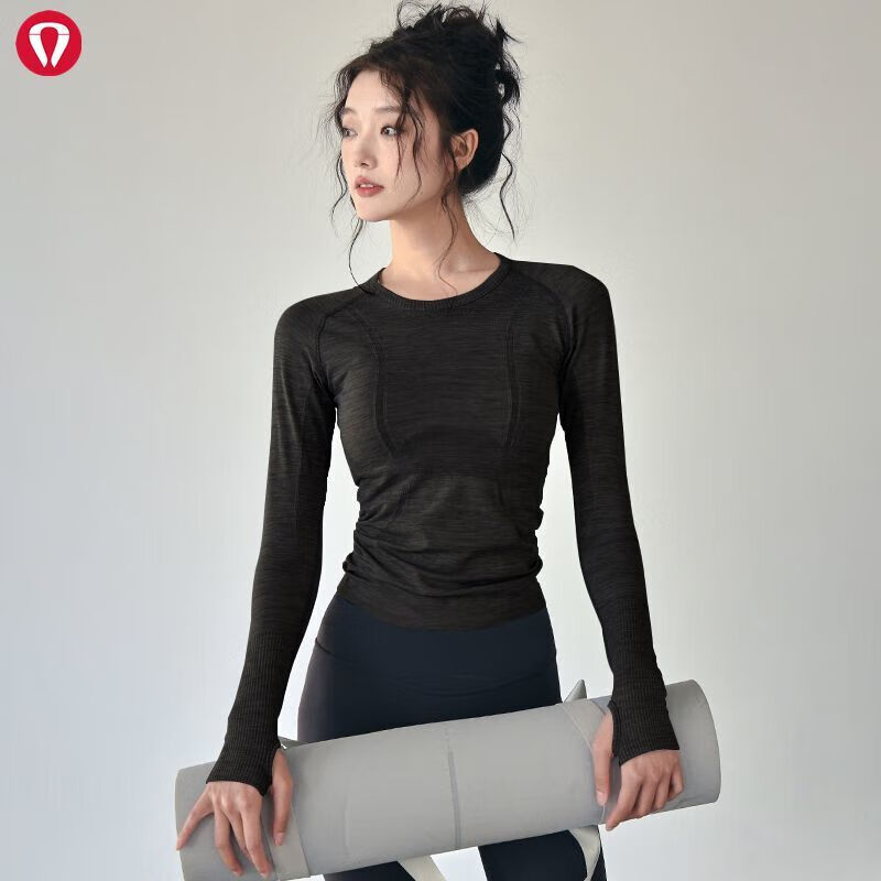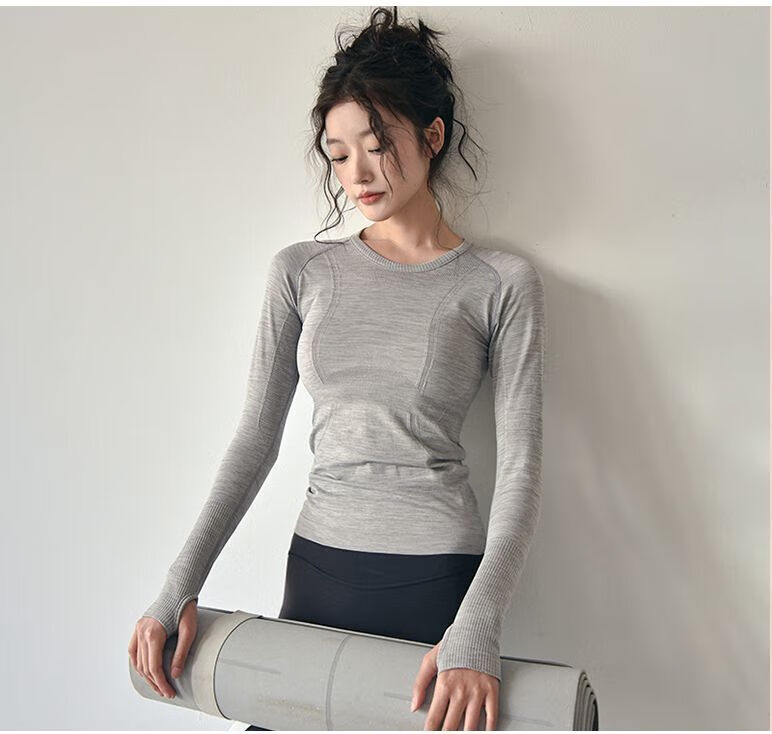Lulu Lulu's same sports top women's spring and summer slim round neck quick-drying running Pilates training fitness wear long CX-516 light gray L