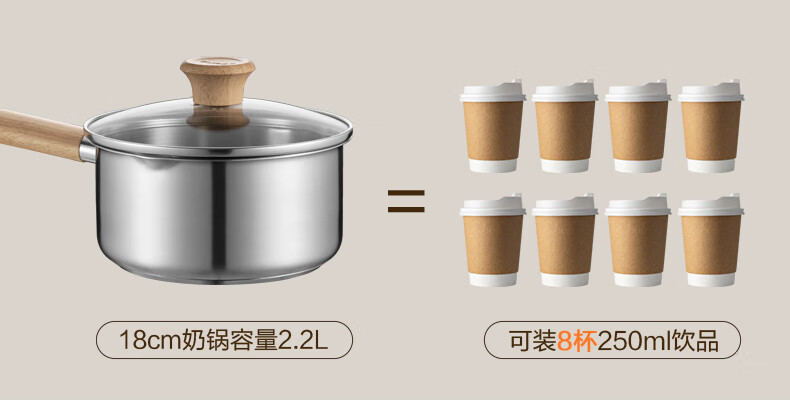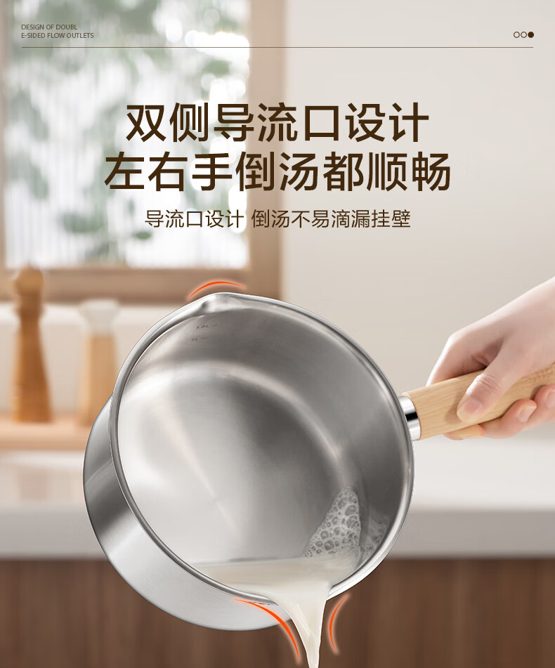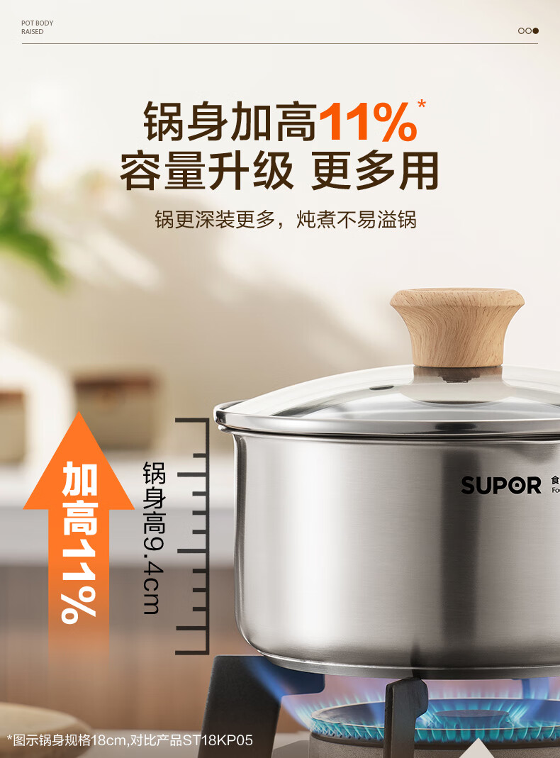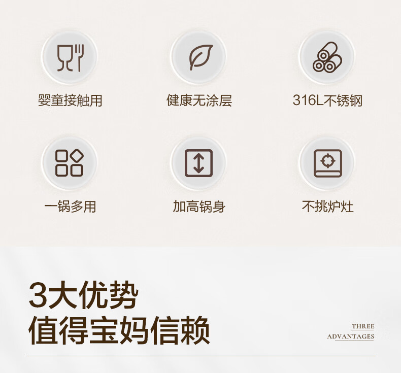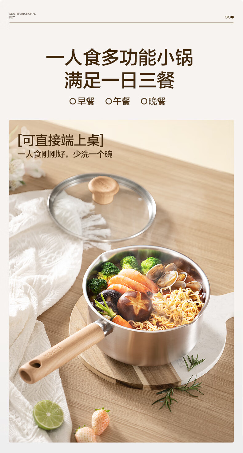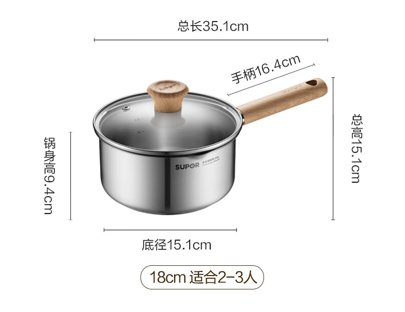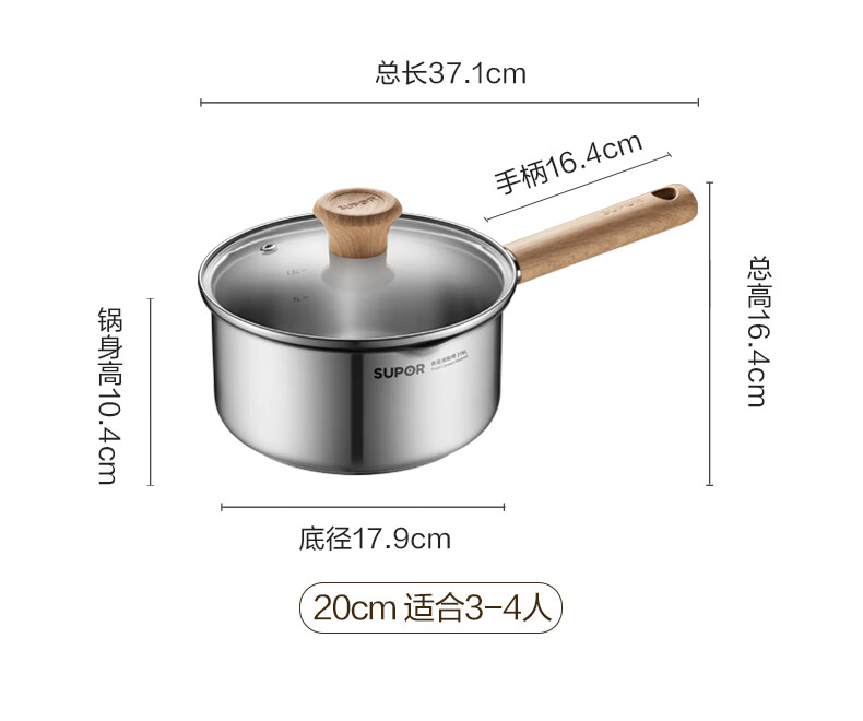 SUPOR milk pot 316L stainless steel baby food supplement stew three-layer thickened double bottom small milk pot induction cooker gas universal 316L stainless steel milk pot + steamer 20cm