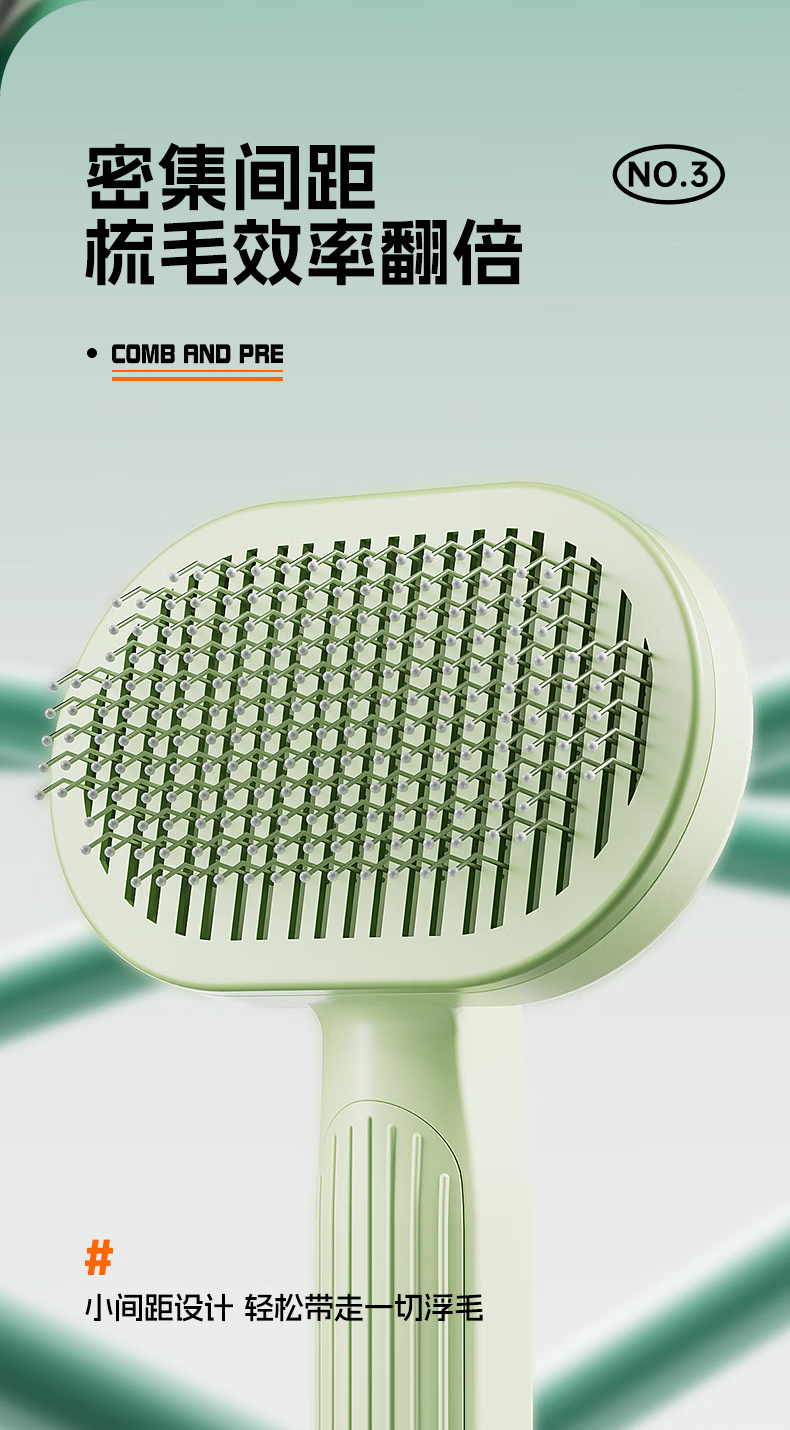 Beichuzhong Cat Comb, cat combing artifact, cat and dog hair cleaning supplies, knotted floating hair removal comb, thinning dense tooth needle comb, green pet floating hair comb, encrypted comb teeth, widened comb surface, deep hair removal, upgraded one-click self-cleaning