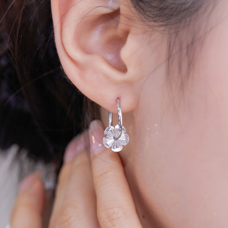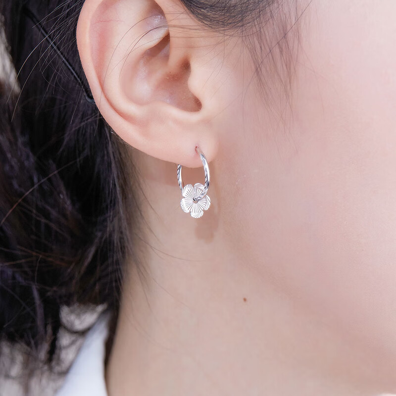 Meluxe platinum earrings for women, PT950 platinum flower earrings, birthday gift for girlfriend, wife, large version, about 3.43g
