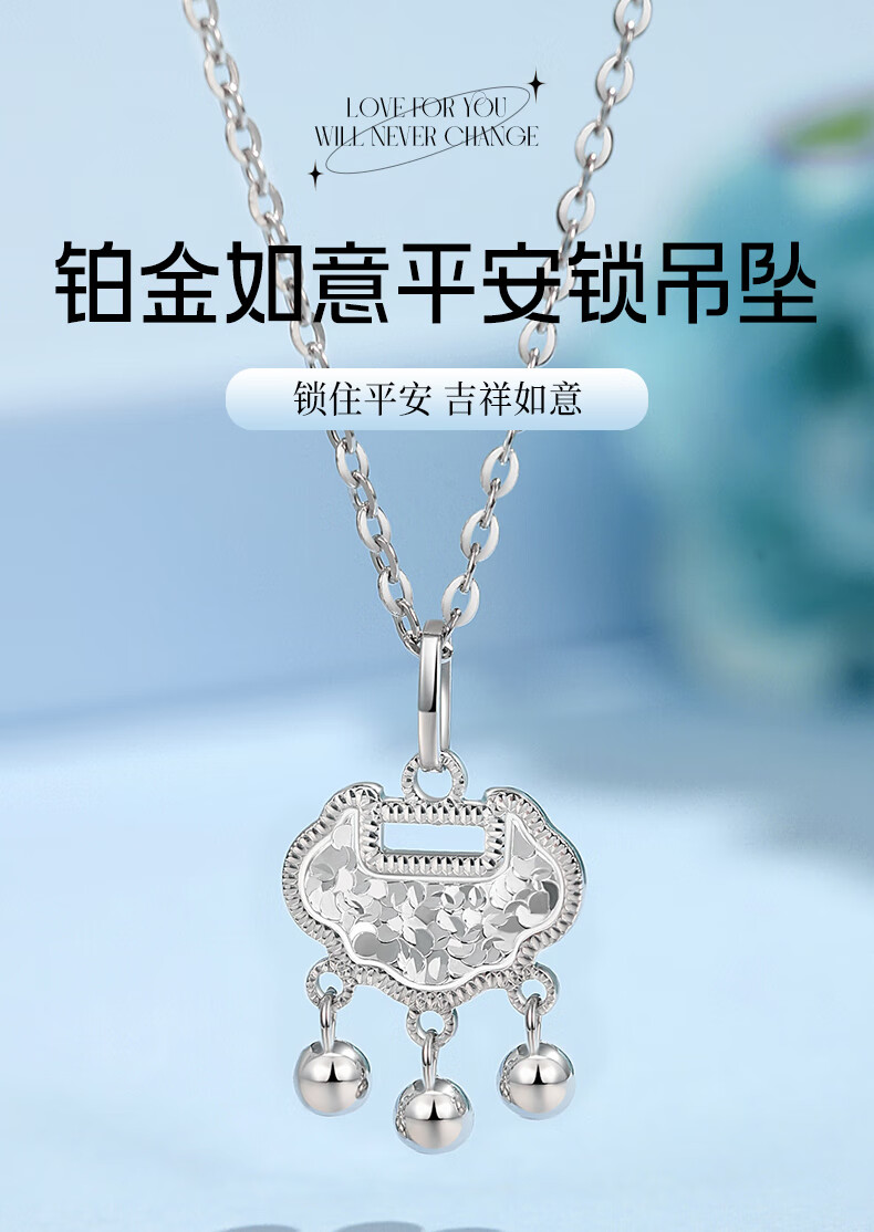 China Gold (CHINA GOLD) Crushed Ice Safe Lock PT950 Platinum Necklace for Women Platinum Pendant Birthday Gift for Girlfriend Pendant*Platinum Weight Approximately 1.9g Free Silver Chain