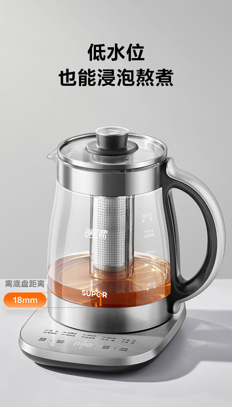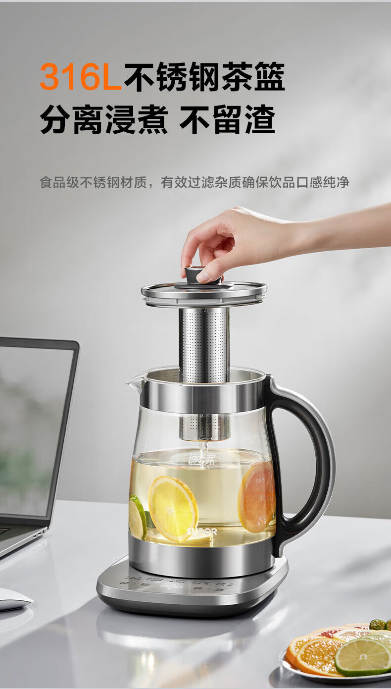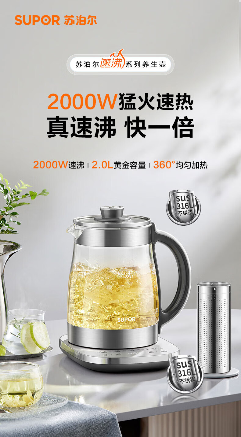 SUPOR health kettle kettle 2L electric kettle tea boiler hot water kettle 316L stainless steel home office glass teapot constant temperature insulation tea kettle with filter quick boiling 316L stainless steel with filter 2L