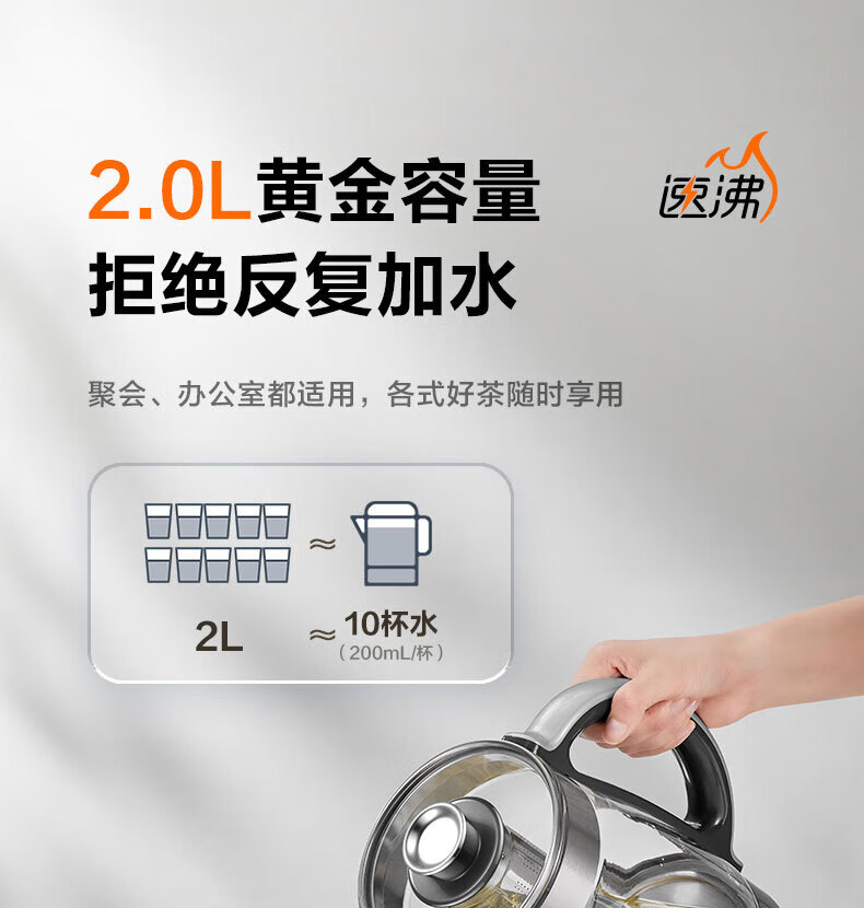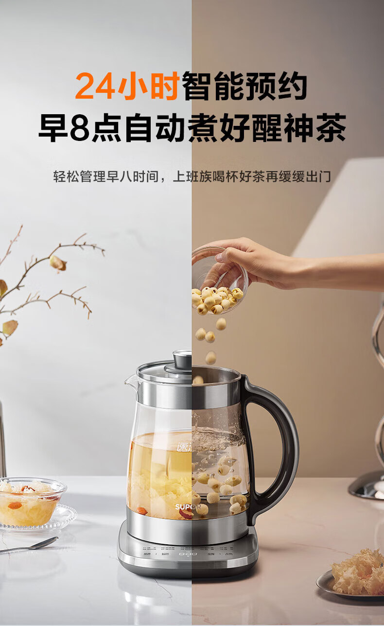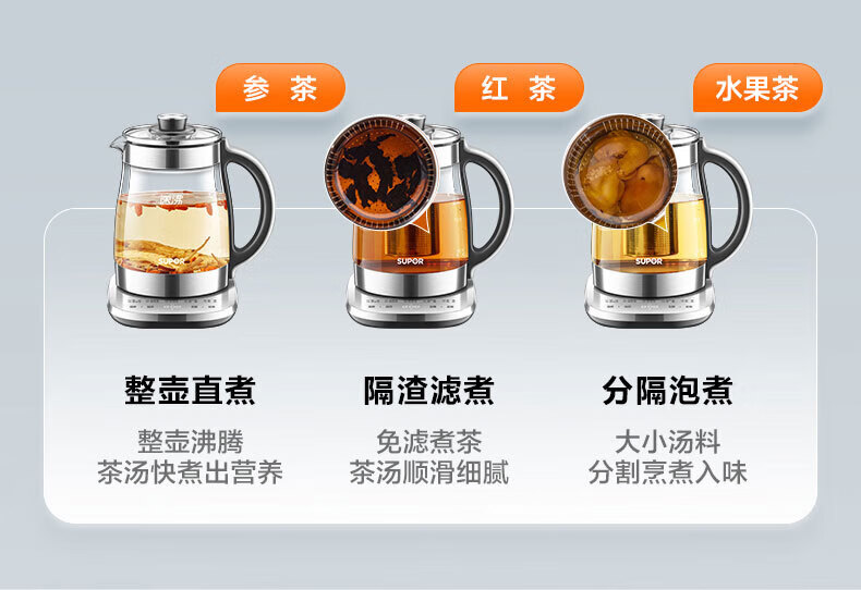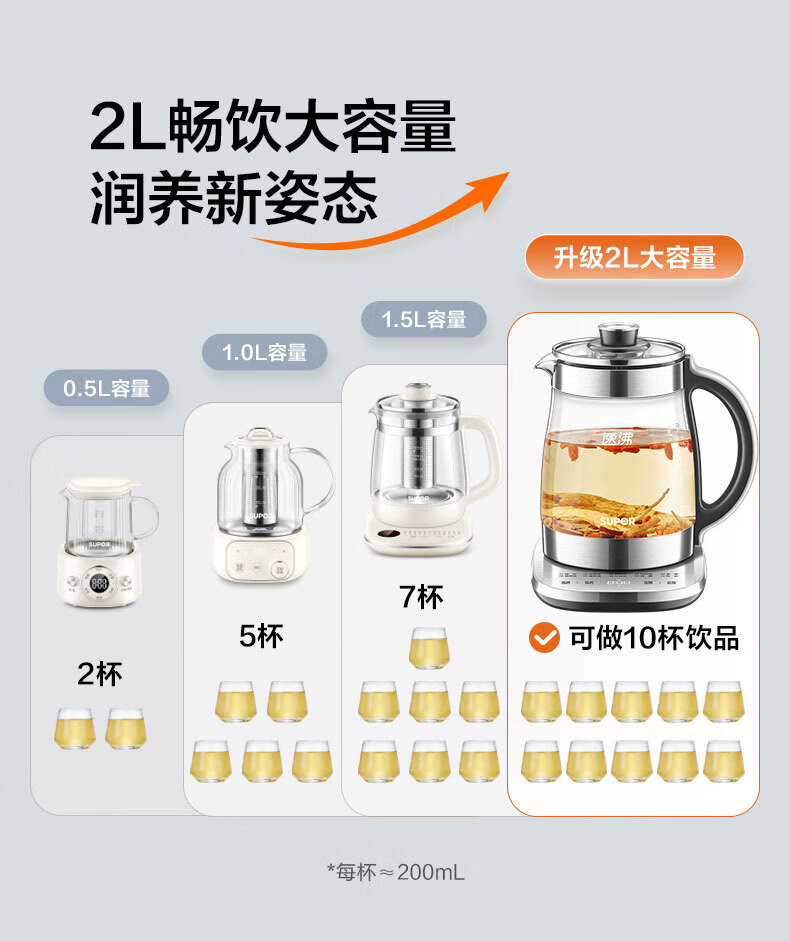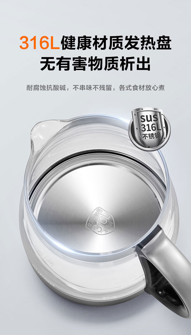 SUPOR health kettle kettle 2L electric kettle tea boiler hot water kettle 316L stainless steel home office glass teapot constant temperature insulation tea kettle with filter quick boiling 316L stainless steel with filter 2L