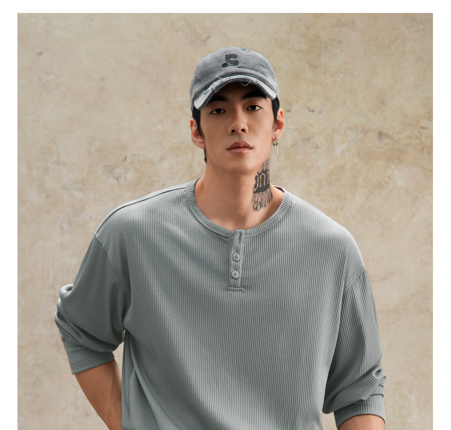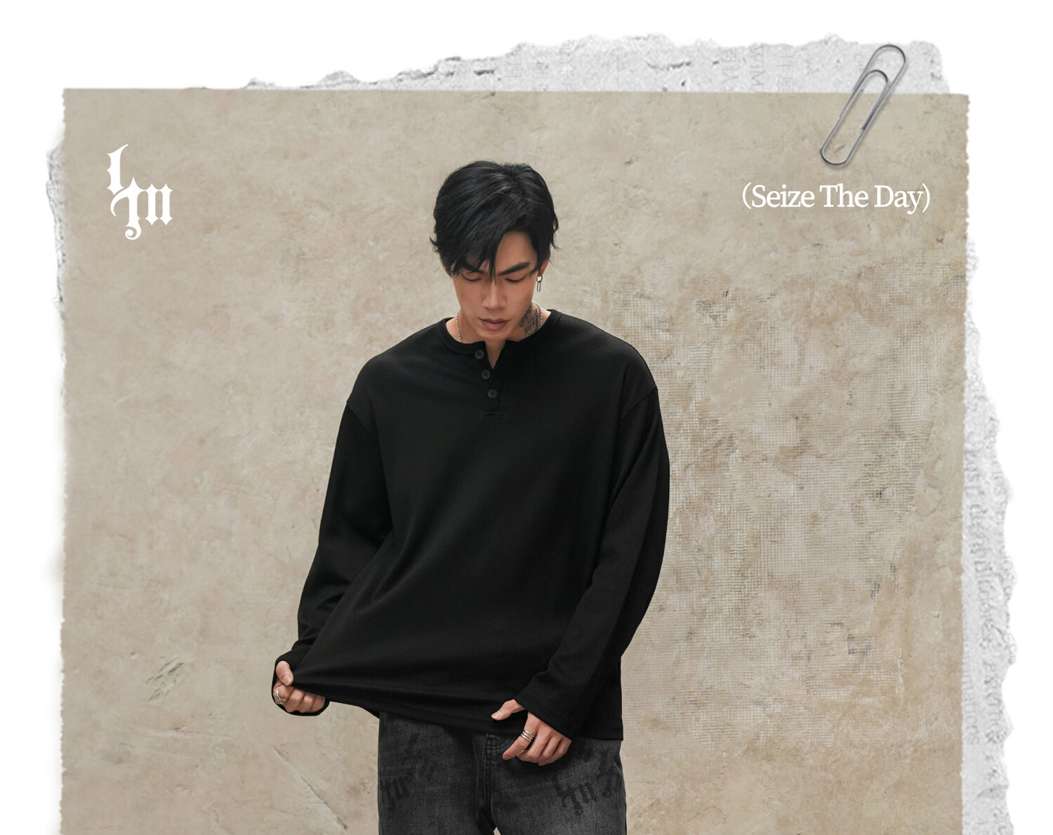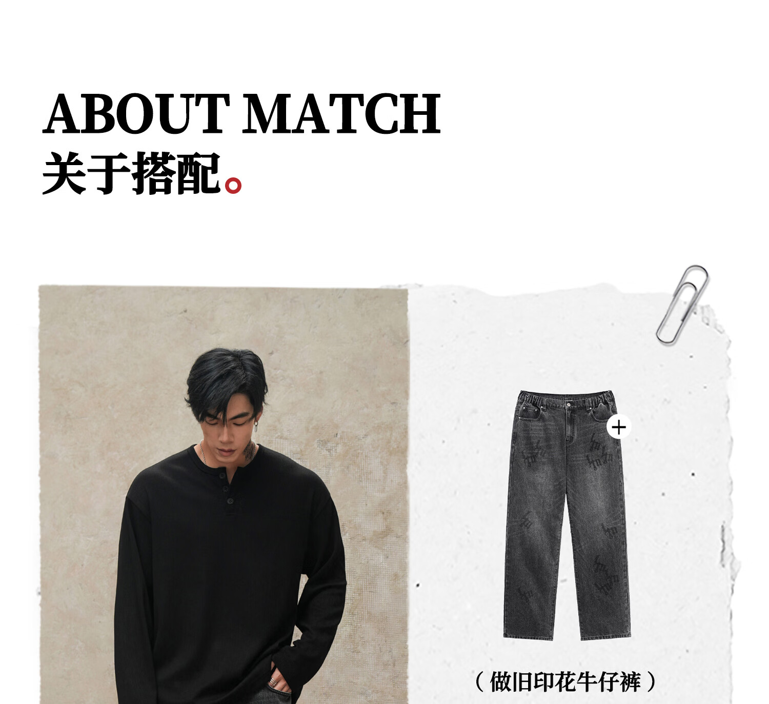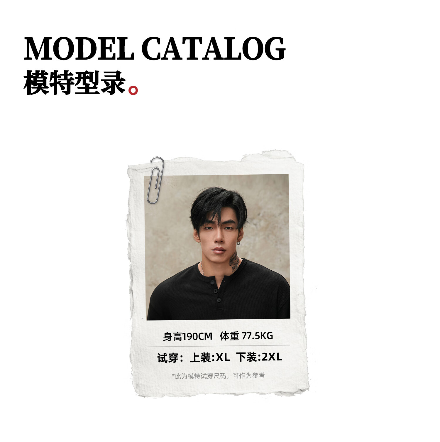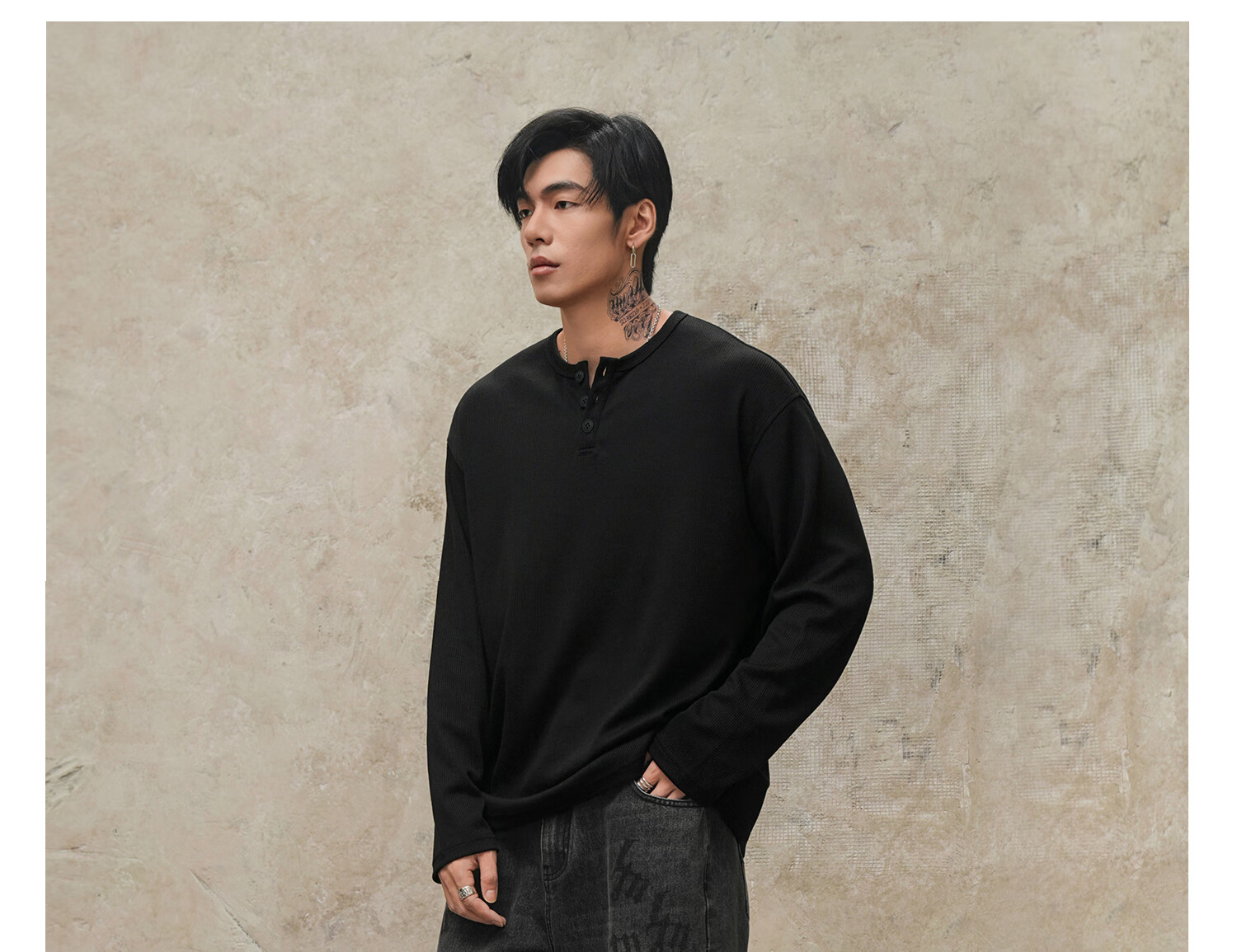 Lujiamen textured henley collar long-sleeved T-shirt men's sports fitness large size elastic bottoming shirt casual top black regular version (fabric weight 240g) 2XL recommended 180-220Jin Jin equals 0.5 kg