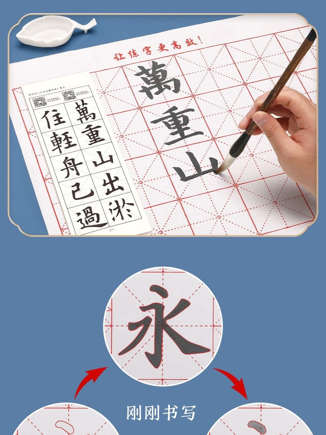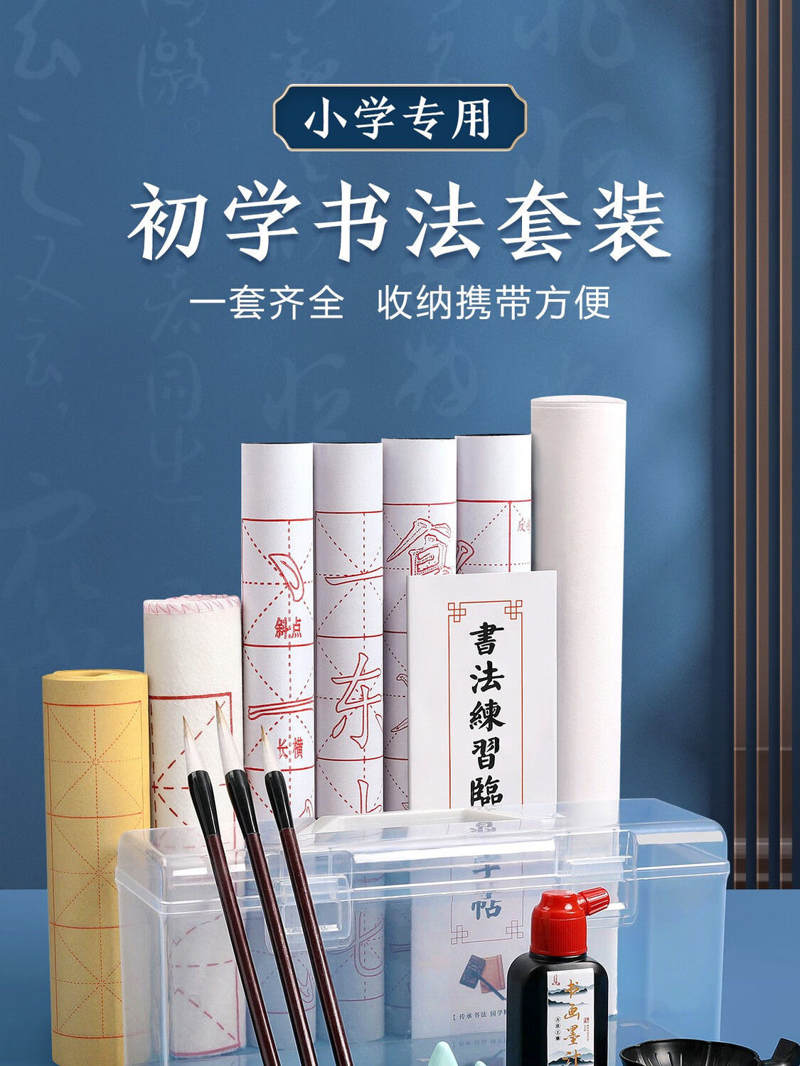 Brush calligraphy set for beginners, special study room four treasures for students to practice brush calligraphy, pen, ink, paper and inkstone, complete set of water writing cloth, elementary school, entry-level 4-piece set