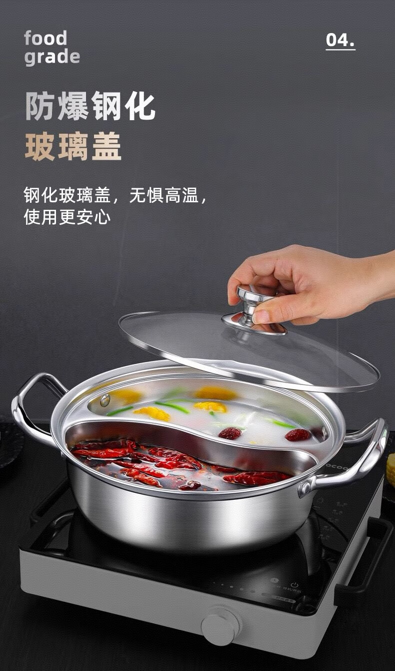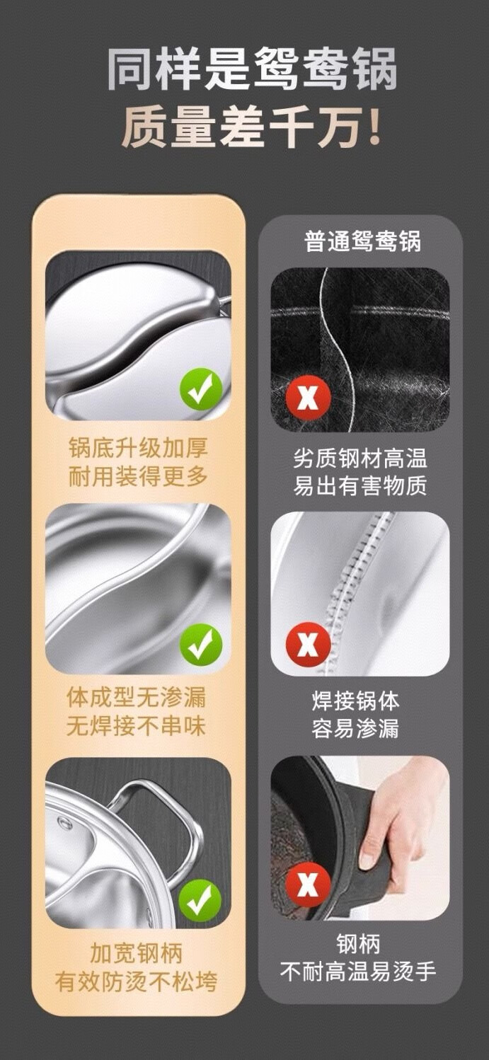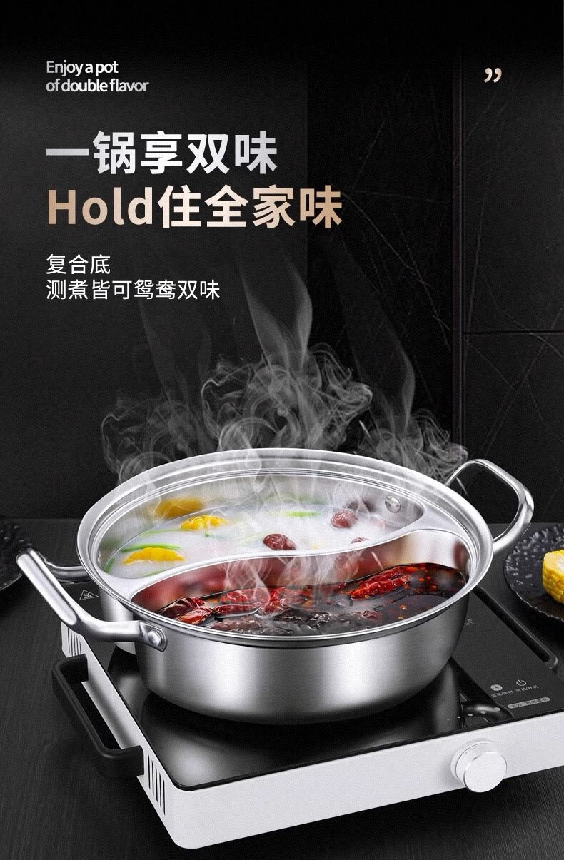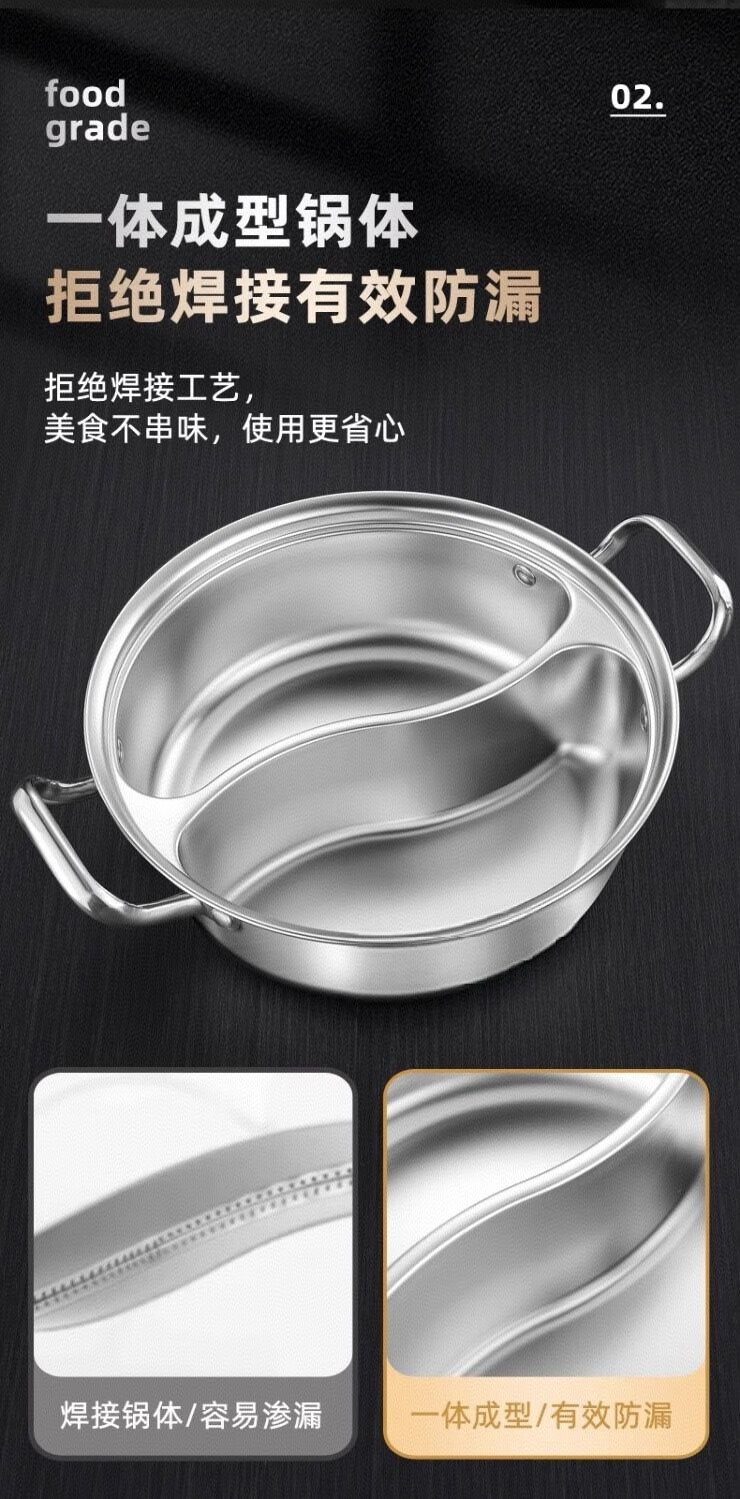 Olla de pato mandarín de acero inoxidable de calidad alimentaria sin olor, olla caliente doméstica de gran capacidad de una sola pieza con tapa para cocina de inducción, 33 CM 5-8 personas, pato mandarín de una pieza sin olor