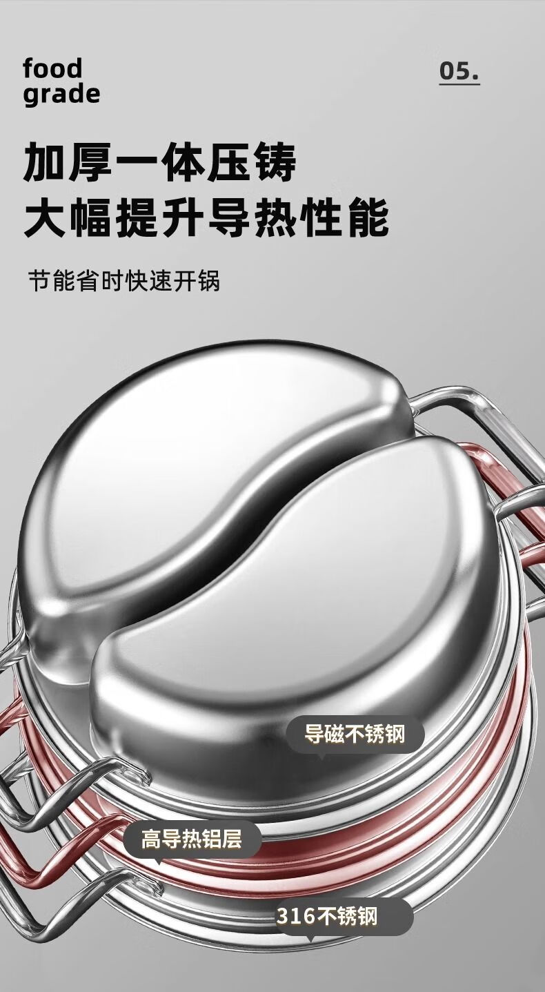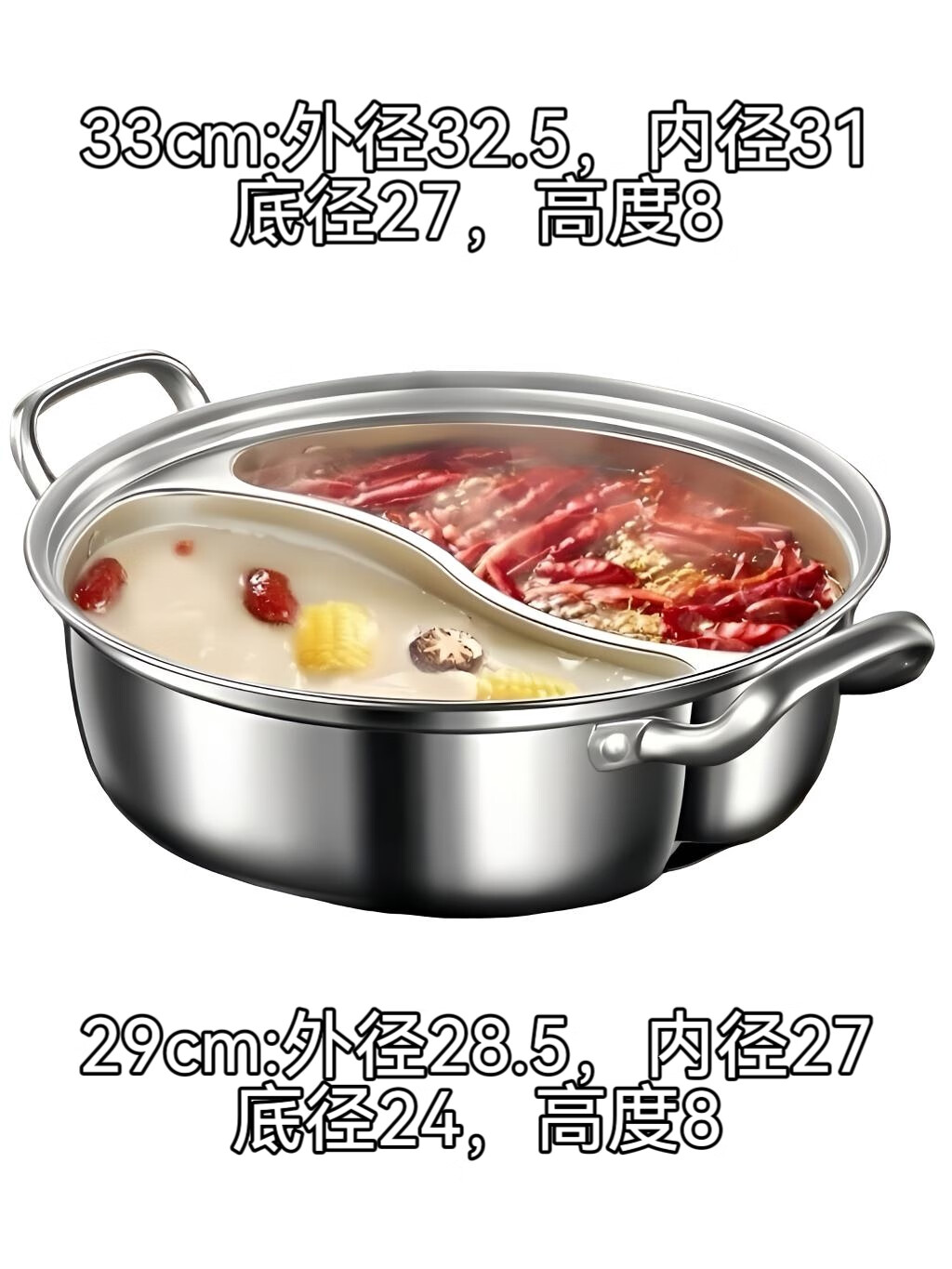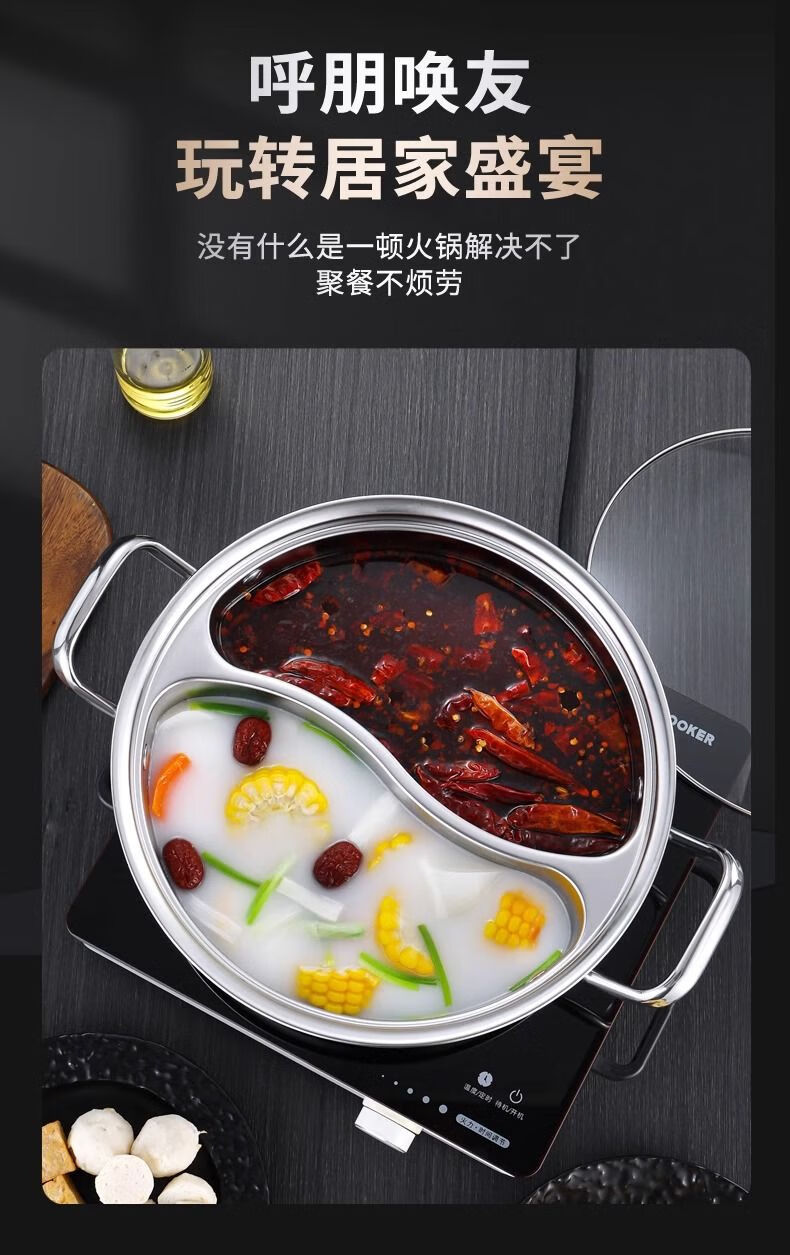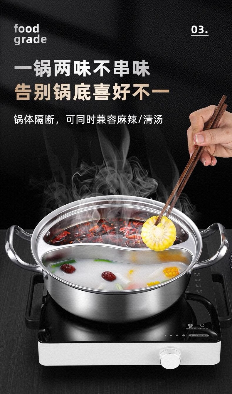 Olla de pato mandarín de acero inoxidable de calidad alimentaria sin olor, olla caliente doméstica de gran capacidad de una sola pieza con tapa para cocina de inducción, 33 CM 5-8 personas, pato mandarín de una pieza sin olor