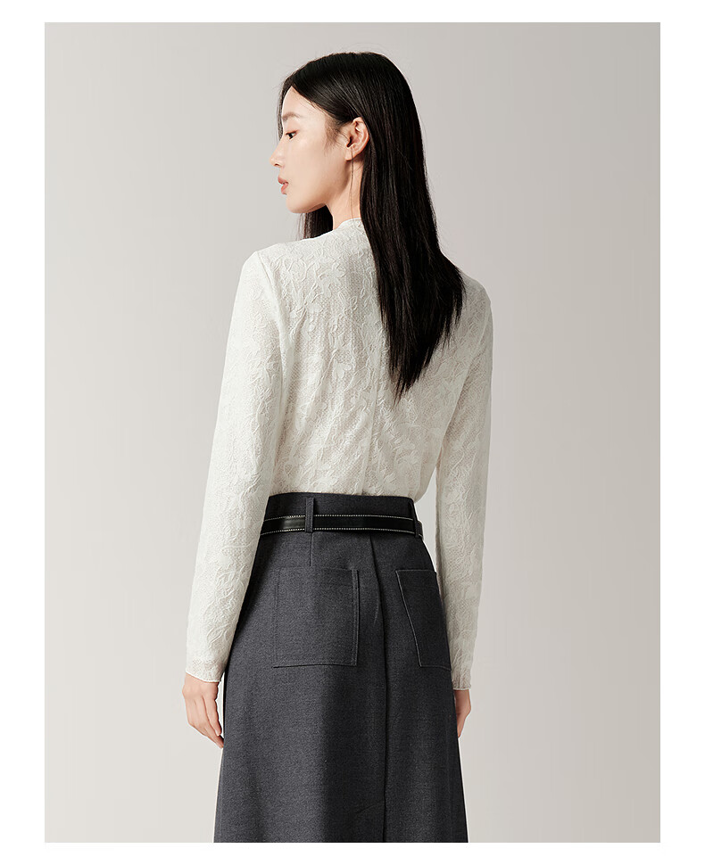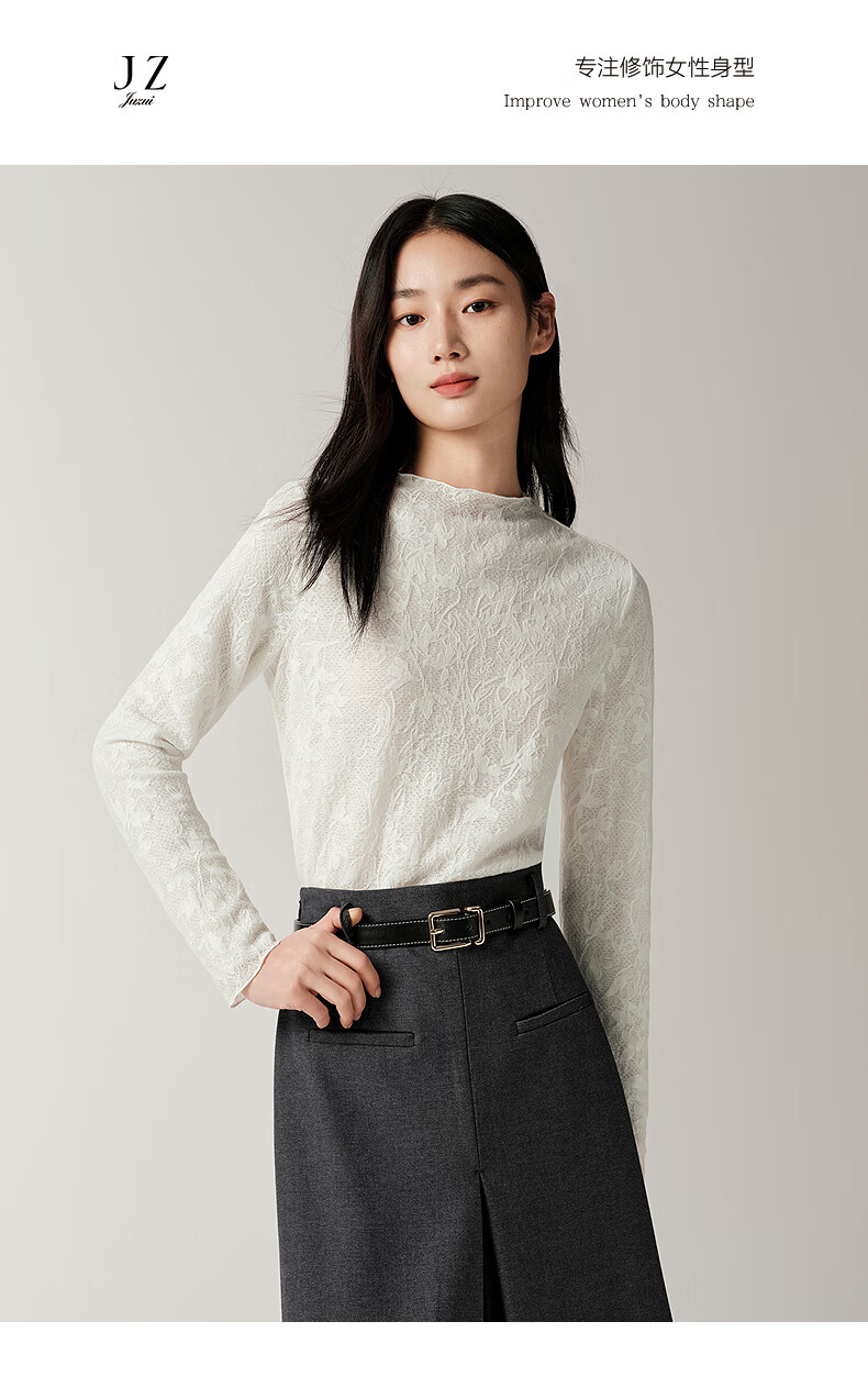 JUZUI romantic French hollow lace slim inner top for women 2025 autumn new style JTFQ80102 off-white L