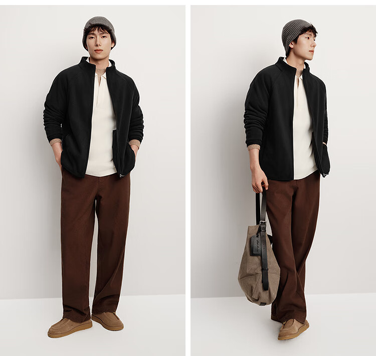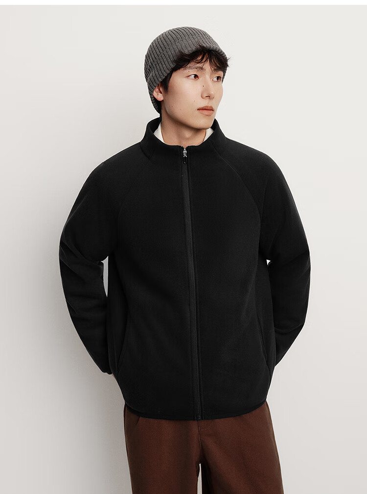 Semir Wang Anyu same style | Jacket men's autumn and winter double-sided velvet knitted jacket thermal insulation polar fleece 25 new couple tops black 90001 outer polar fleece L