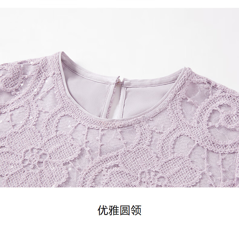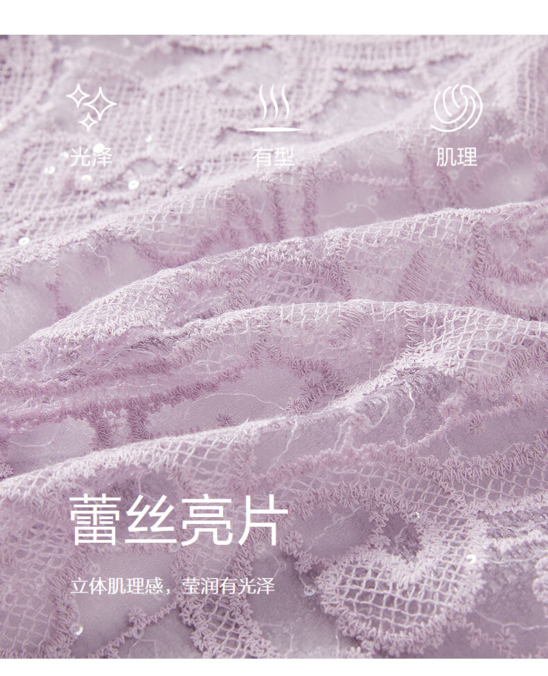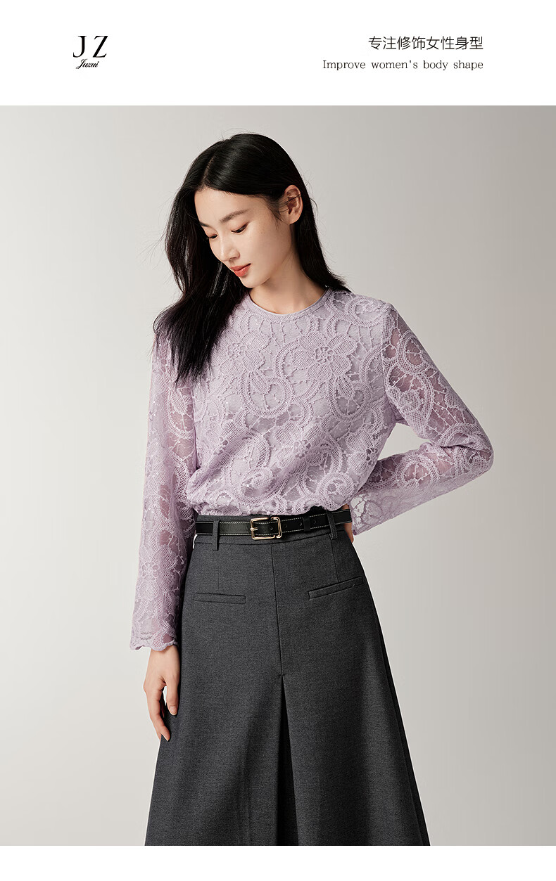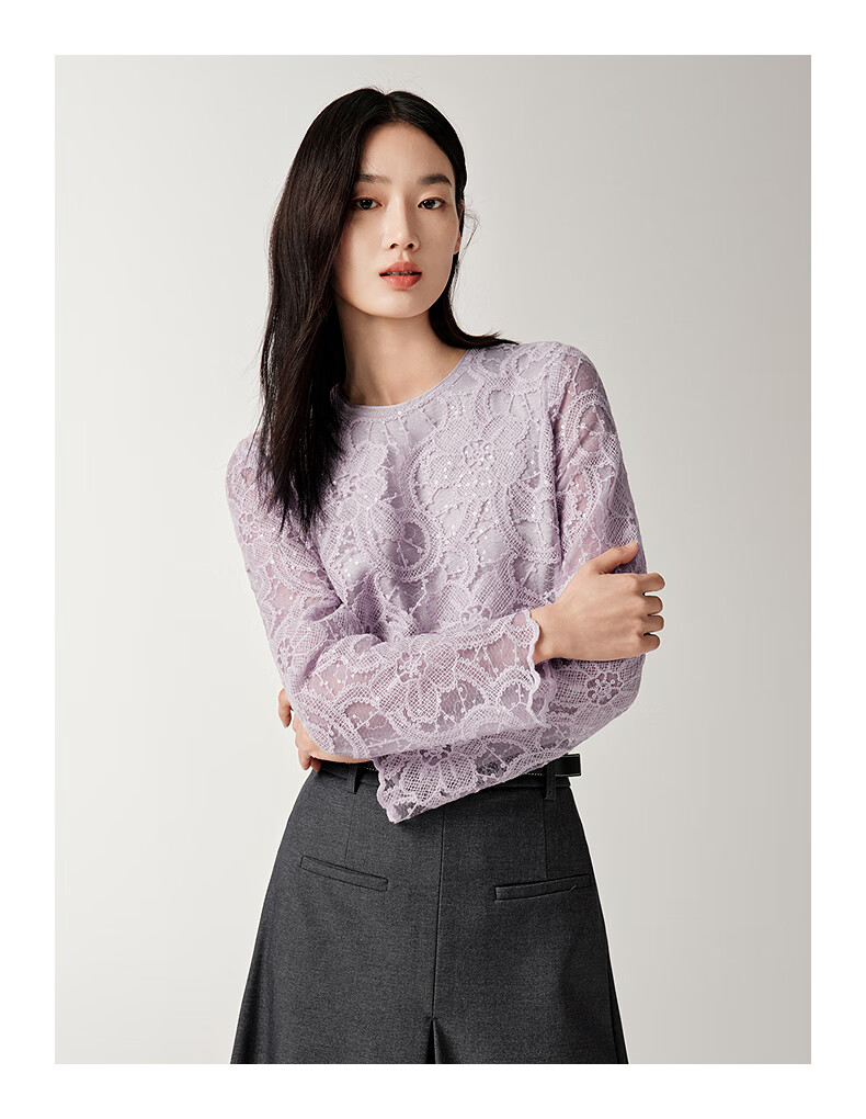 JUZUI French elegant quiet luxury style lace sequin top for women 2025 autumn new style JTFQ80103 light purple L