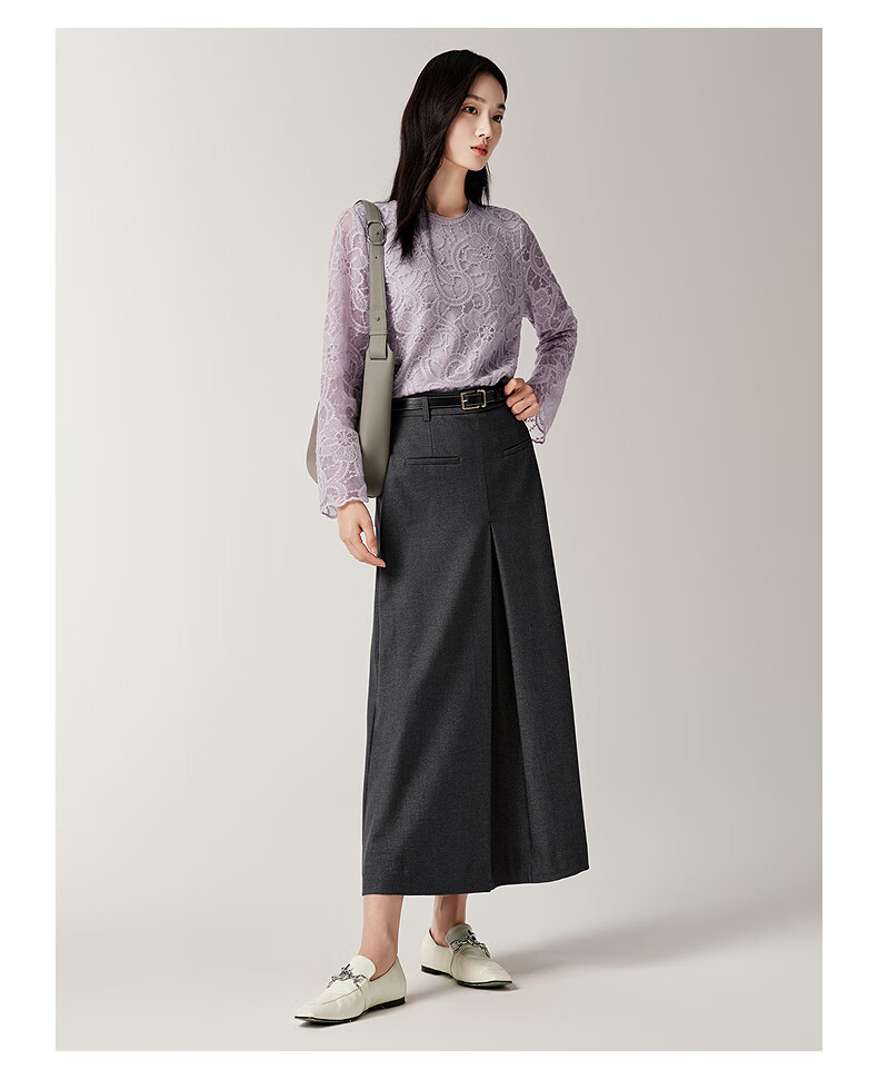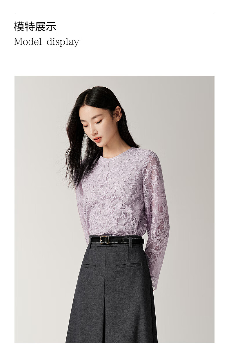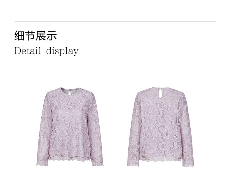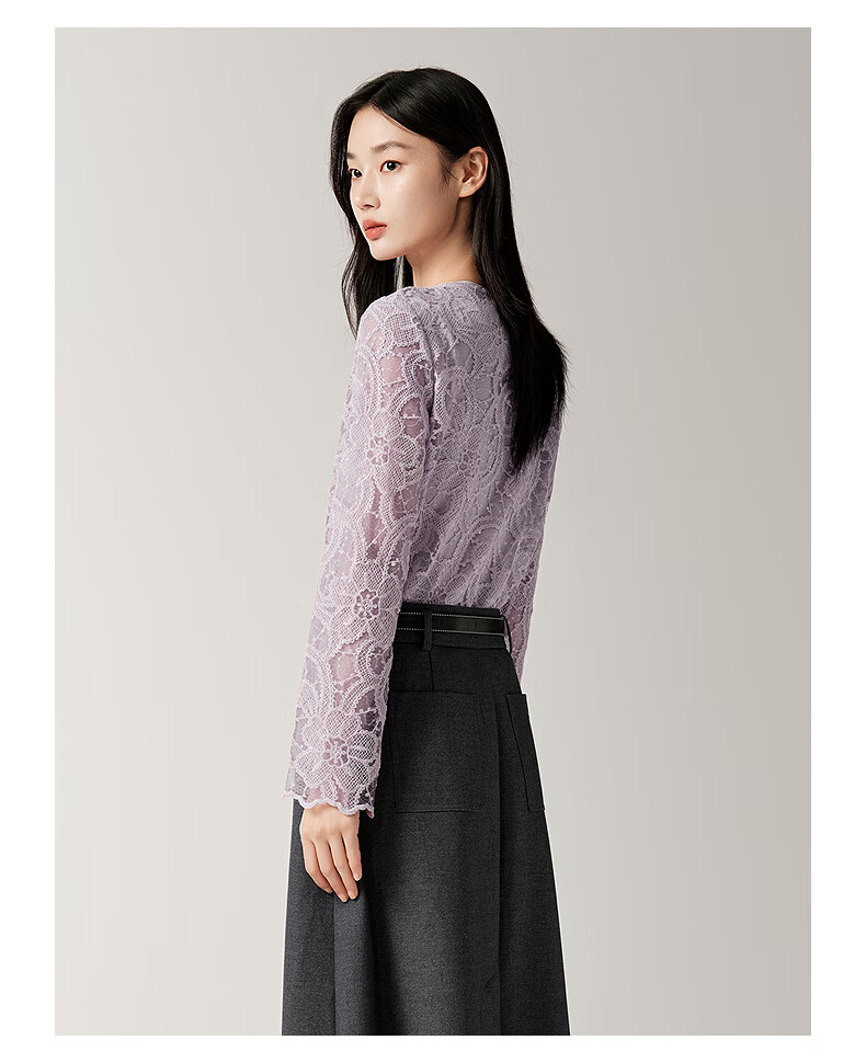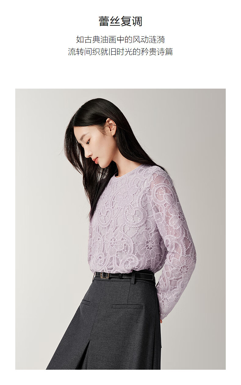 JUZUI French elegant quiet luxury style lace sequin top for women 2025 autumn new style JTFQ80103 light purple L
