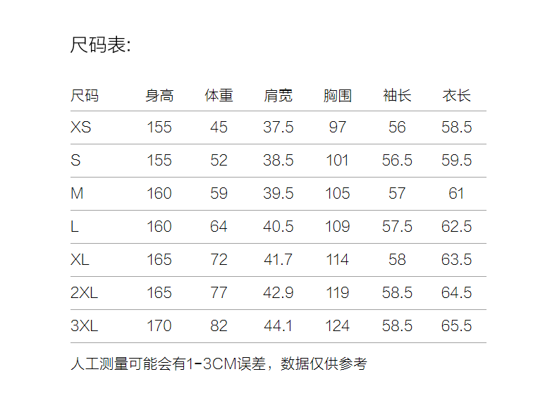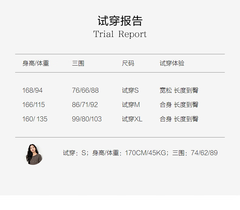 China (cm) 160-165/84-86 165-170 / 88-90 167-172 / 92-96 168-173 / 98-102 170-176 / 106-110