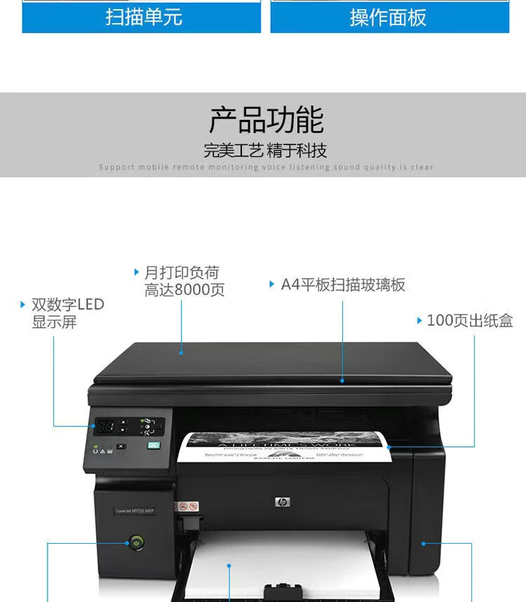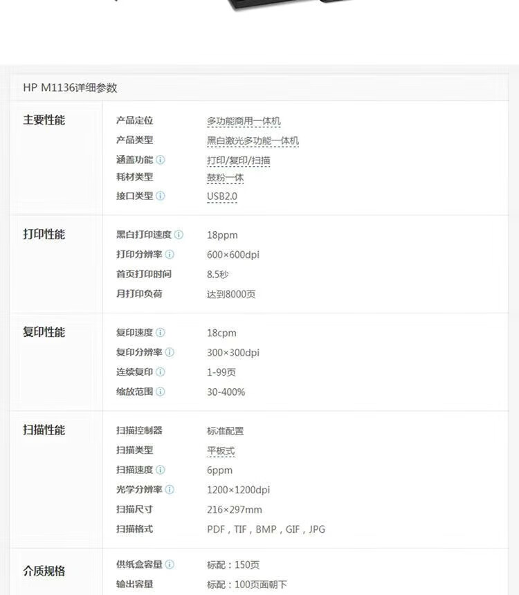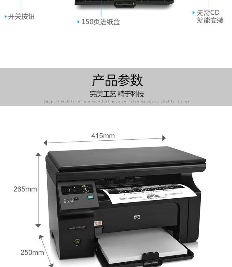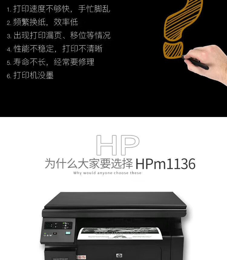 HP's new HPM1136 black and white laser multi-function all-in-one home office printing, copying and scanning A4 brand new HPM1136 contains an original toner cartridge, official standard (for computer use)