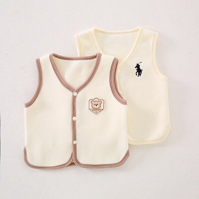 Yiqi baby autumn and winter outer vest, double-sided Ollie velvet vest, pony vest, male and female baby jacket, double layer Ollie velvet boneless vest, brown bear 90 recommended 19-23Jin Jin is equal to 0.5 kg