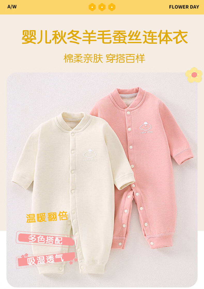 Yiqi baby autumn and winter boneless jumpsuit baby harem home clothes infant wool silk long-sleeved romper wool silk boneless jumpsuit embroidery C 80cm 18-22Jin Jin equals 0.5 kg