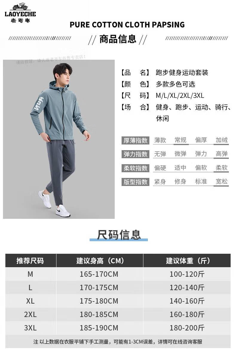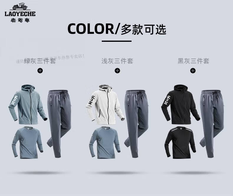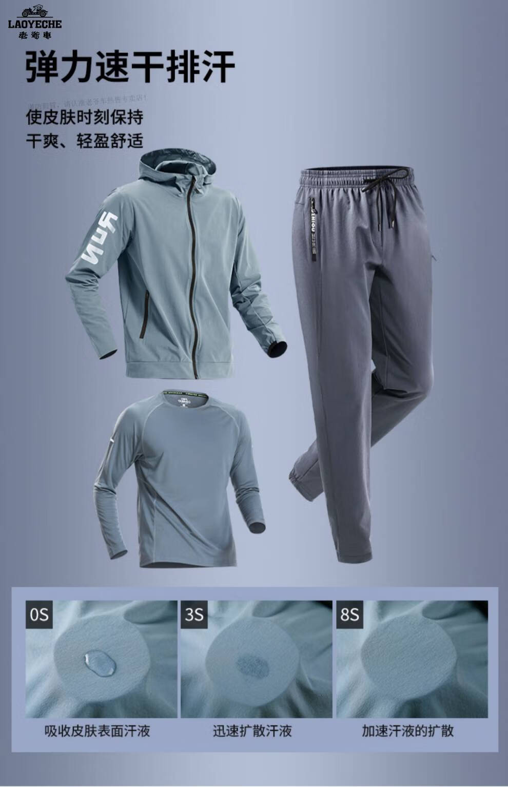 Classic car (LAOYECHE) autumn and winter running sports suit for men in winter plus velvet quick-drying autumn new morning running cycling clothes for men spring and autumn running green and gray three-piece suit windproof quick-drying sports M 100-120 Jin Jin is equal to 0.5 kg