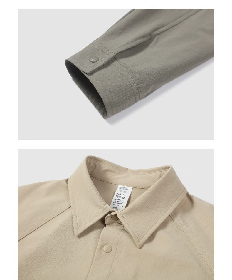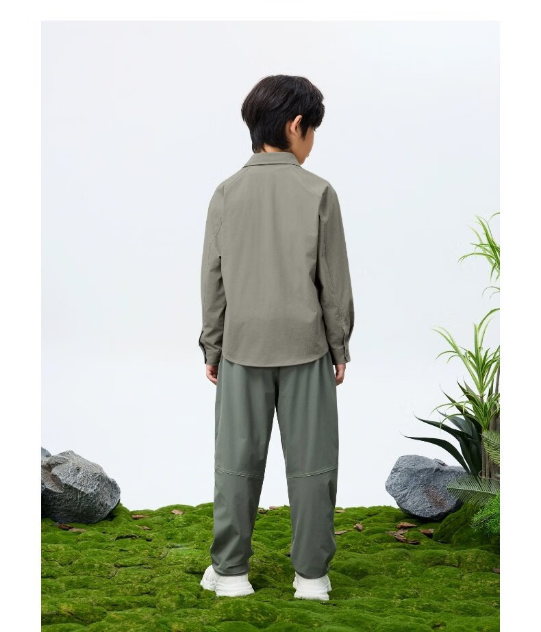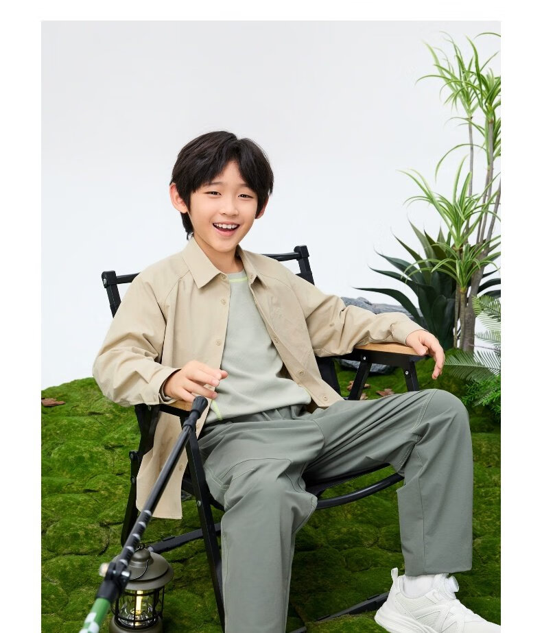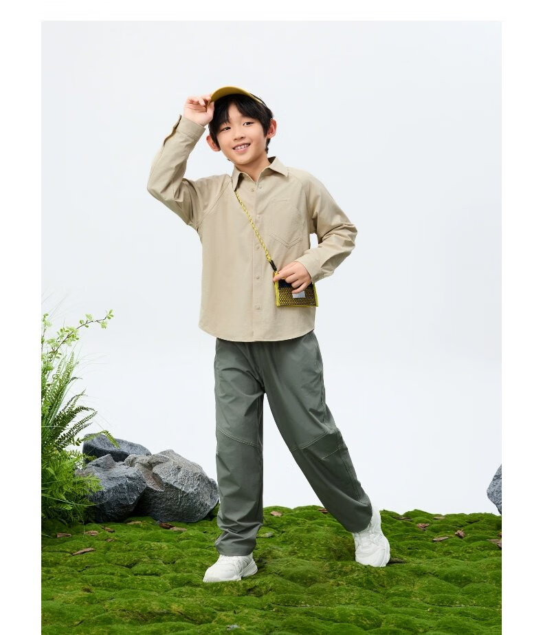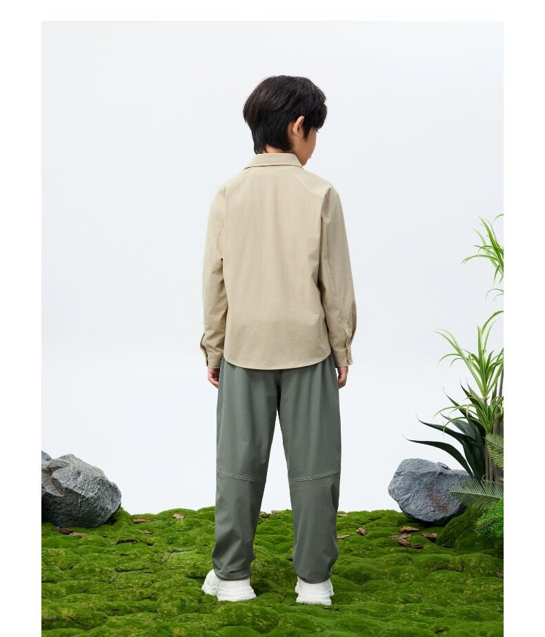 Benlai boys anti-wrinkle lapel long-sleeved shirt 2025 autumn new casual shirt BTA250014 Khaki 150