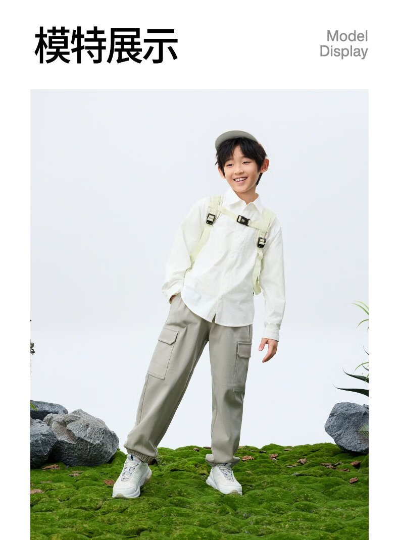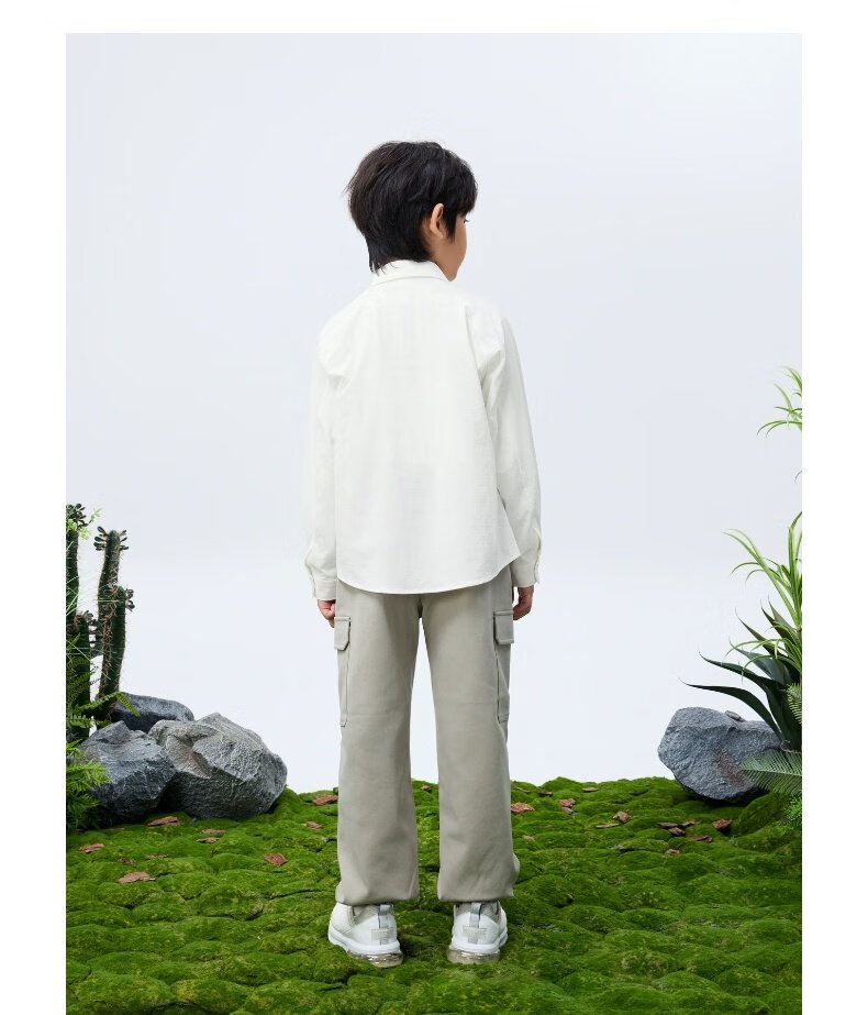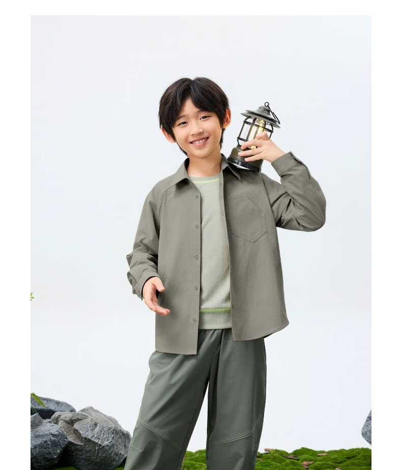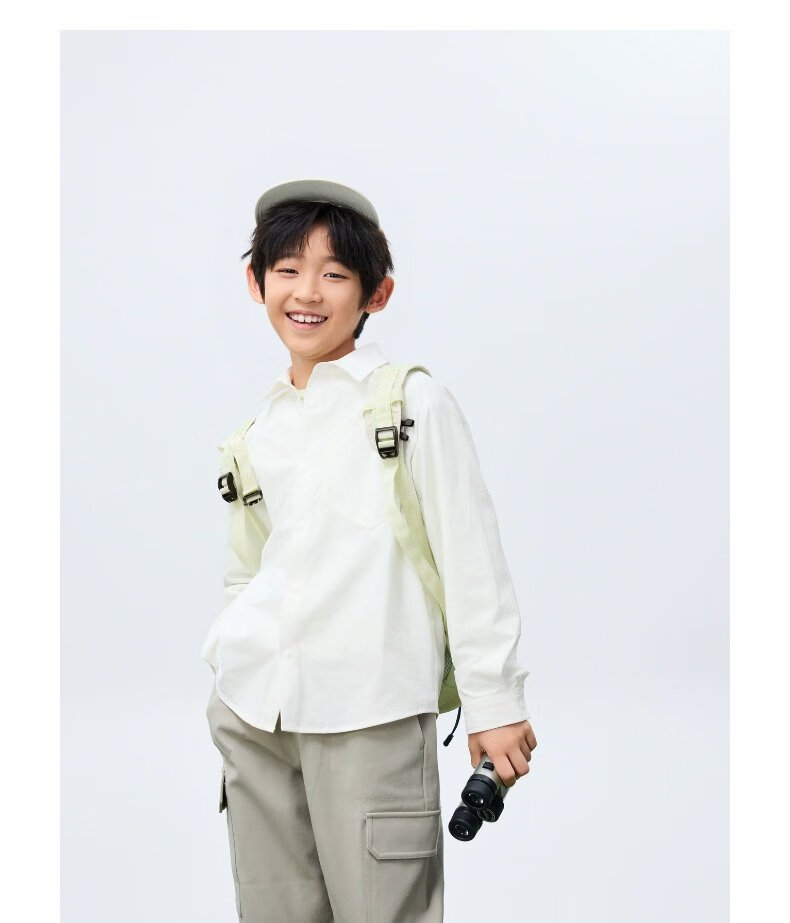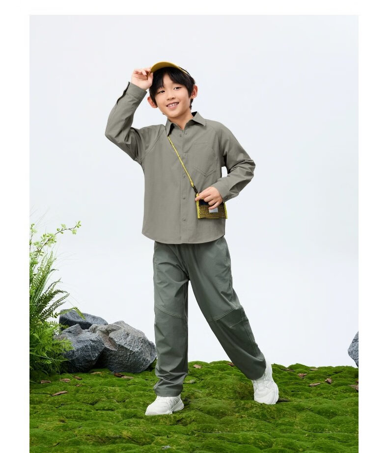 Benlai boys anti-wrinkle lapel long-sleeved shirt 2025 autumn new casual shirt BTA250014 Khaki 150