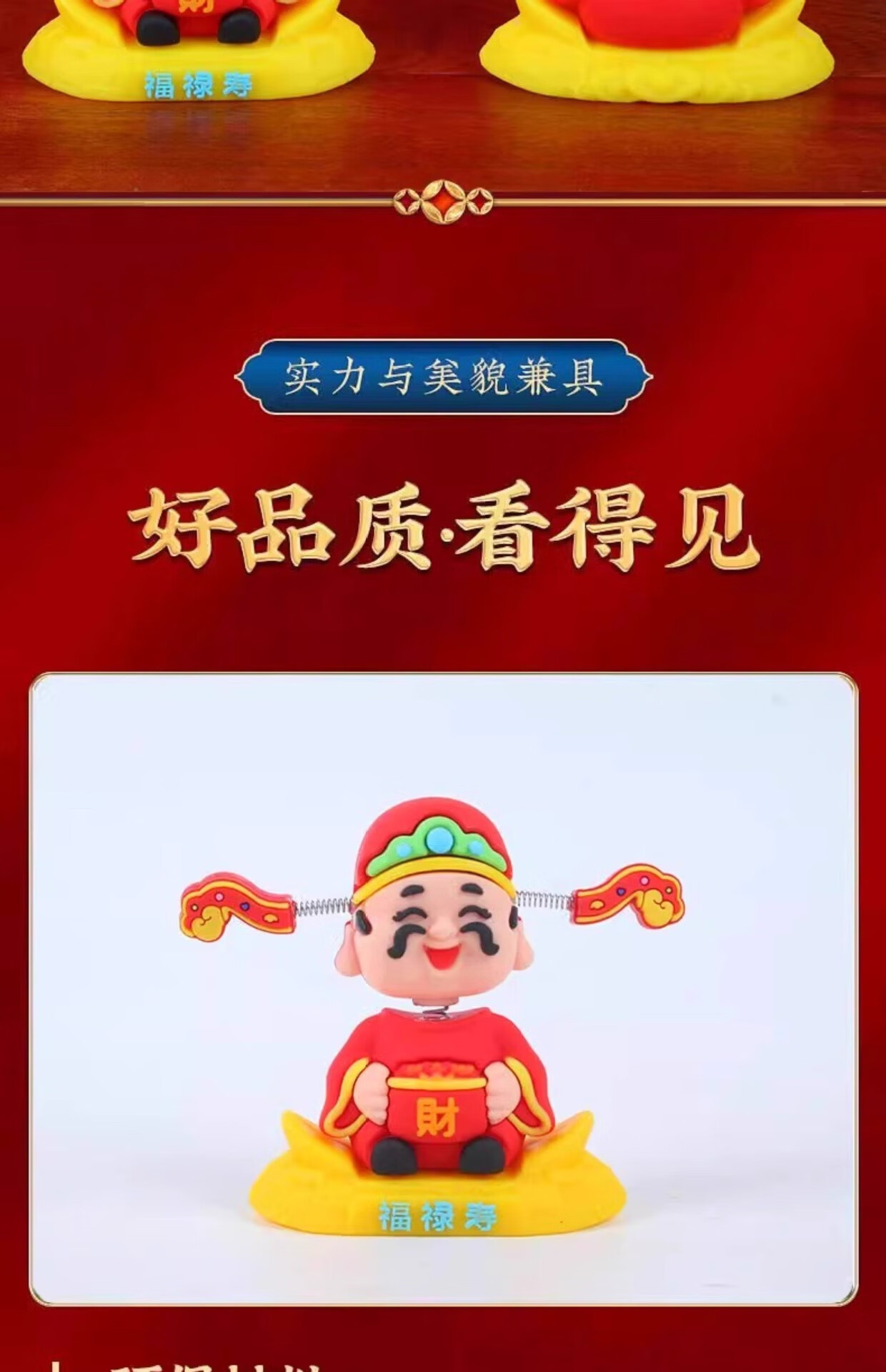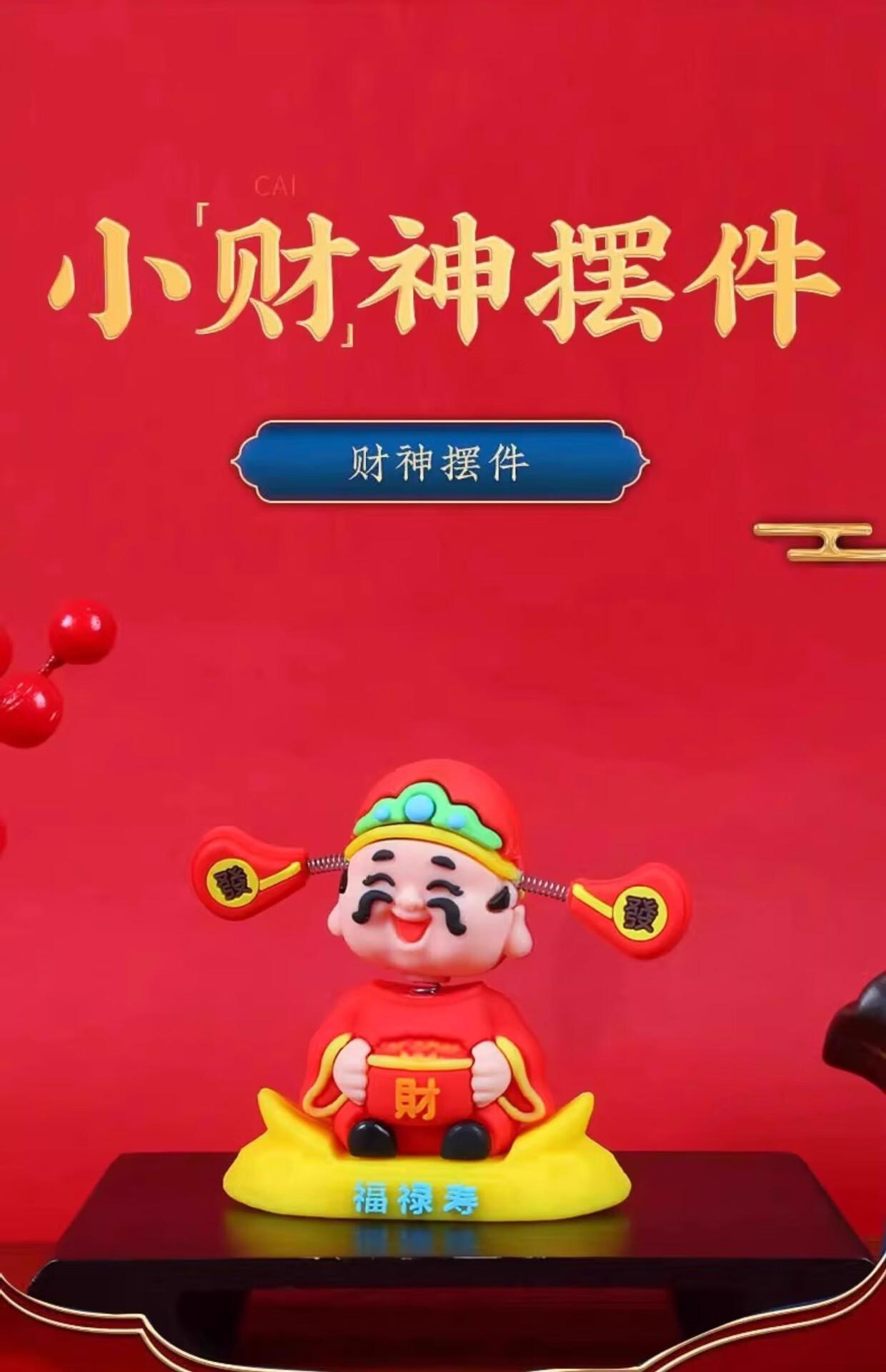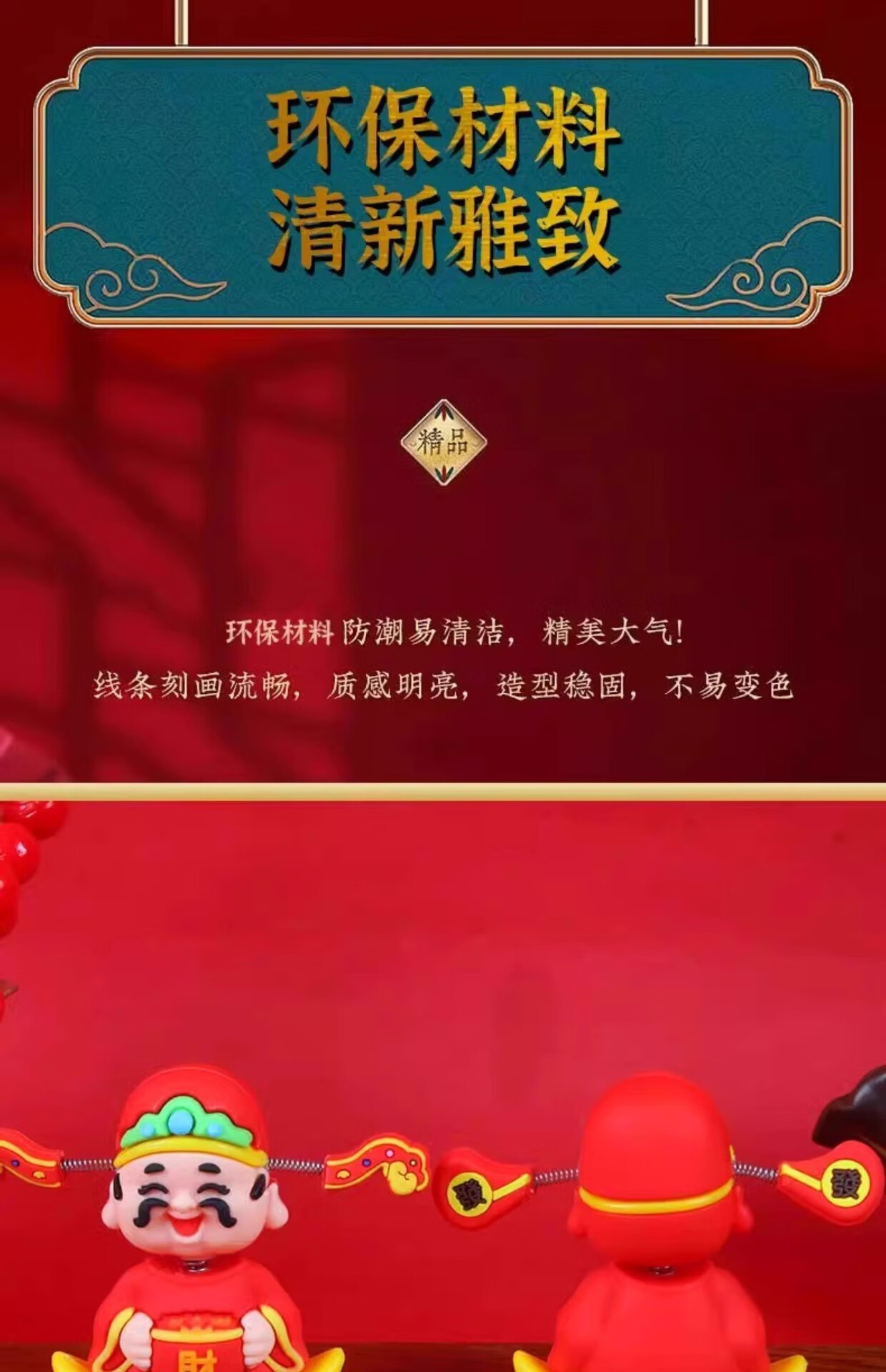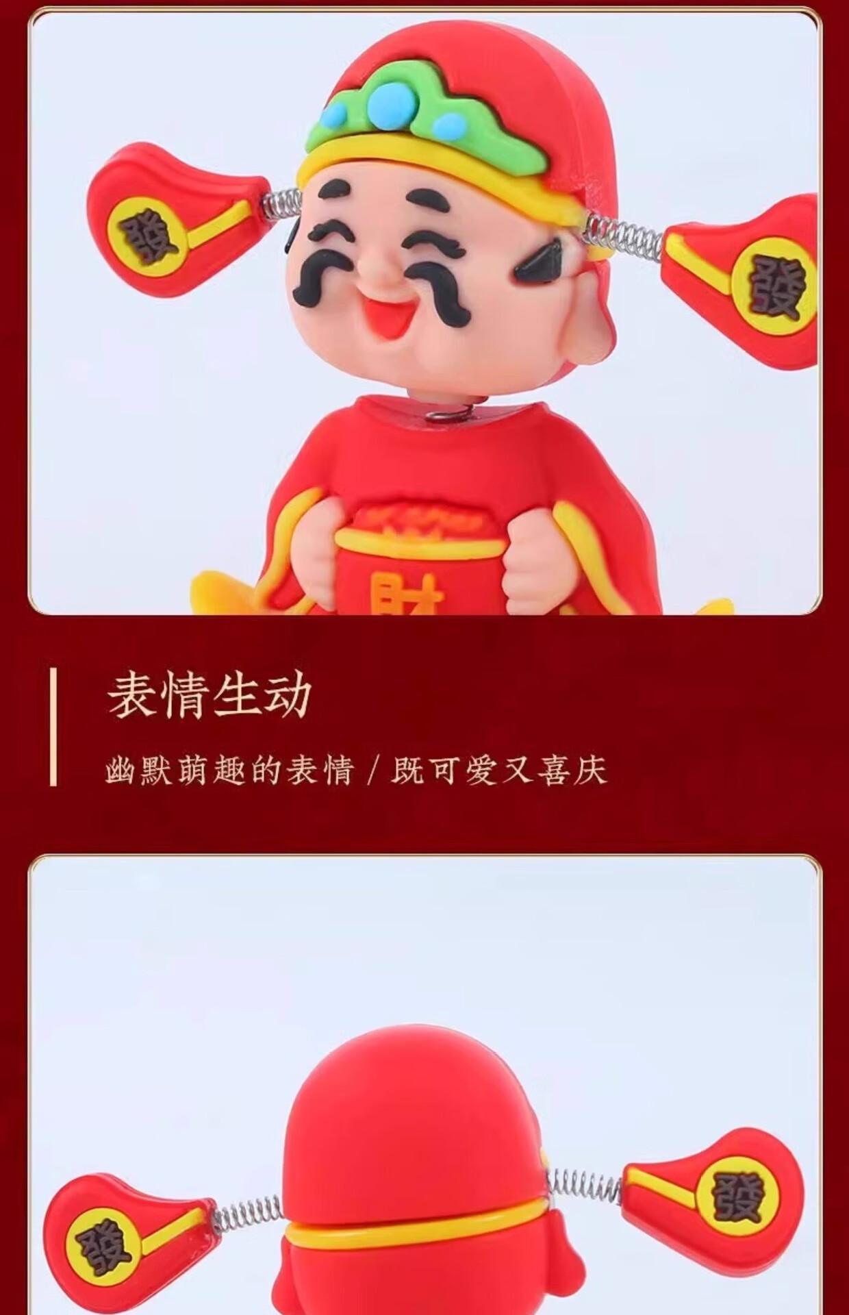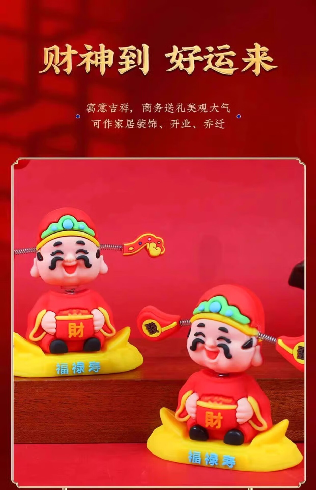 Cute God of Wealth Ornament, God of Wealth Ornament, Creative National Trend Bobblehead Doll, Office Desktop Back-to-School Accompanying Gift, Bobblehead God of Wealth Ornament, 1 piece