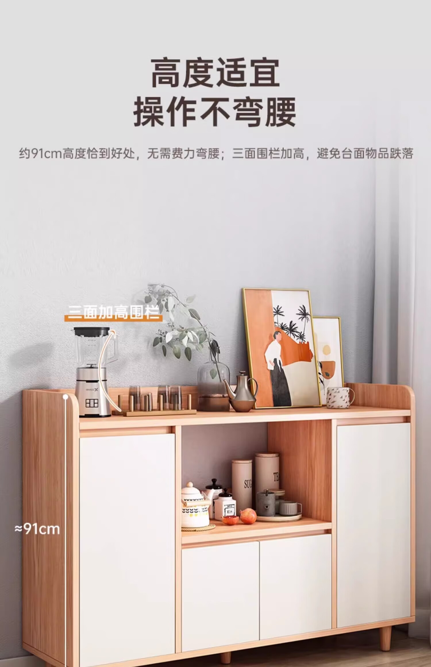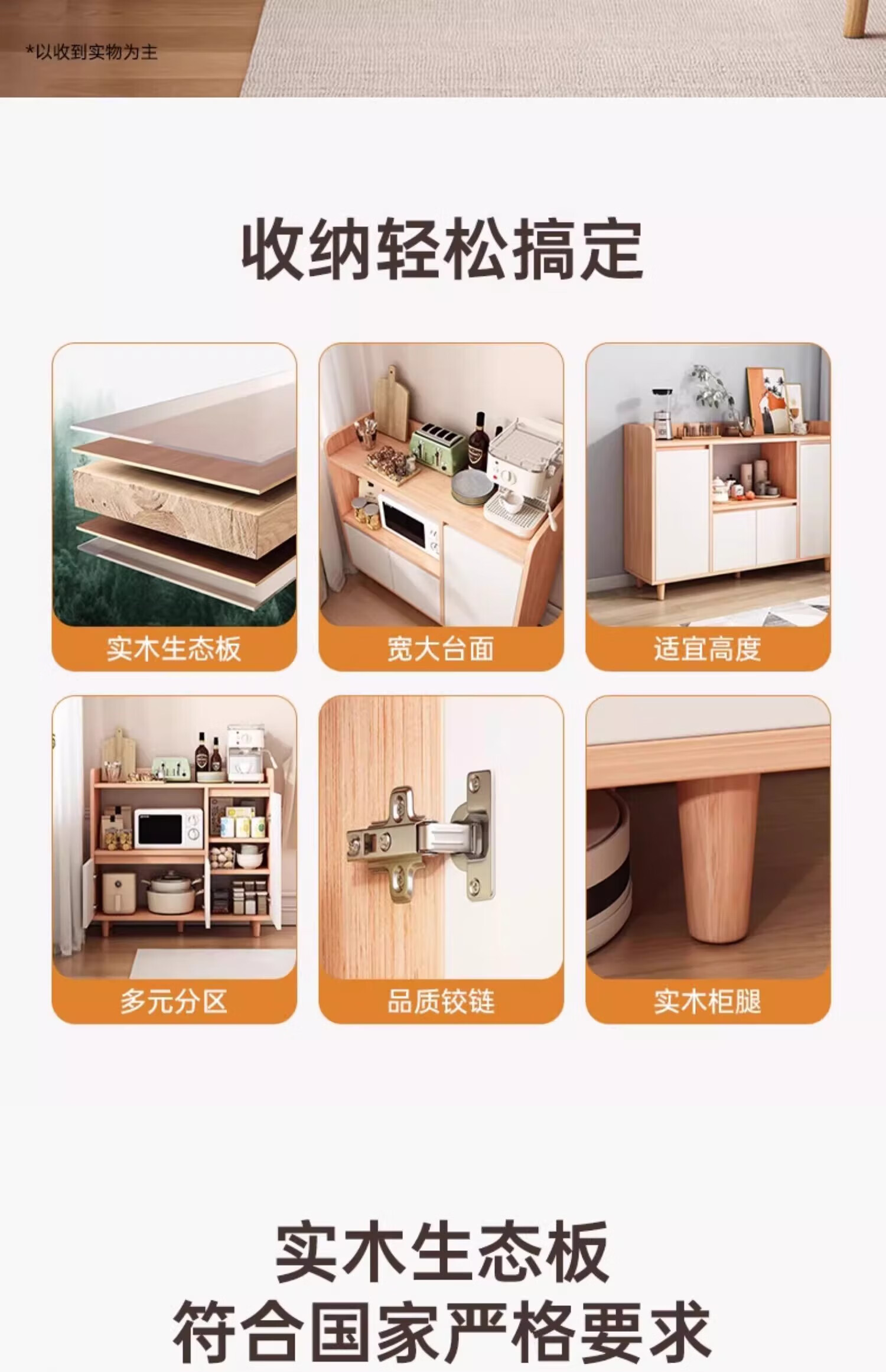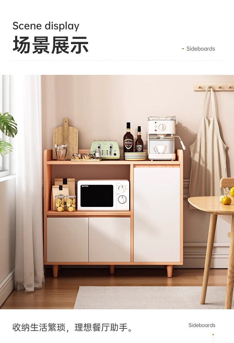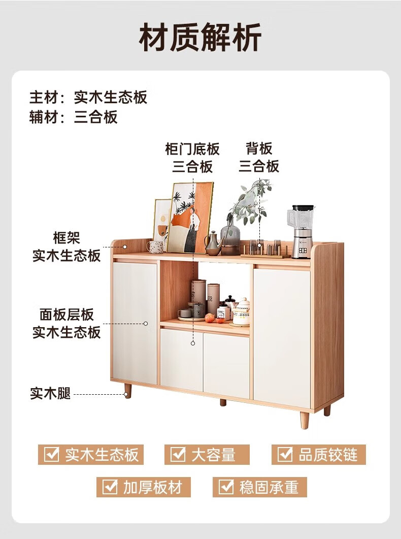 Solid wood sideboard storage cabinet household dining table low cabinet widening living room wall integrated storage storage cabinet tea cabinet solid wood ecological board log color 140cm