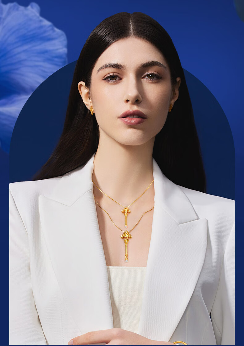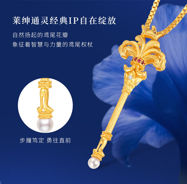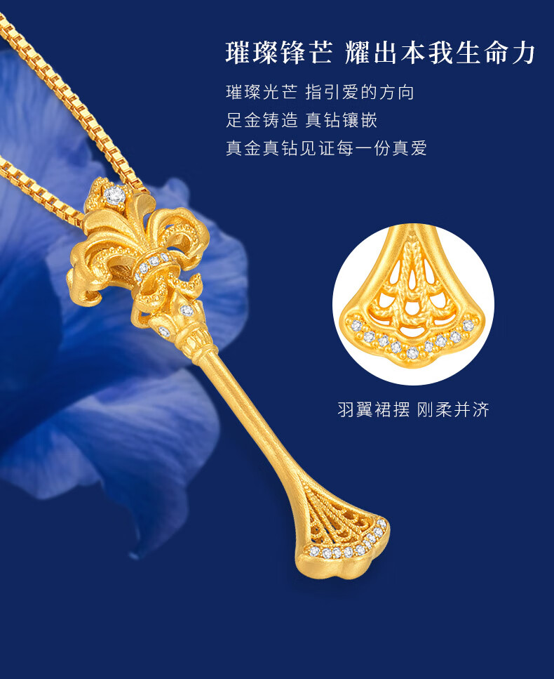 Lai Shen psychic gold diamond pendant necklace for women, iris scepter, birthday gift for girlfriend, iris scepter-free ruby pendant