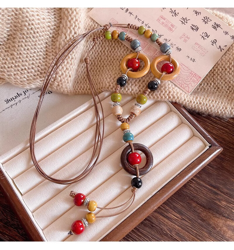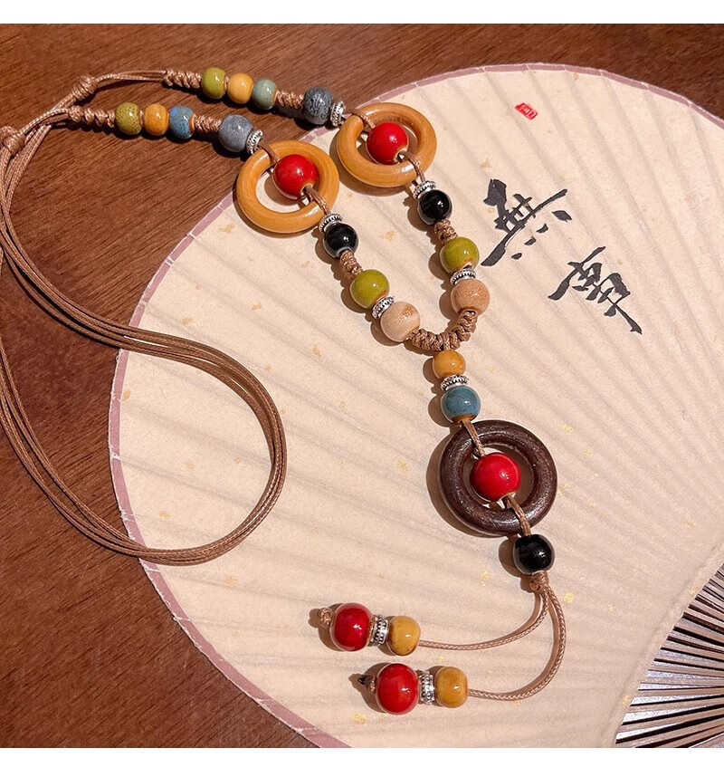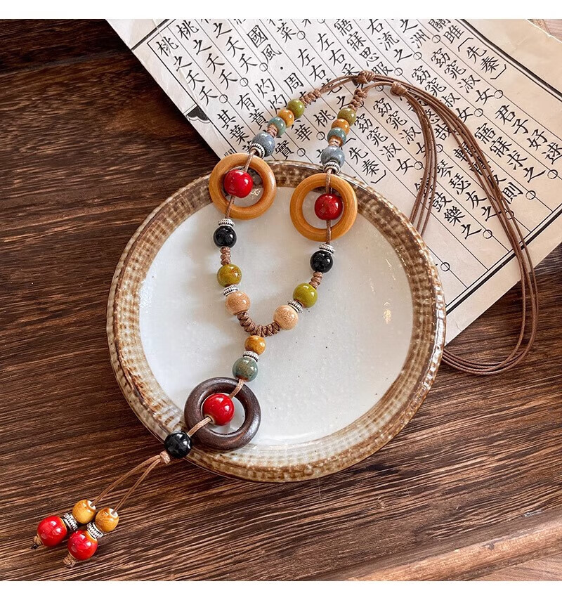 Fan Shengyu Bohemian Style Necklace Women's Ceramic Beads New Chinese Style Exotic Ethnic Style Zen Style Long Clothes Chain Accessories Colorful Beads Yunnan Style Necklace