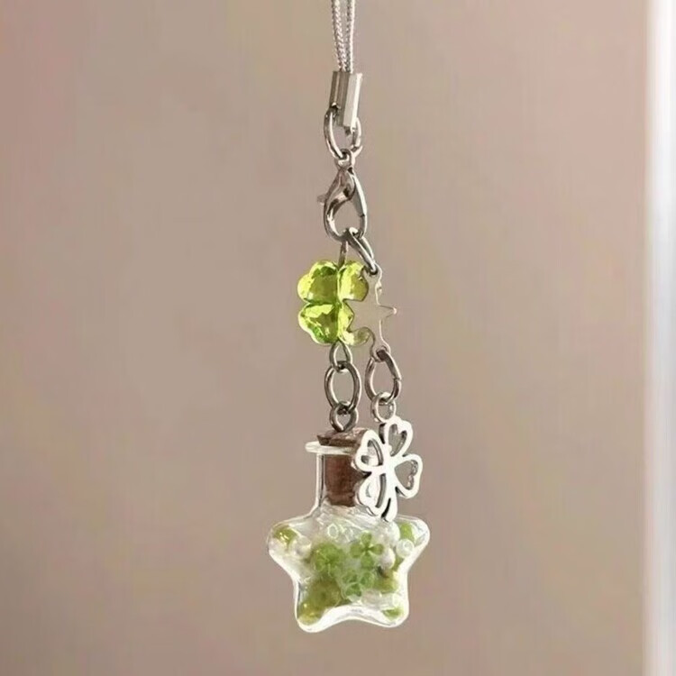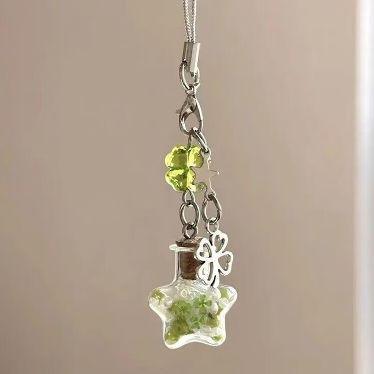 Star wishing bottle pendant original homemade mobile phone chain ins style mobile phone chain cute pendant gift bag pendant four-leaf clover green star bottle