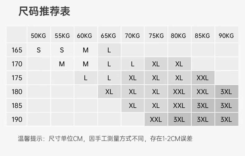 China (cm) 160-165/84-86 165-170 / 88-90 167-172 / 92-96 168-173 / 98-102 170-176 / 106-110