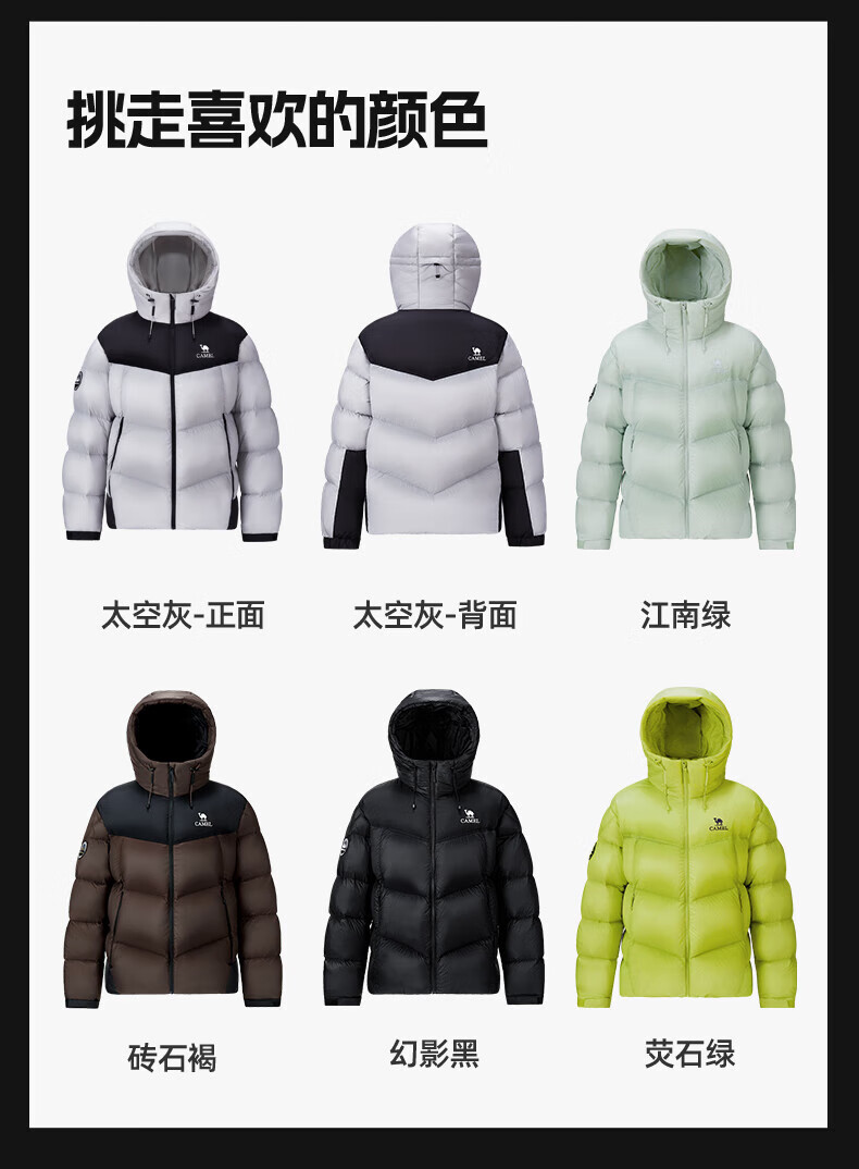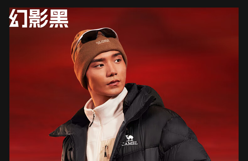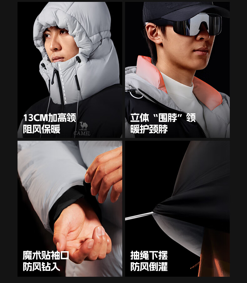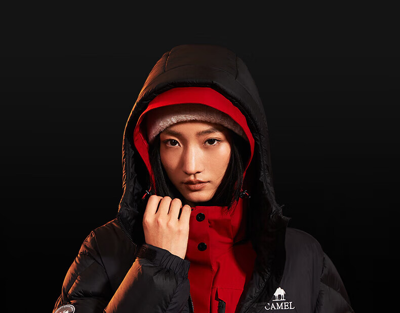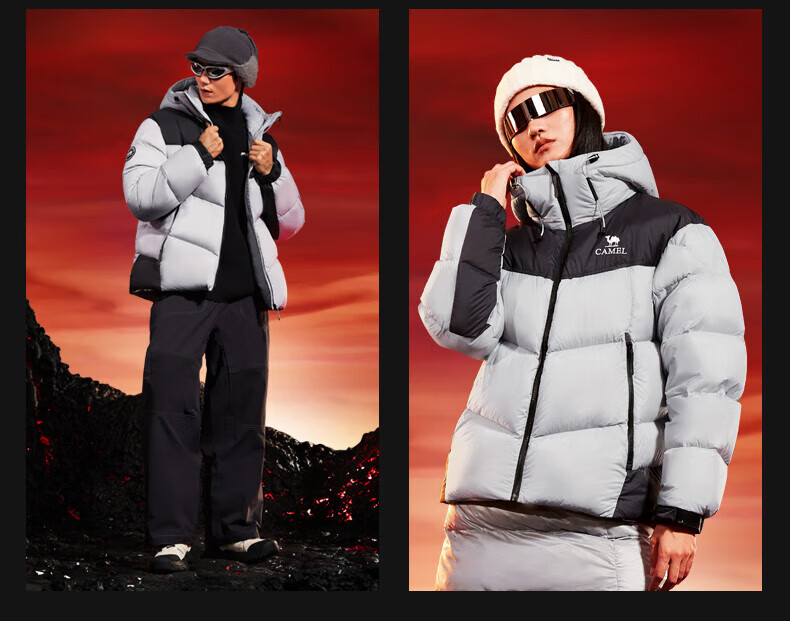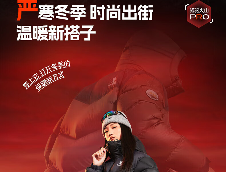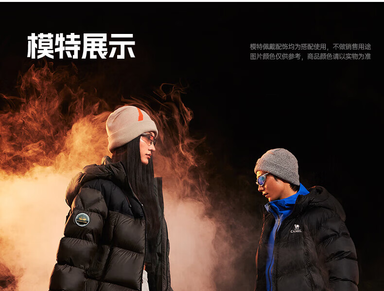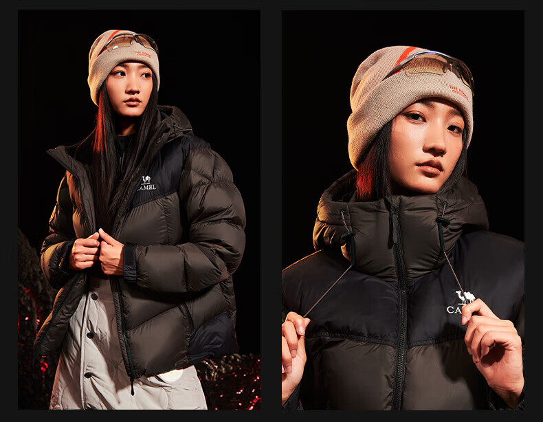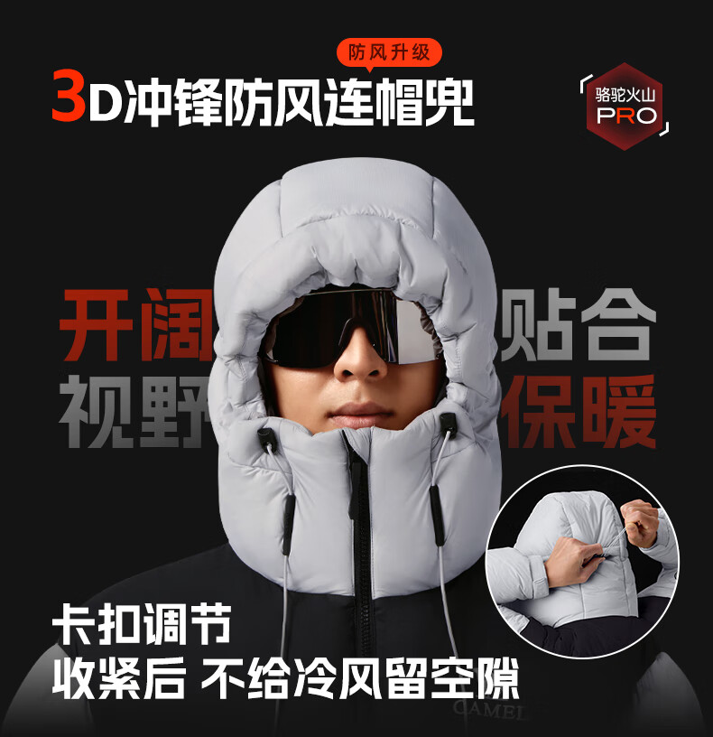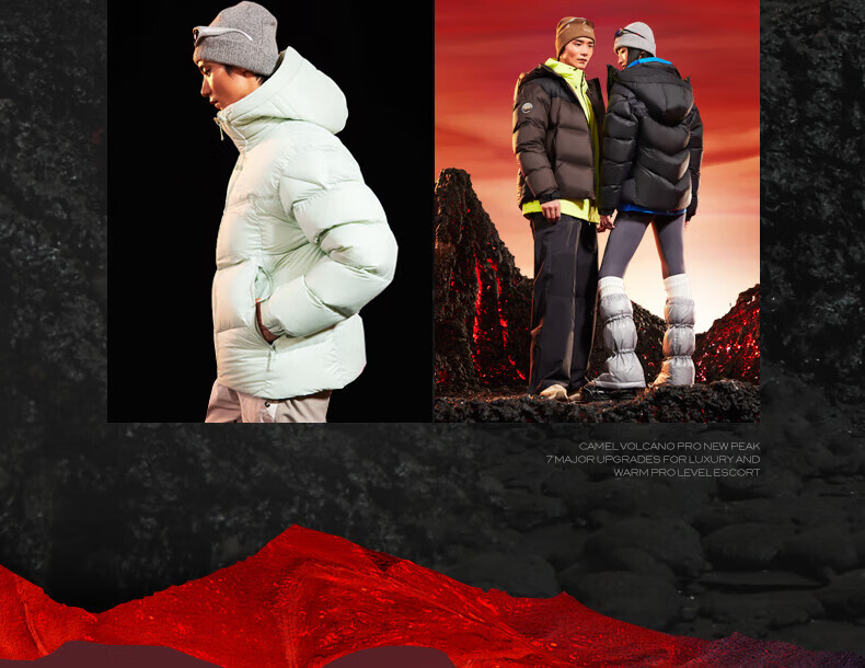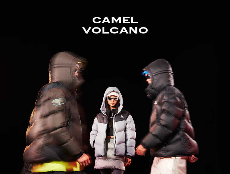 Camel Volcano PRO goose down jacket, Dilireba's same style couple style bread jacket, new goose down quick-warming down jacket, phantom black, same style for men and women, M