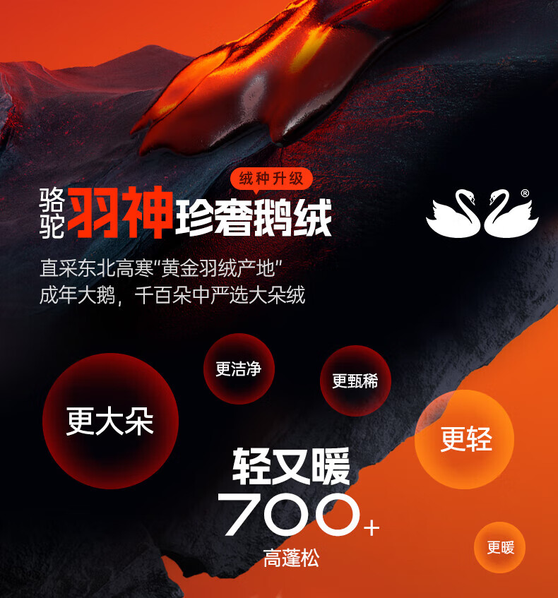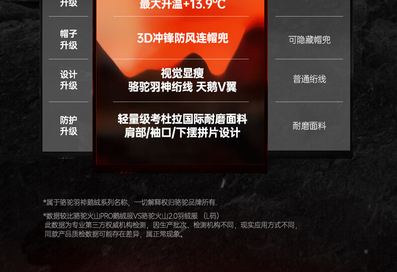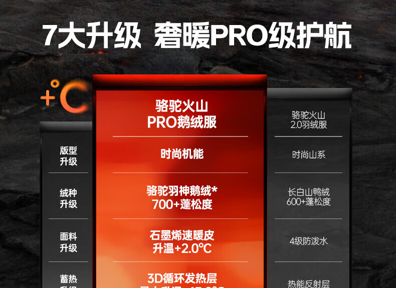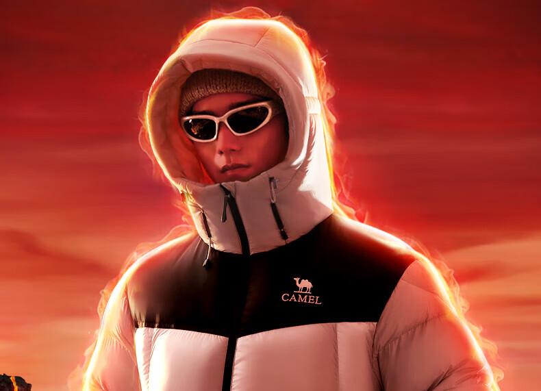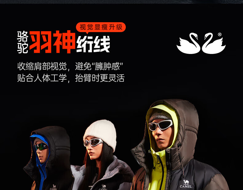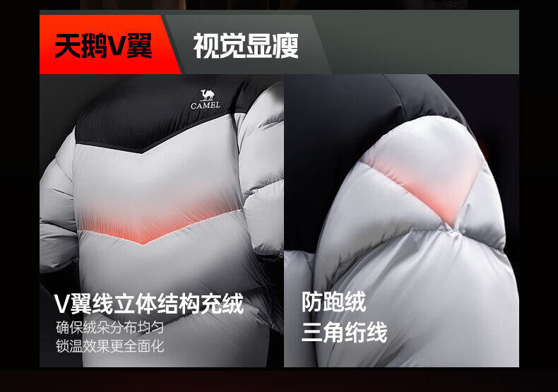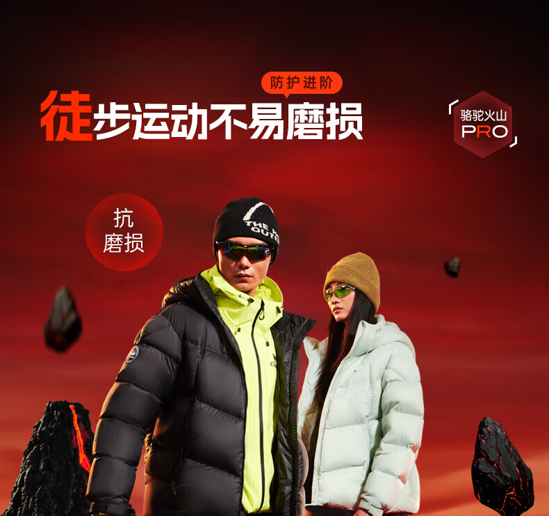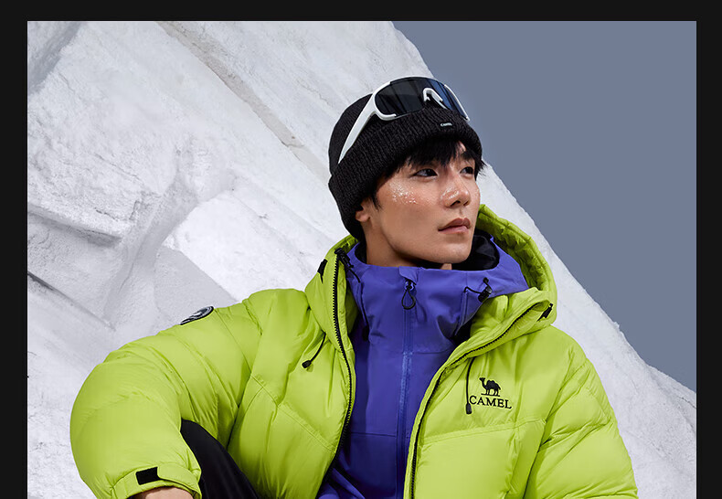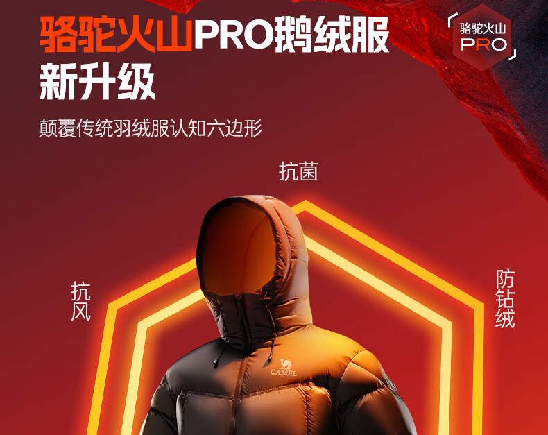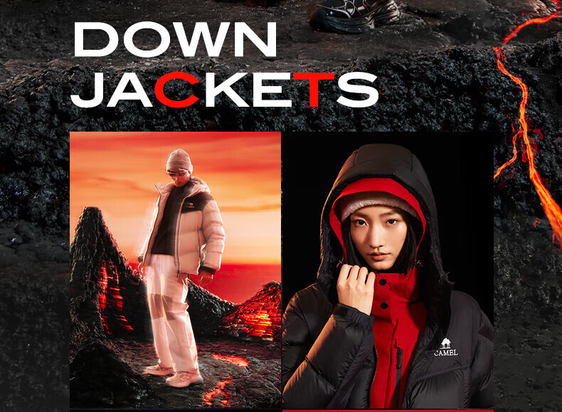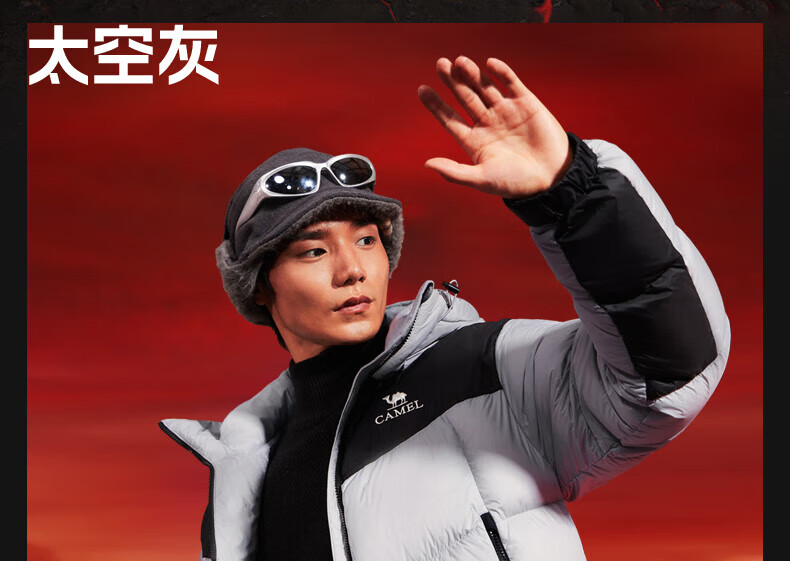 Camel Volcano PRO goose down jacket, Dilireba's same style couple style bread jacket, new goose down quick-warming down jacket, phantom black, same style for men and women, M