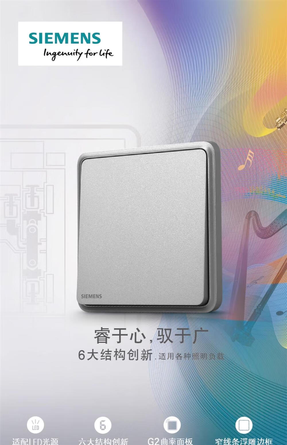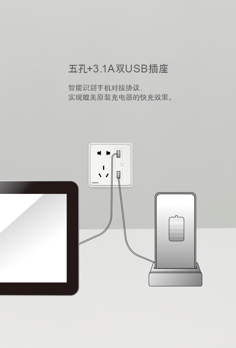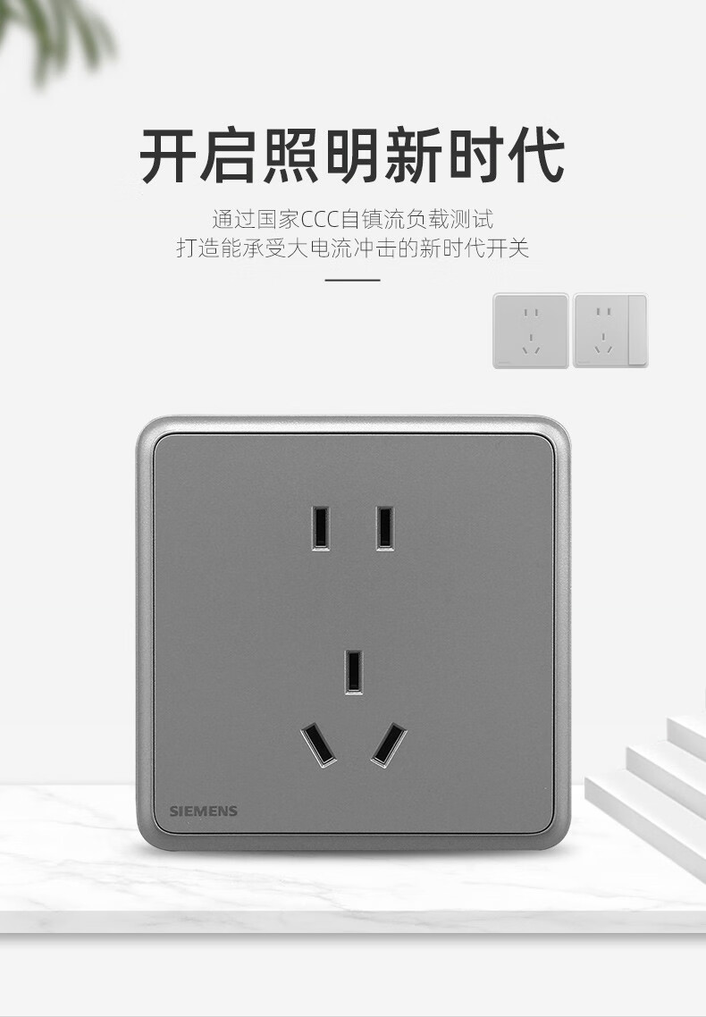 Siemens switch socket panel Lingyun series star silver gray 86 type single control household one open double control five holes one single control switch