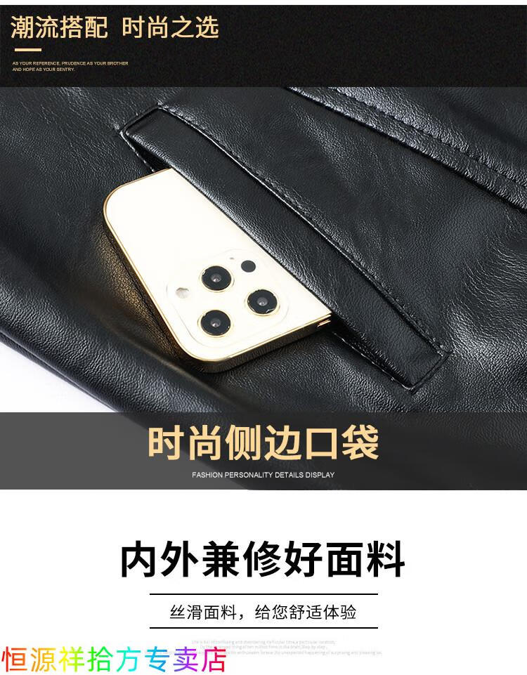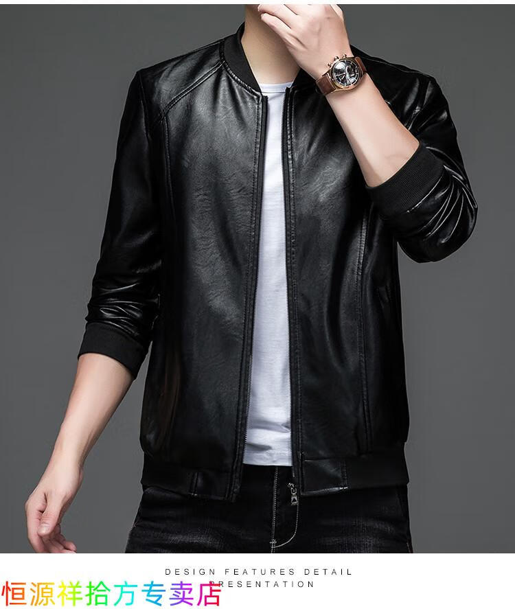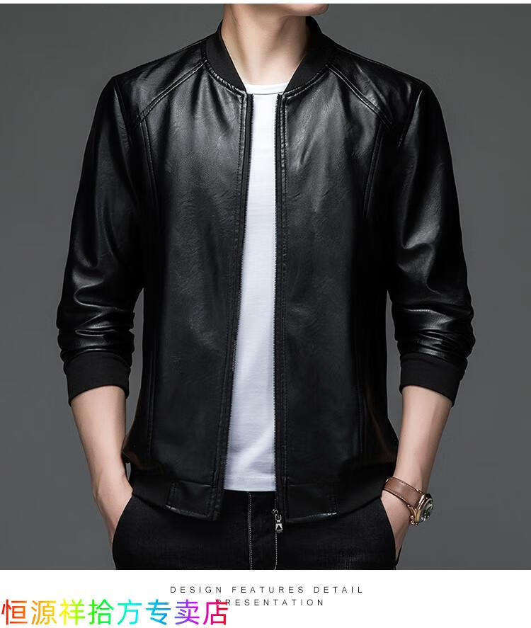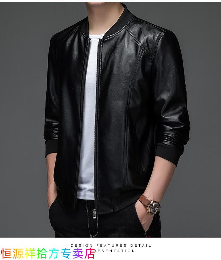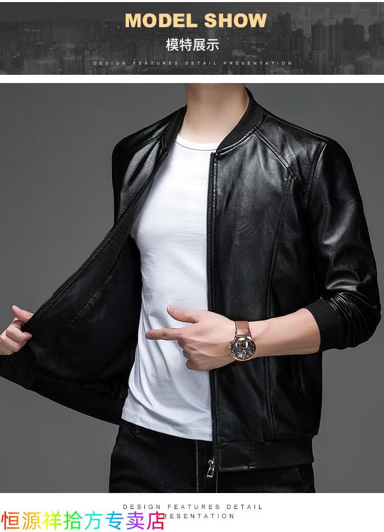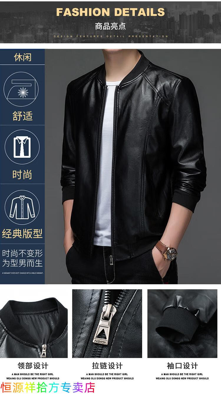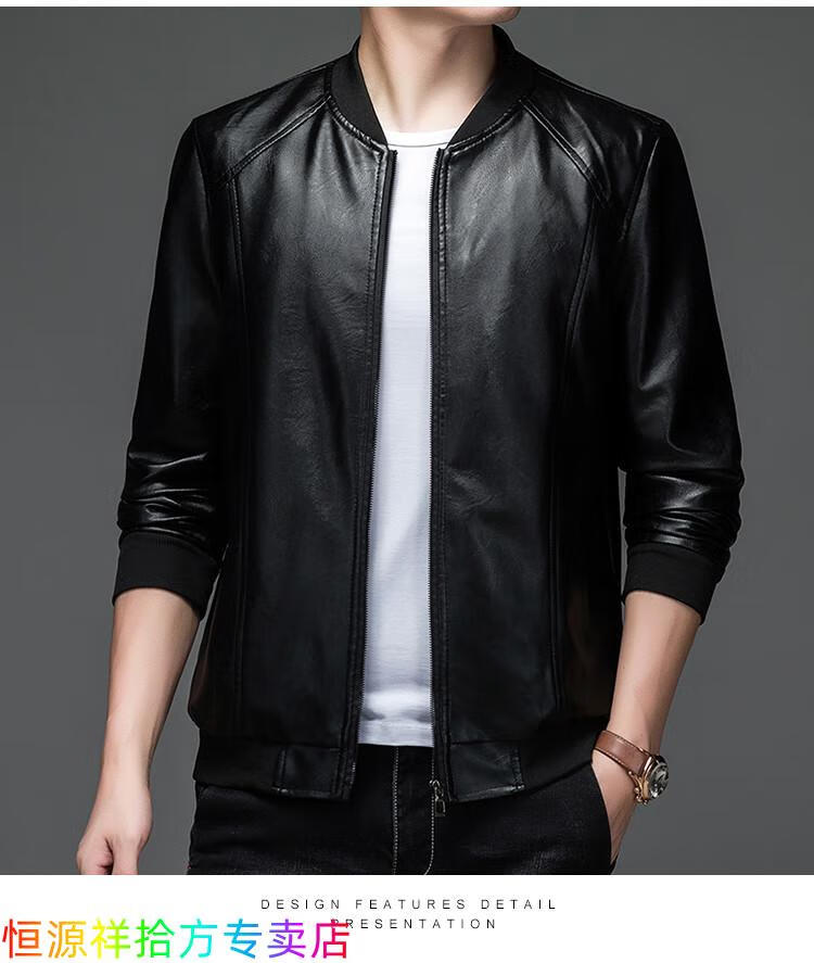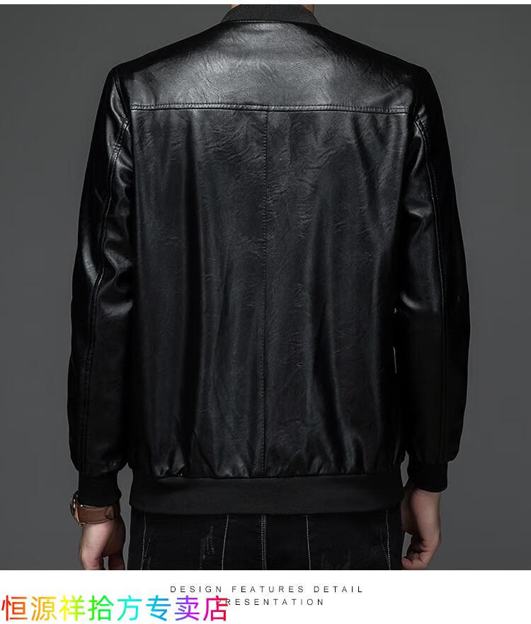 Hengyuanxiang counter autumn and winter velvet leather jackets for middle-aged and elderly men leather jackets winter men's clothes black M 170