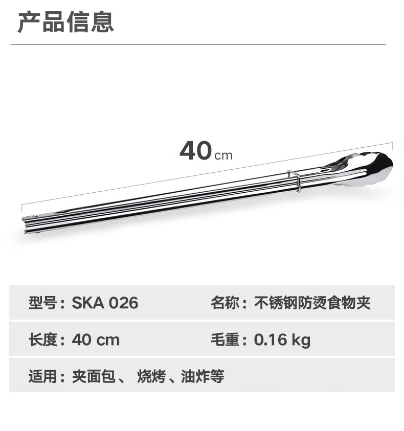 Black Ling 304 stainless steel food tongs spicy hotpot tongs 40cm hotel tableware steak barbecue tongs barbecue tongs bread tongs 40cm stainless steel extended food tongs
