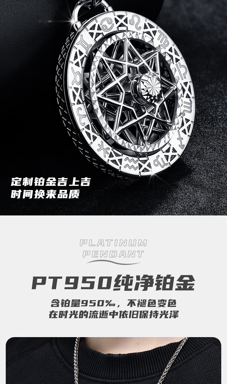 GsunG platinum twelve constellations rotating pendant for men PT950 pure platinum five-pointed star pendant for men Chinese Valentine's Day gift, priced by gram, contact before bidding