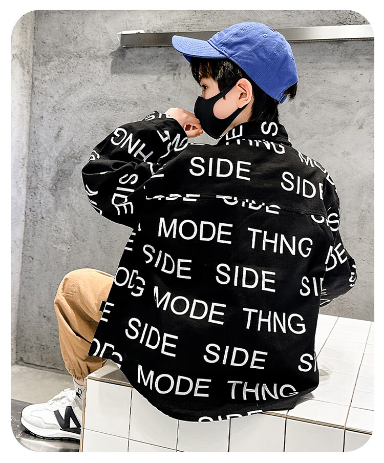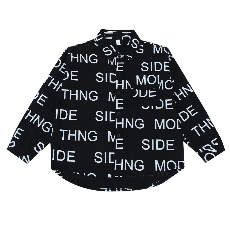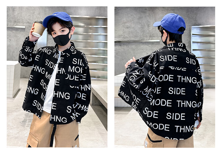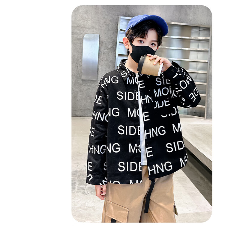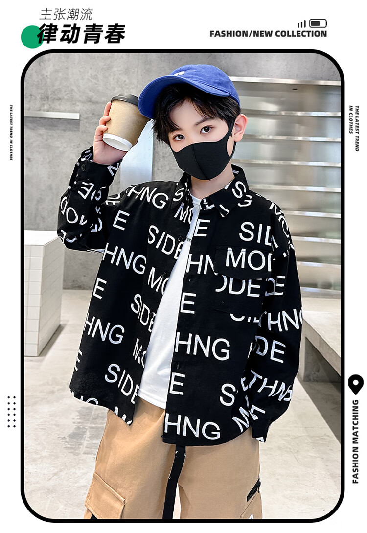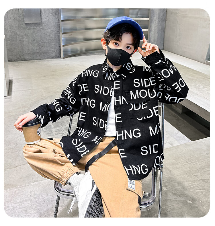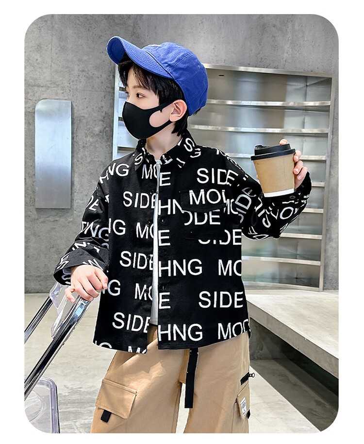 Xinyouyu 2025 new boys' shirts for spring and autumn, large children's shirts, trendy letter printed shirt tops, black 120