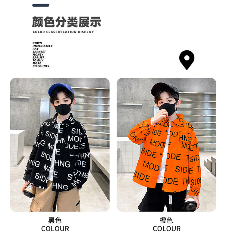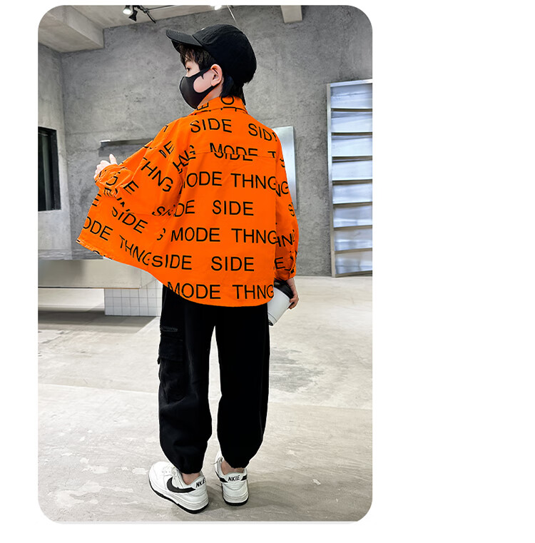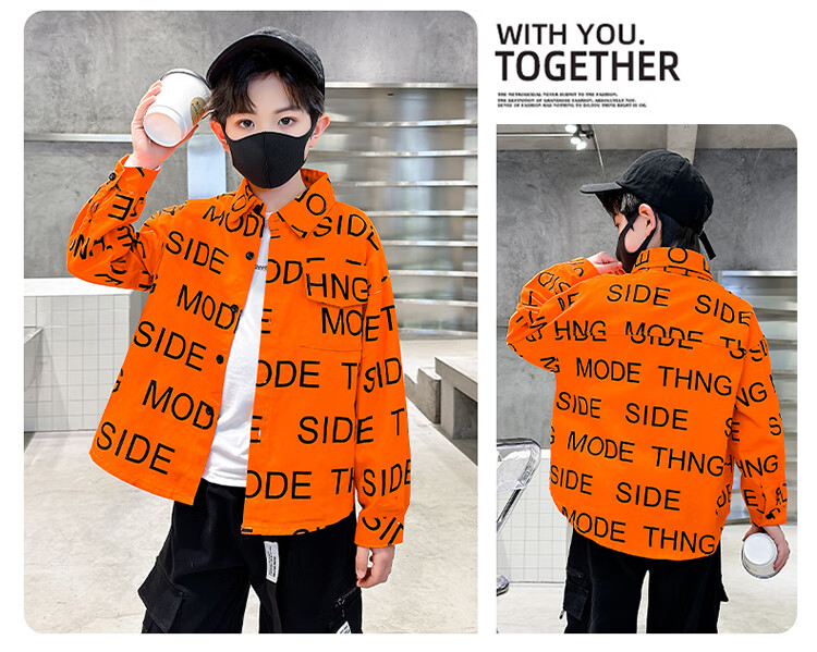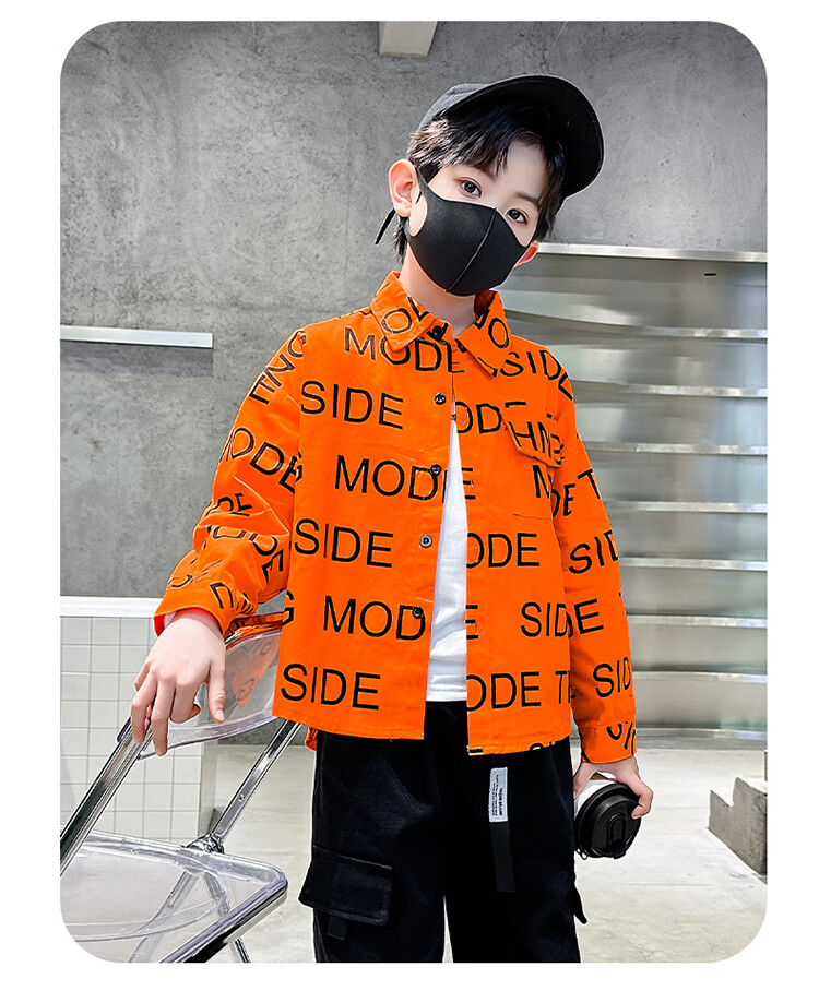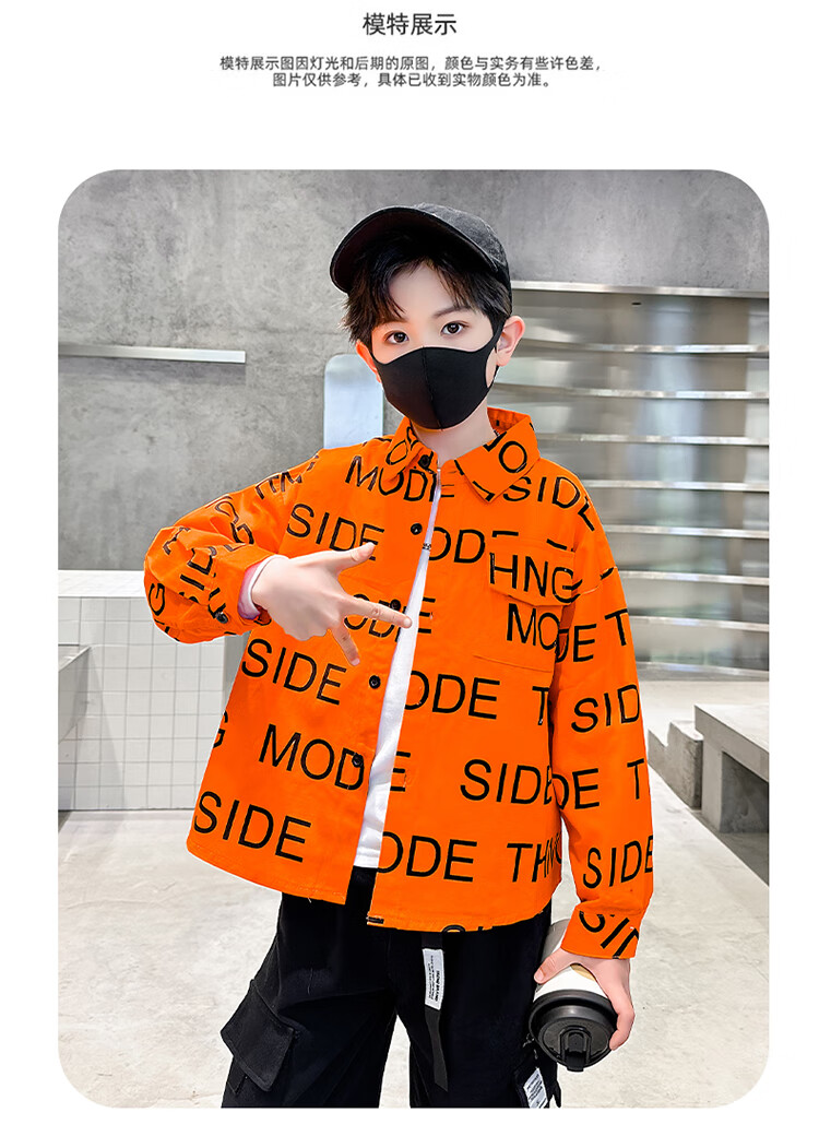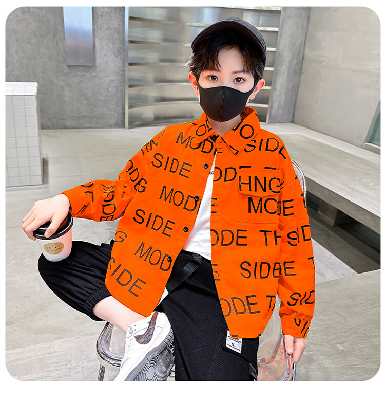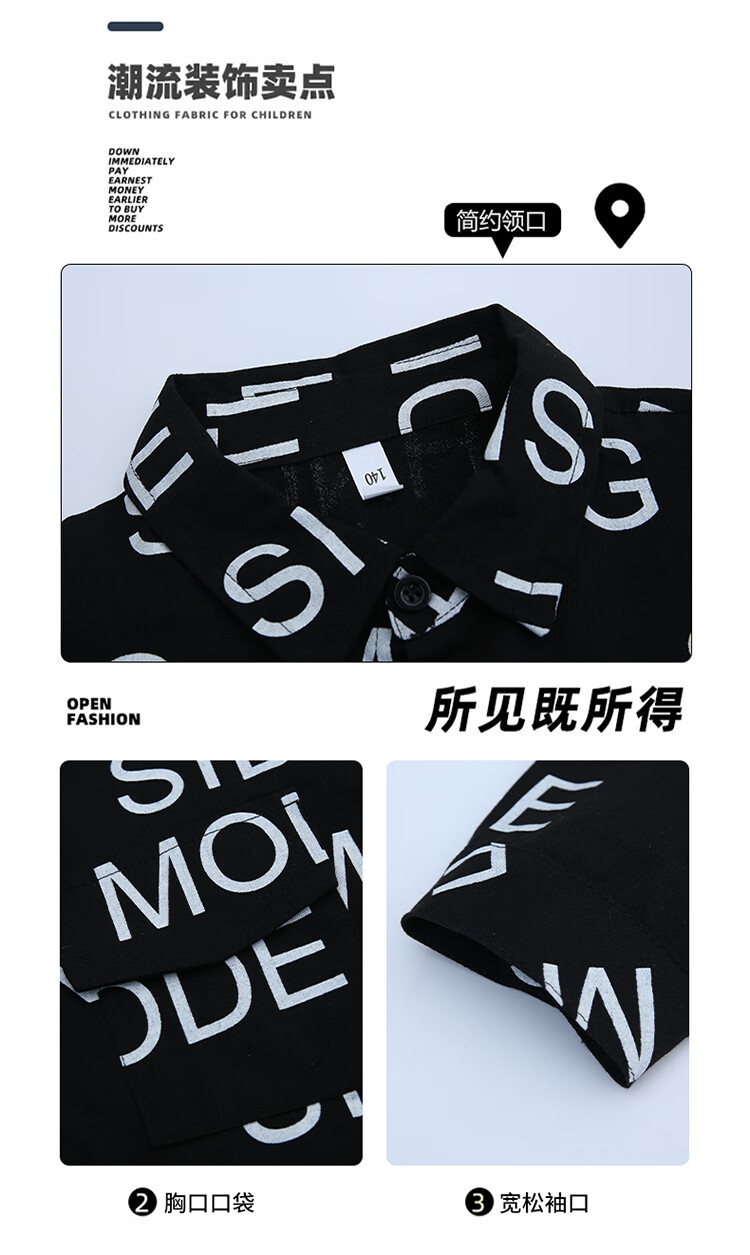 Xinyouyu 2025 new boys' shirts for spring and autumn, large children's shirts, trendy letter printed shirt tops, black 120