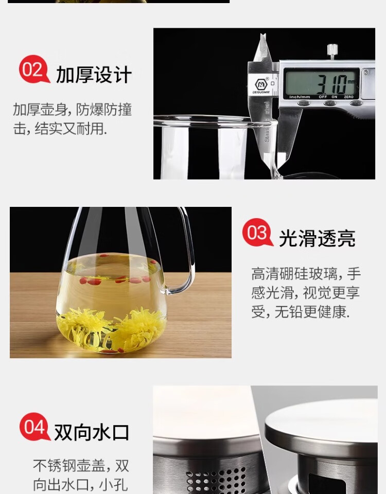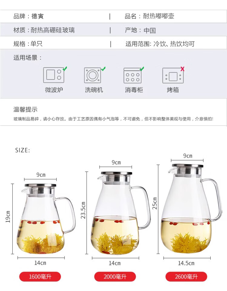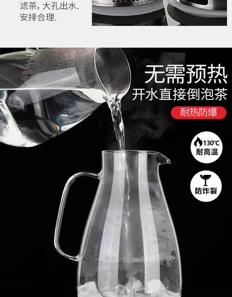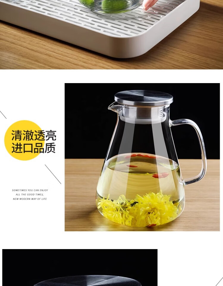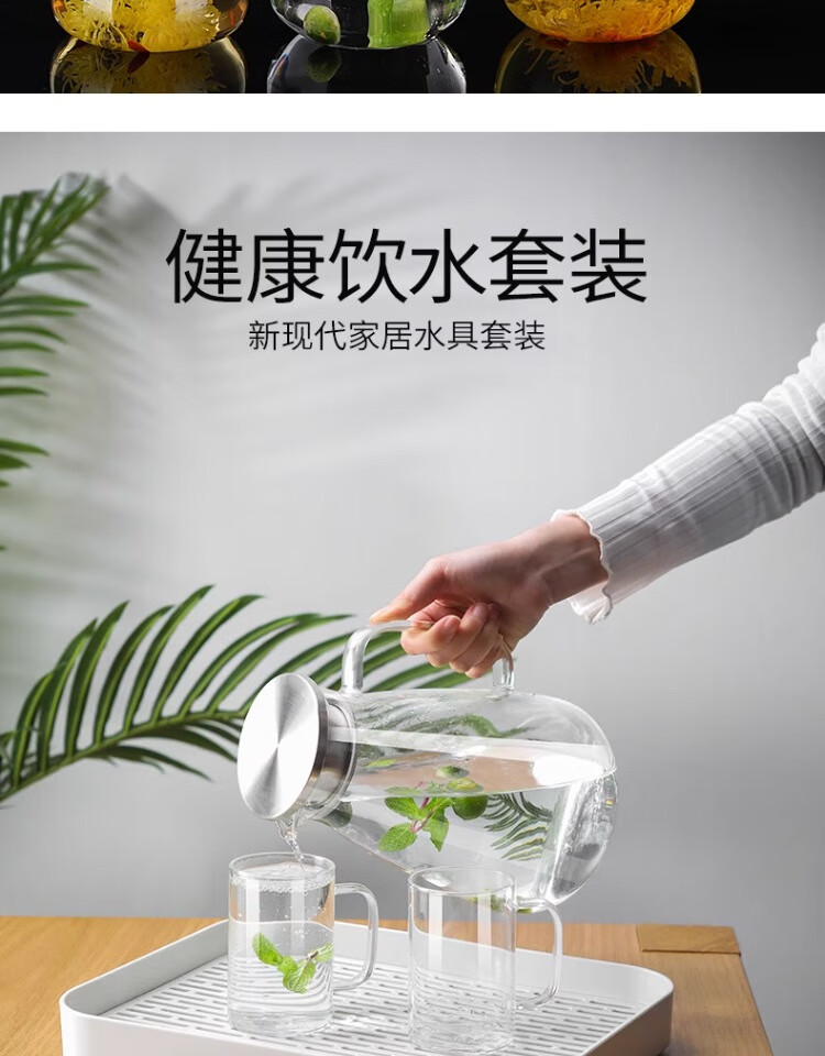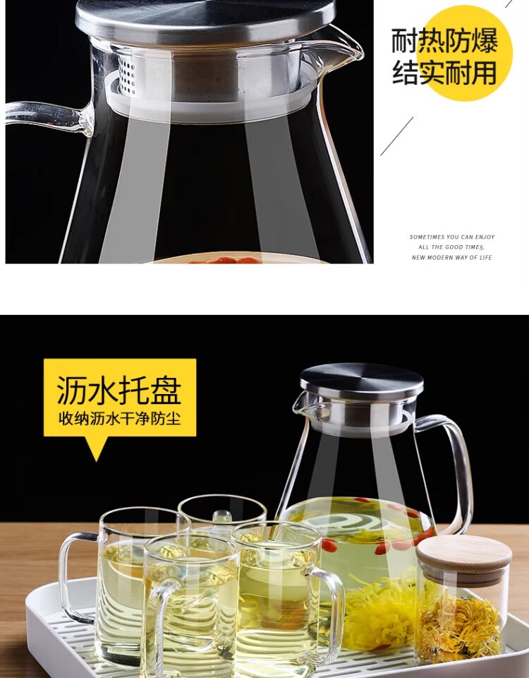 SUPOR's same high-temperature-resistant glass cold kettle household large-capacity explosion-proof cool white teapot set single Dudu kettle (heat-resistant-20-150/not 2.6L