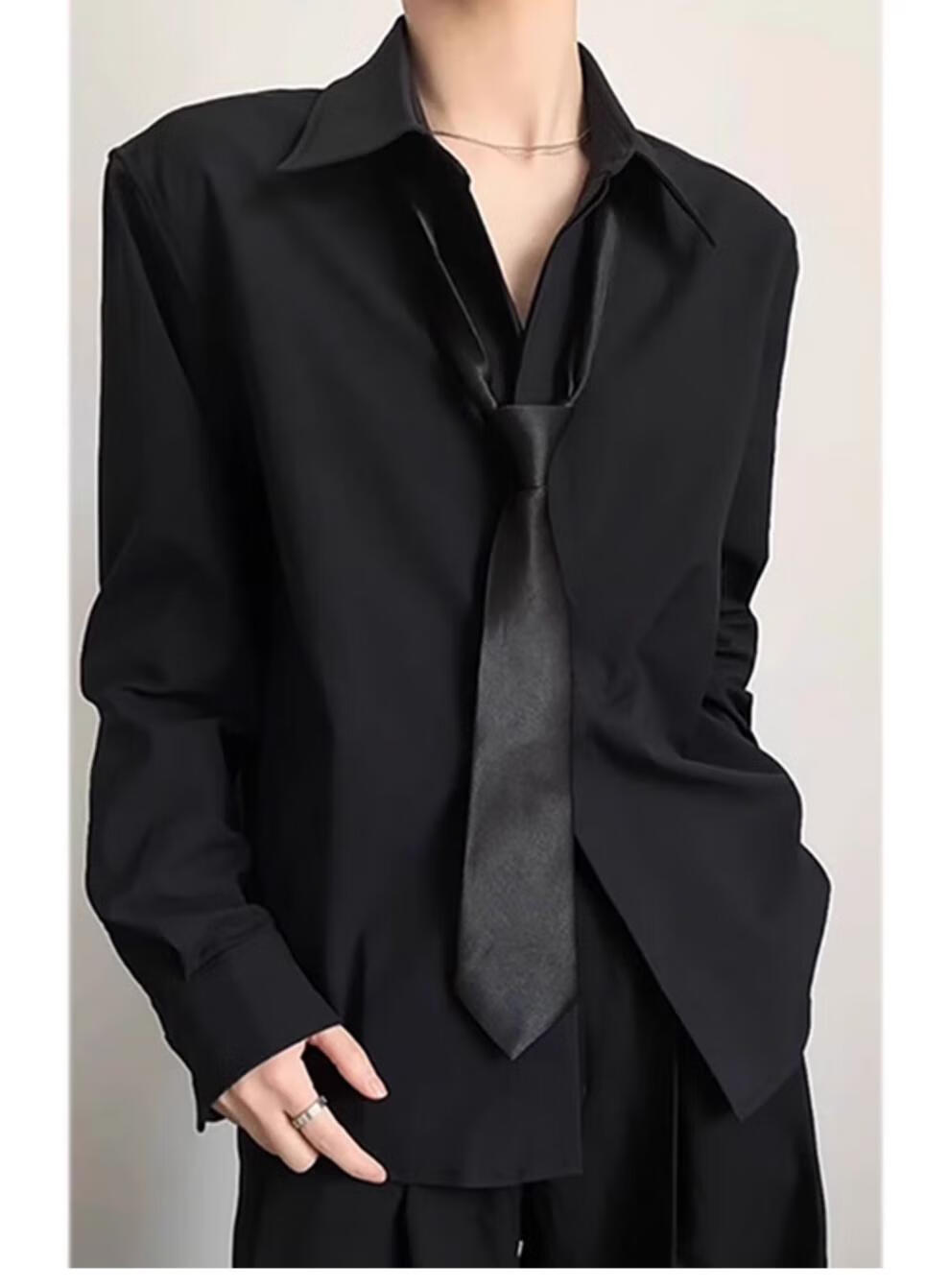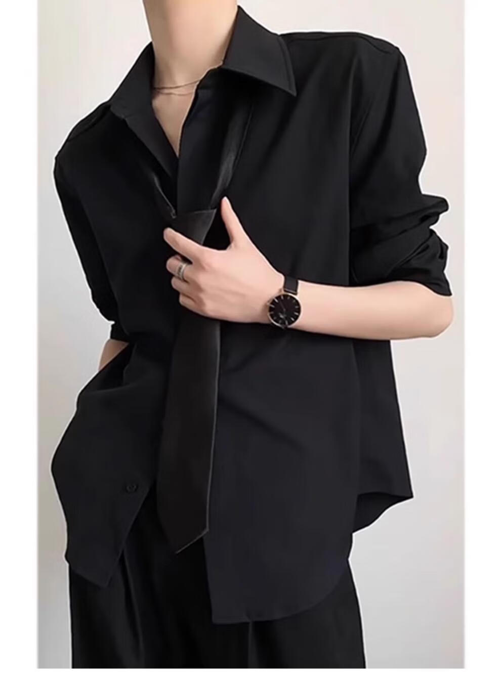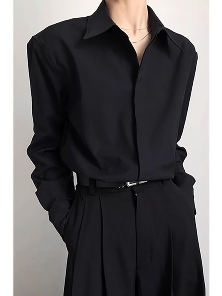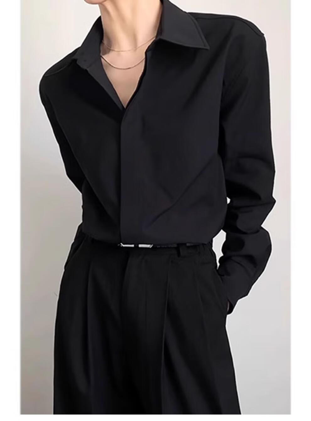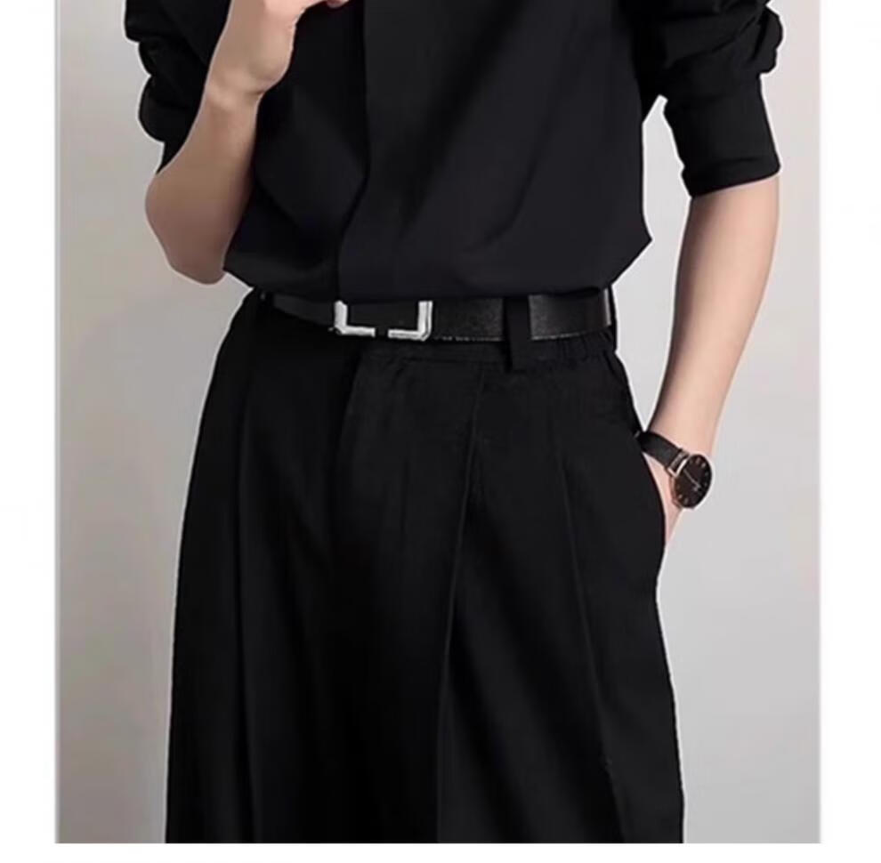 An Chuxia black Naples dk shirt for men to wear a complete set of high-end summer British yuppie style ice silk shirt two-piece set black shirt + black trousers L 120-135Jin Jin equals 0.5 kg can be worn