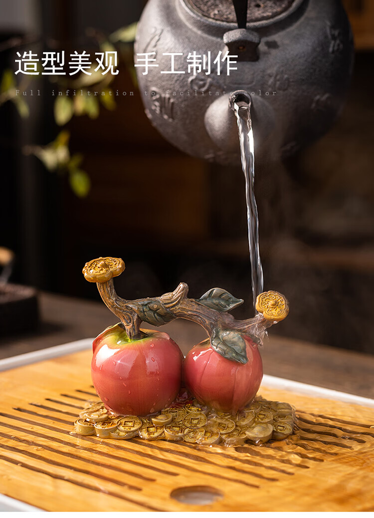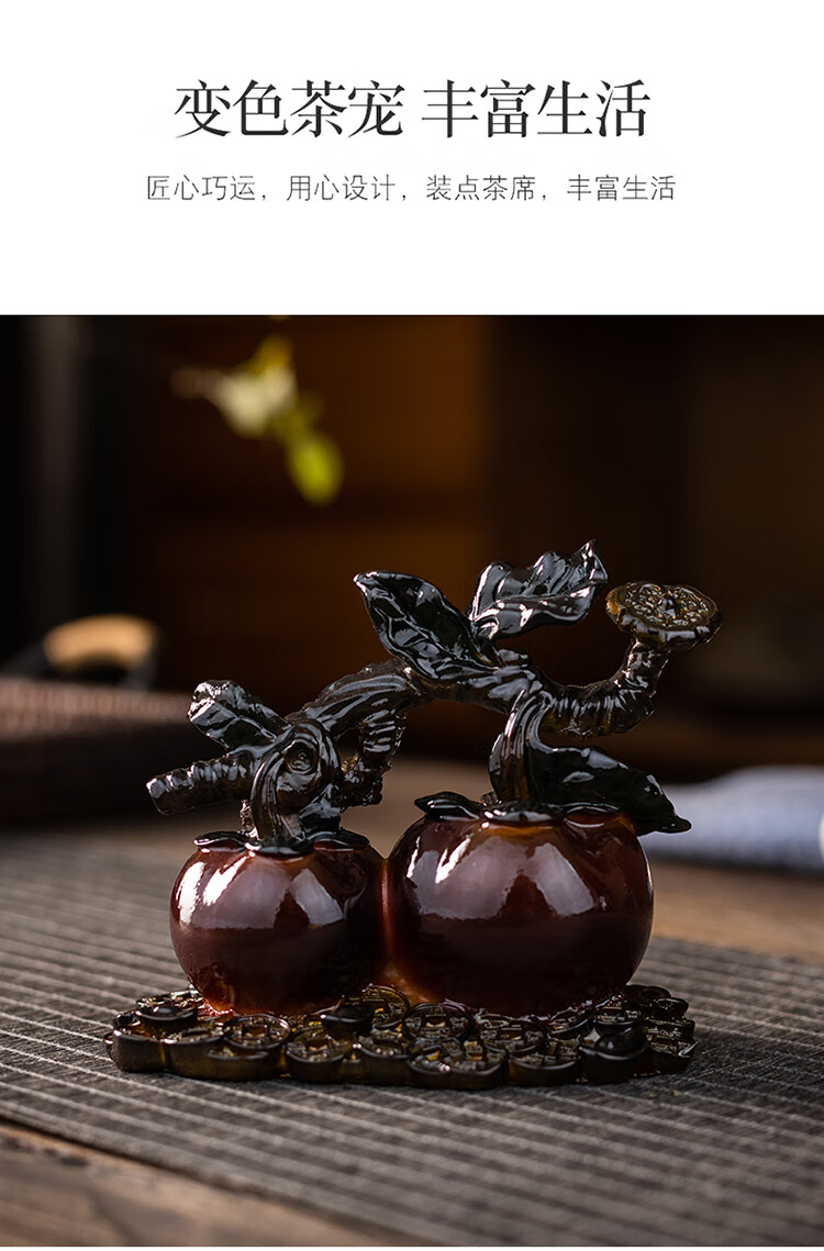 SMVP Shishi Ruyi Color Changing Tea Pet Ornament Boutique Can Raise Persimmon Pomegranate Tea Play Tea Treasure Tea Table Tea Table Tea Ceremony Shishi Ruyi (Persimmon)