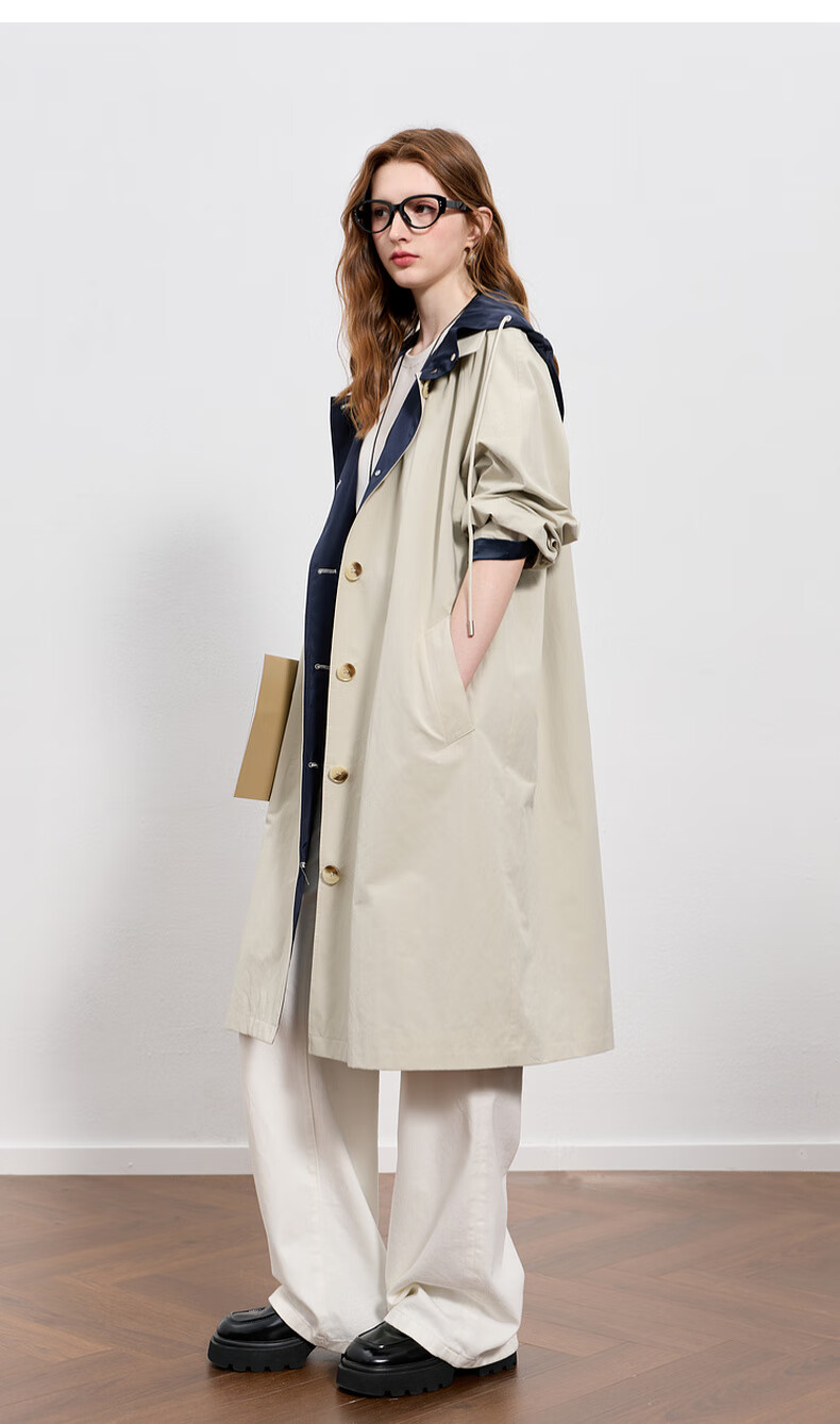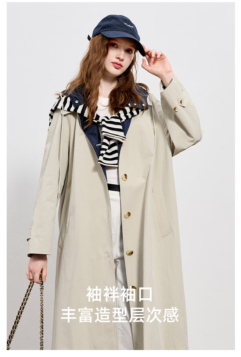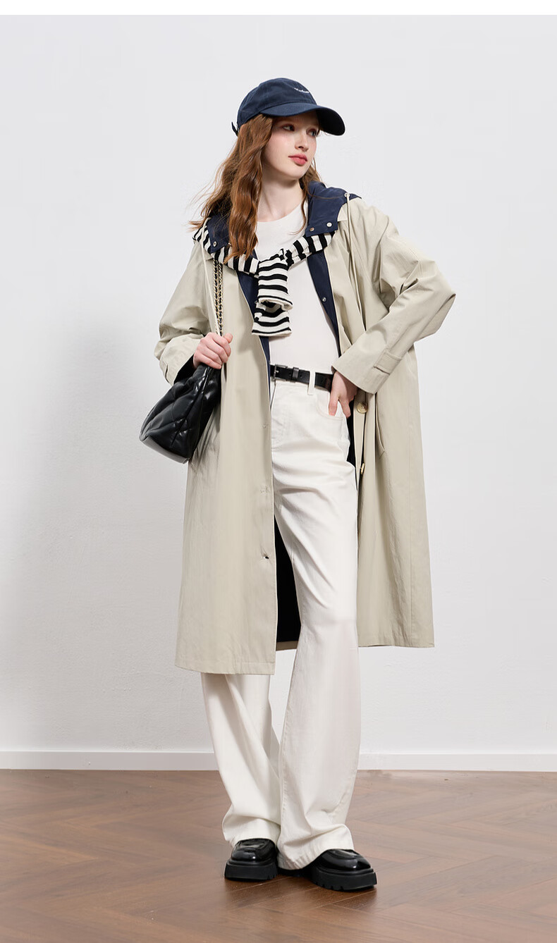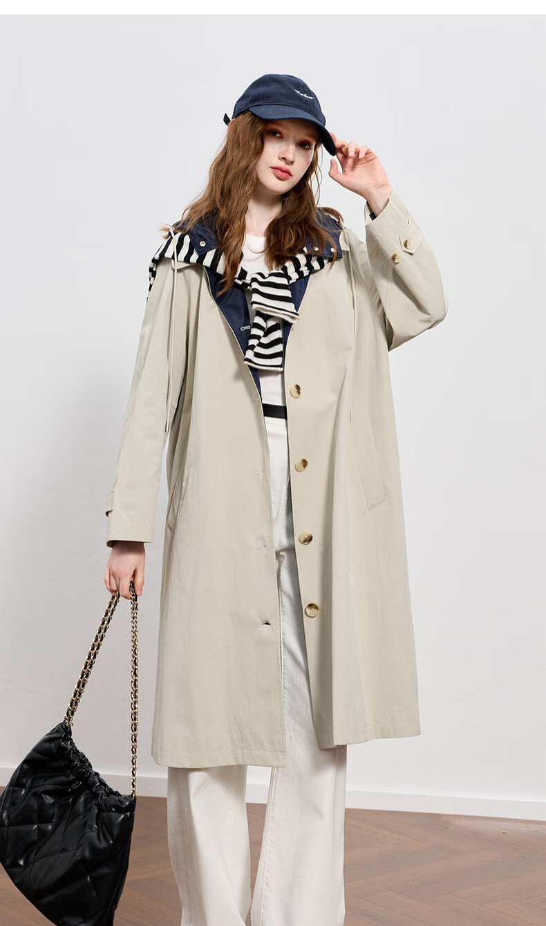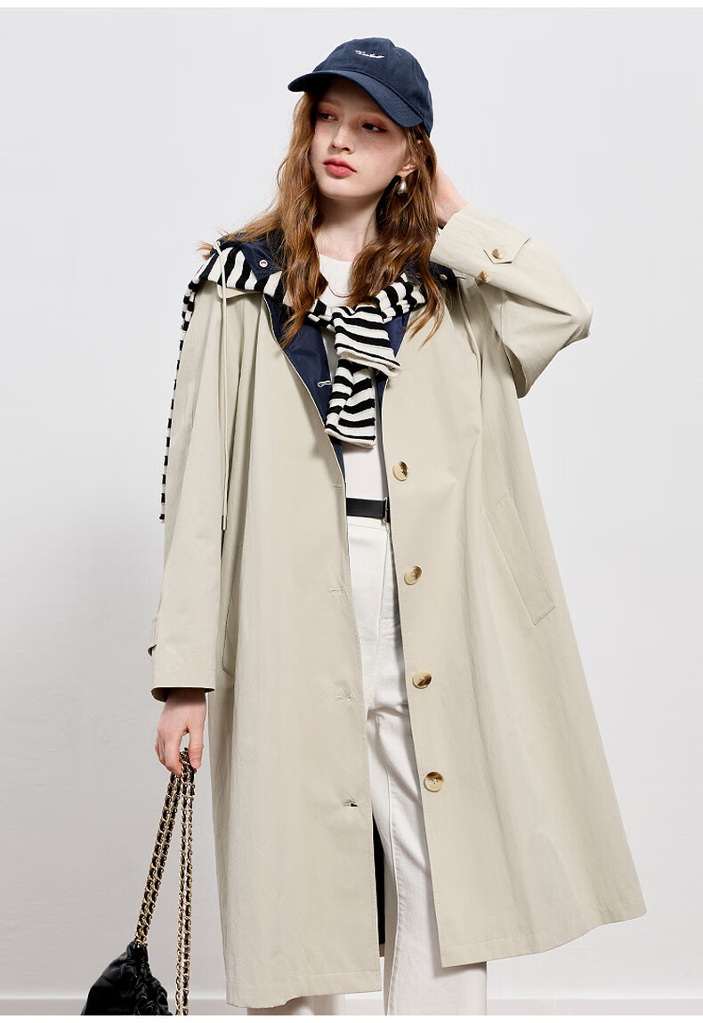 Sancai 2025 Autumn New Loose Long Hooded Windbreaker Jacket Long Sleeve Casual Temperament Commuting Simple S Light Gray Green M 160/84A