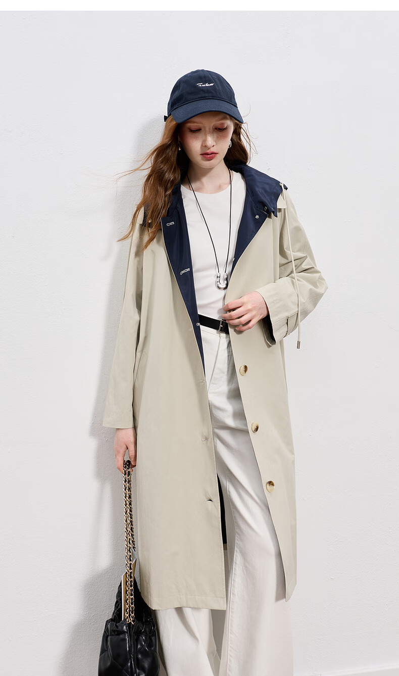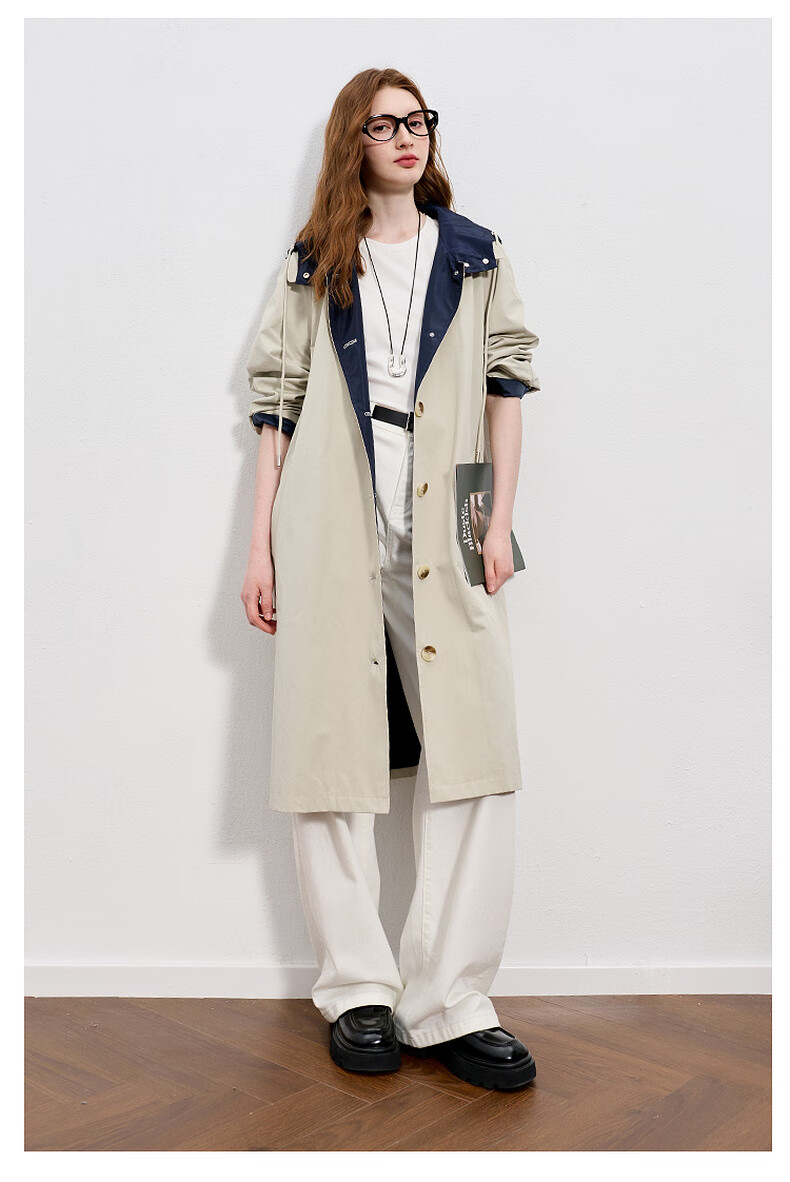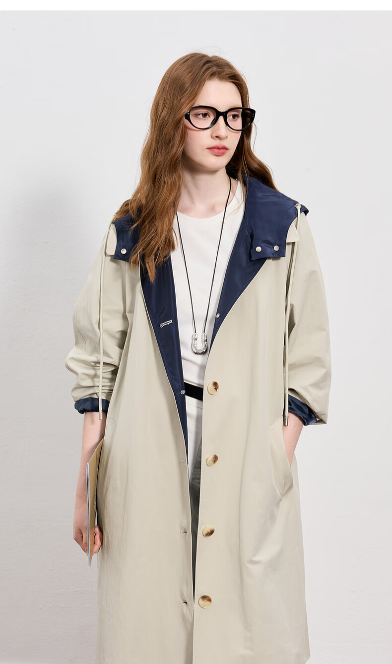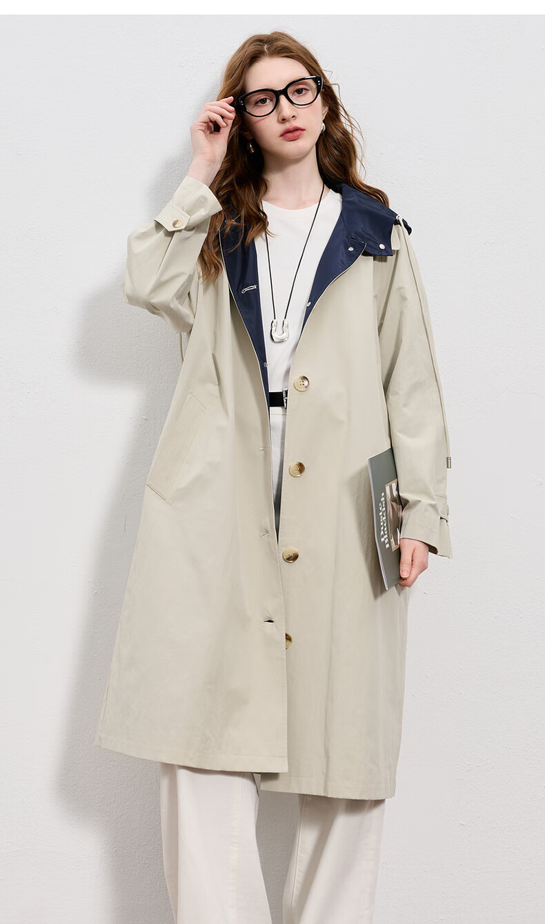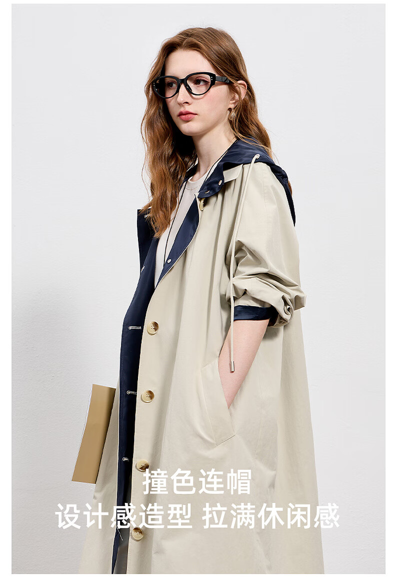 Sancai 2025 Autumn New Loose Long Hooded Windbreaker Jacket Long Sleeve Casual Temperament Commuting Simple S Light Gray Green M 160/84A