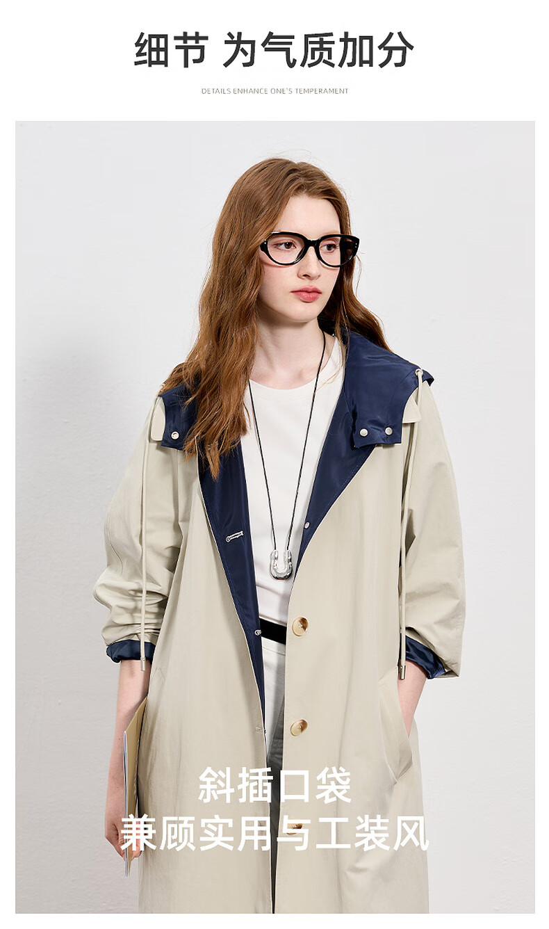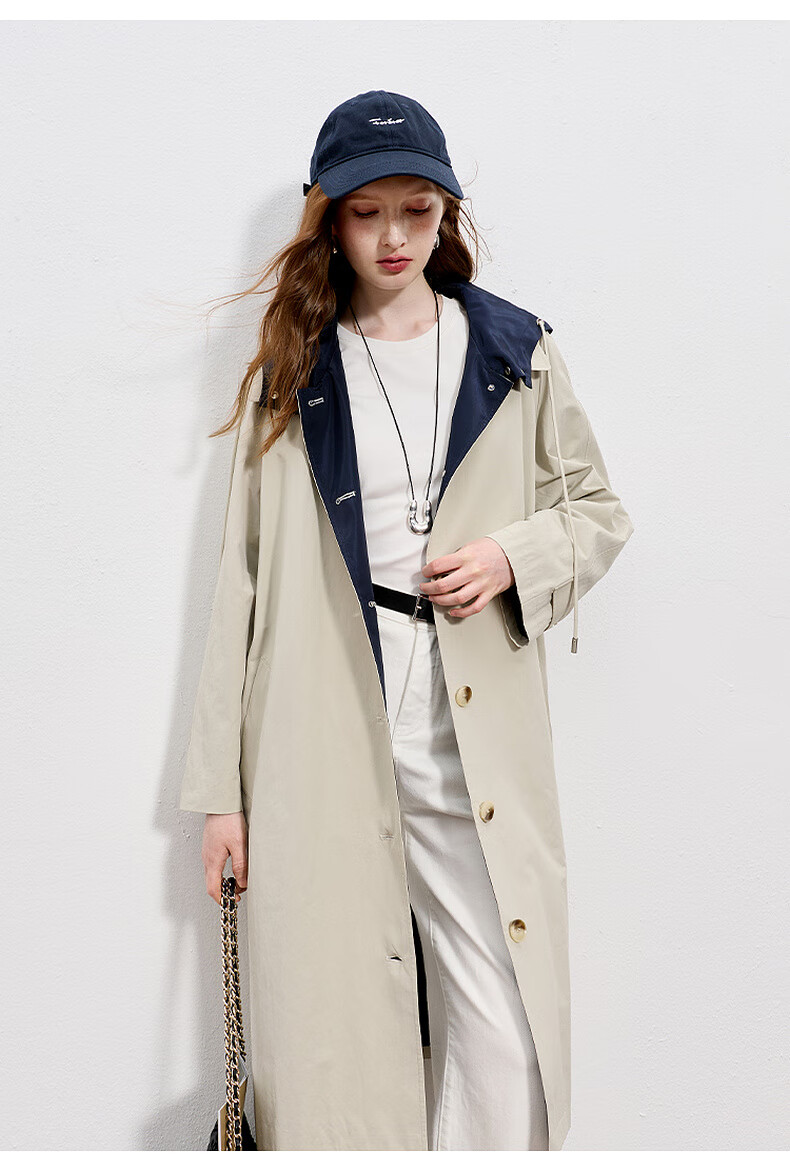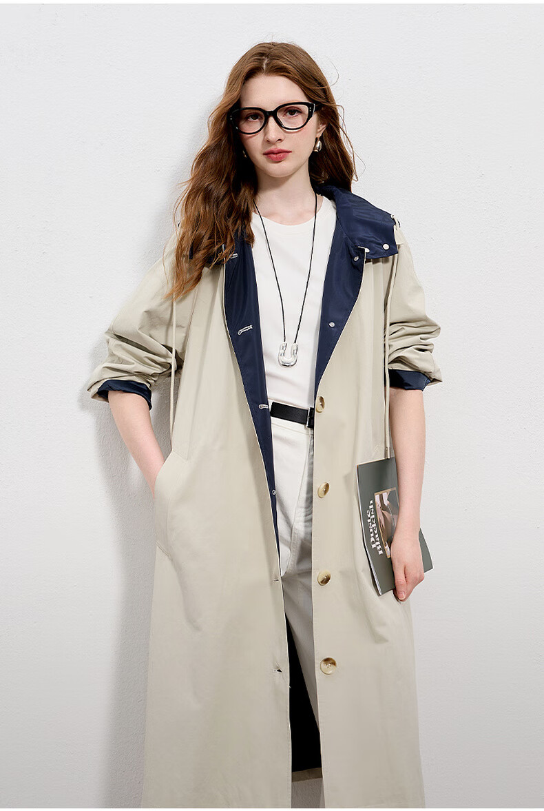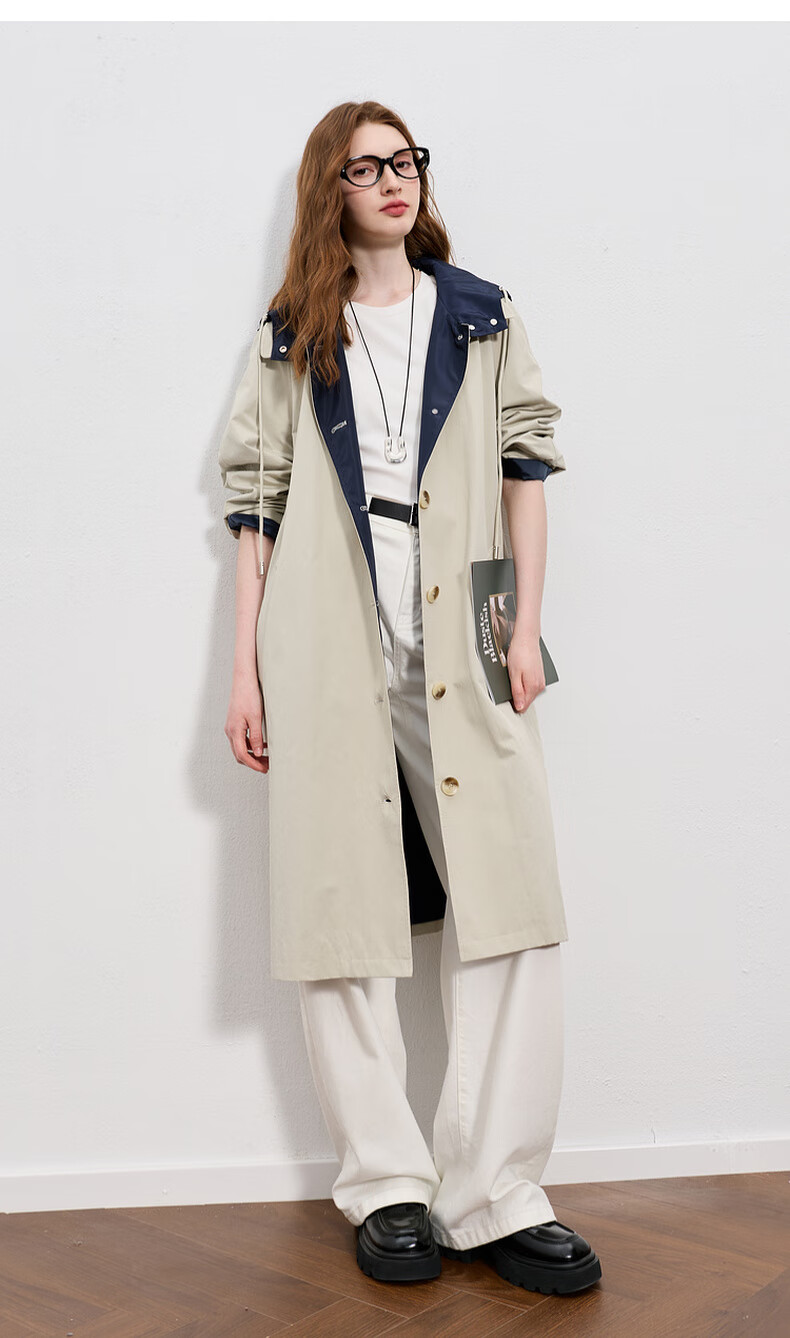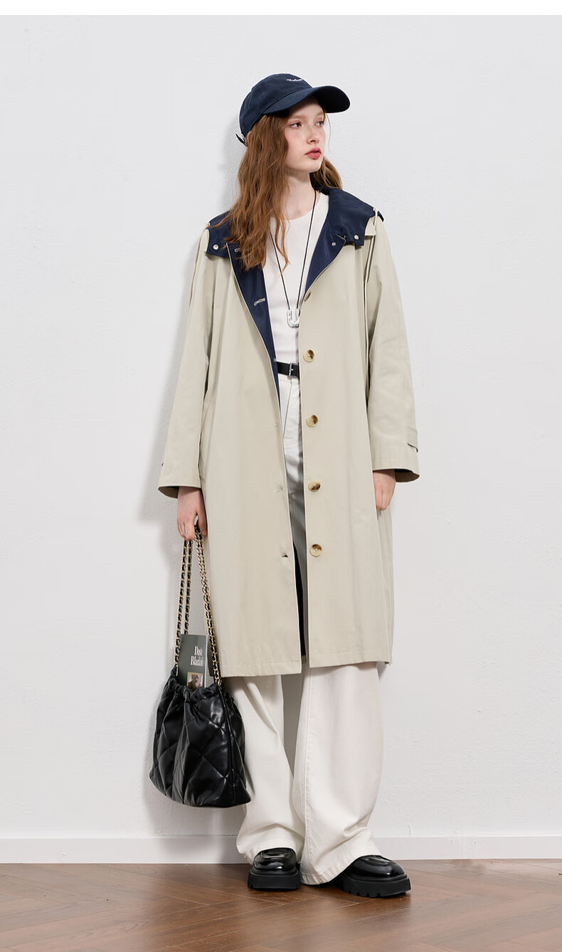 Sancai 2025 Autumn New Loose Long Hooded Windbreaker Jacket Long Sleeve Casual Temperament Commuting Simple S Light Gray Green M 160/84A