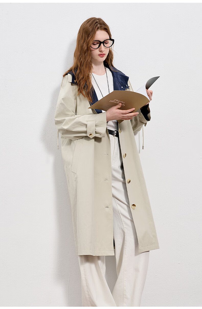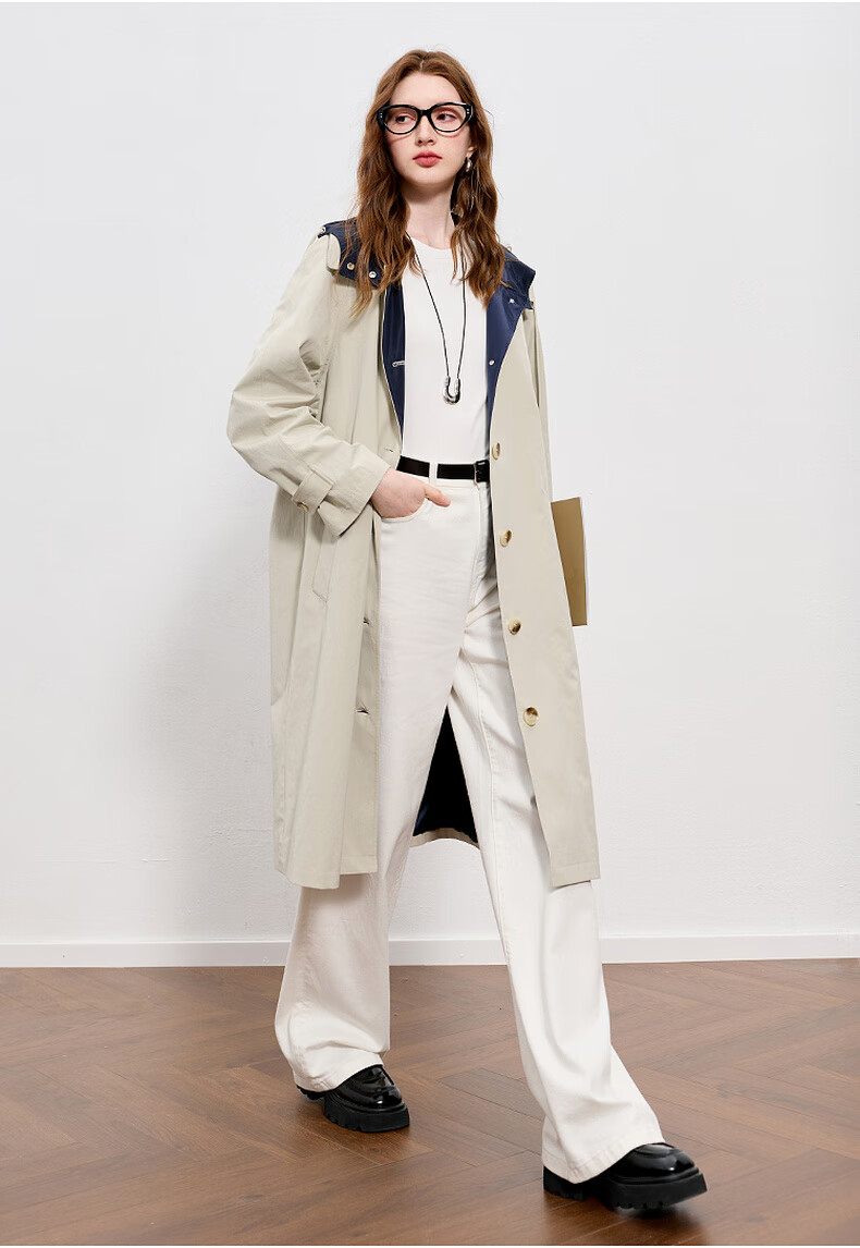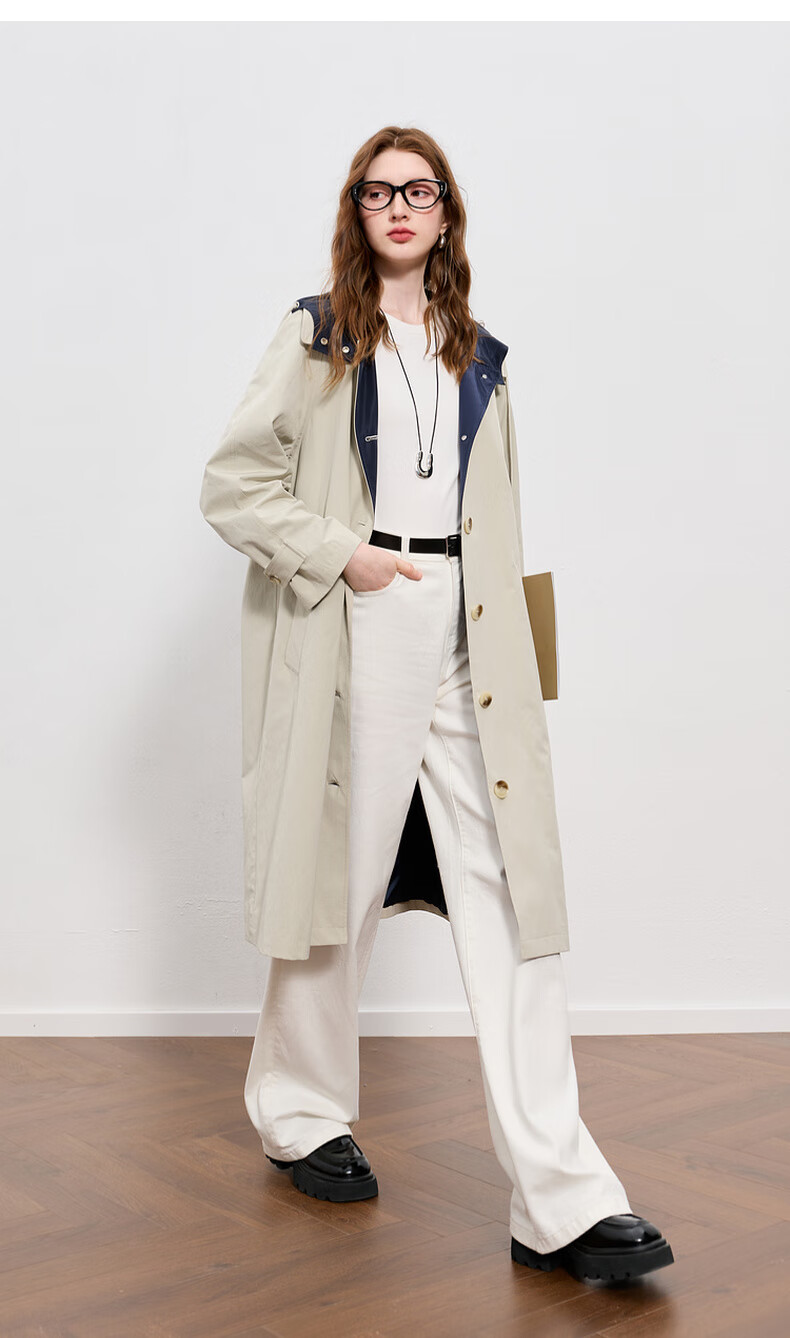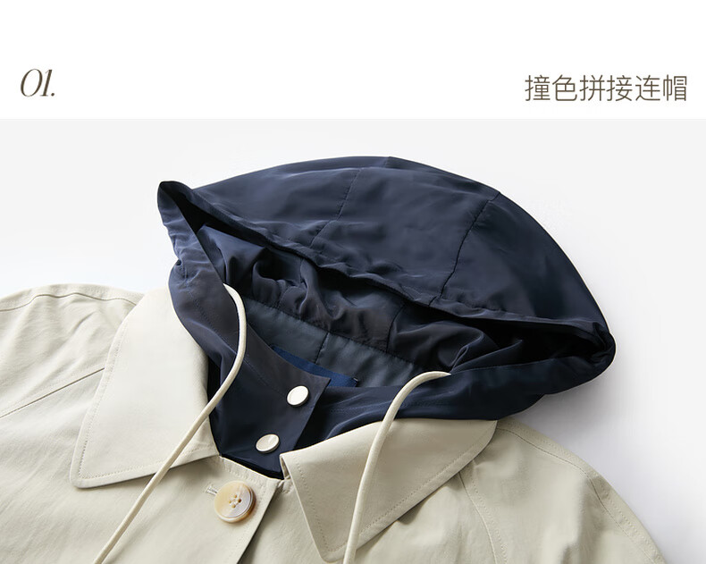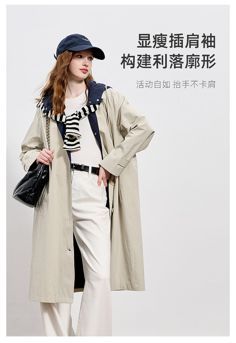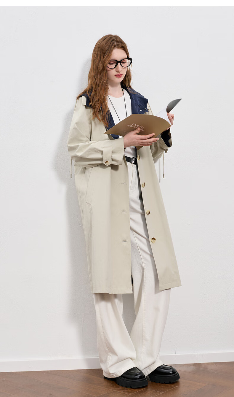 Sancai 2025 Autumn New Loose Long Hooded Windbreaker Jacket Long Sleeve Casual Temperament Commuting Simple S Light Gray Green M 160/84A