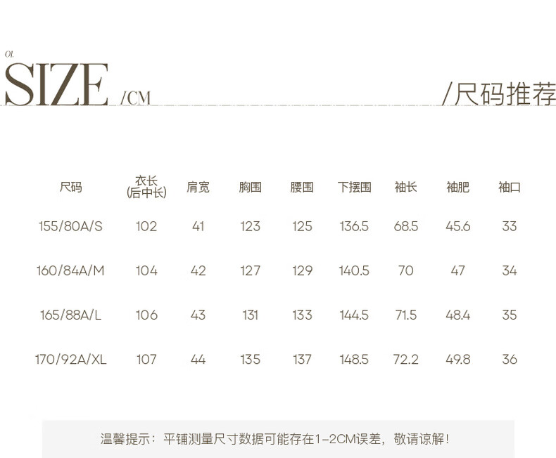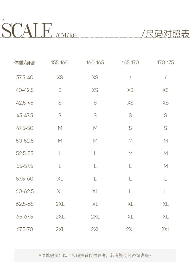 China (cm) 160-165/84-86 165-170 / 88-90 167-172 / 92-96 168-173 / 98-102 170-176 / 106-110