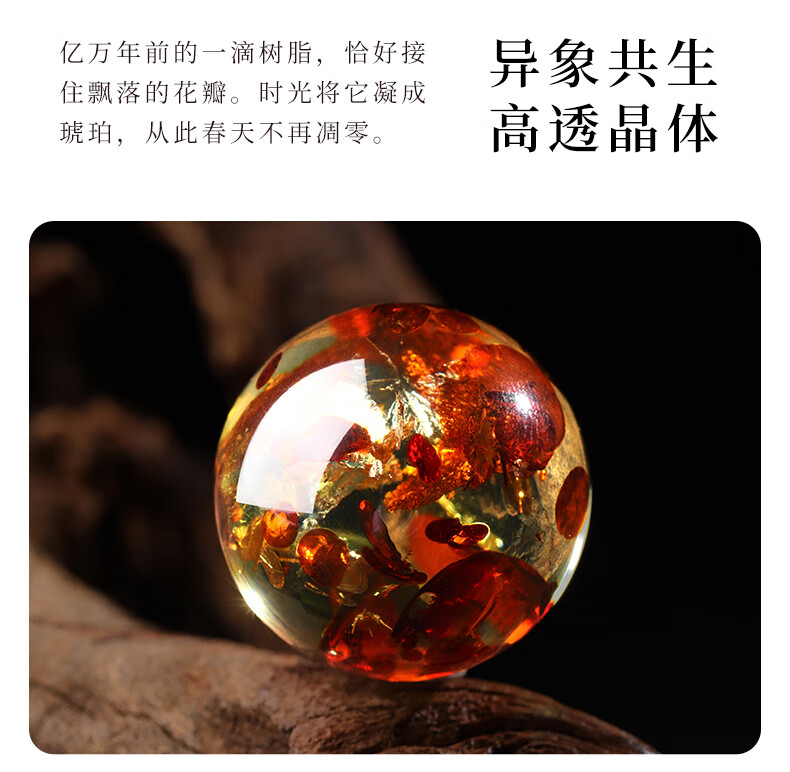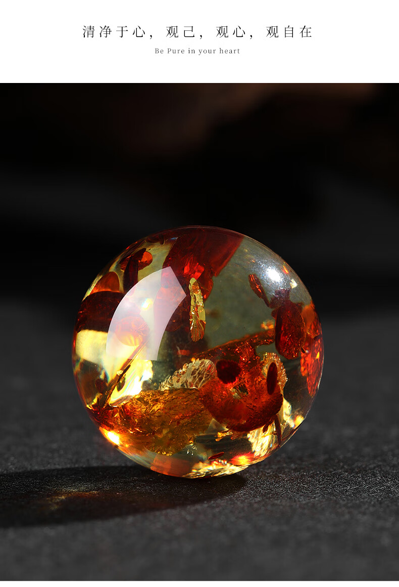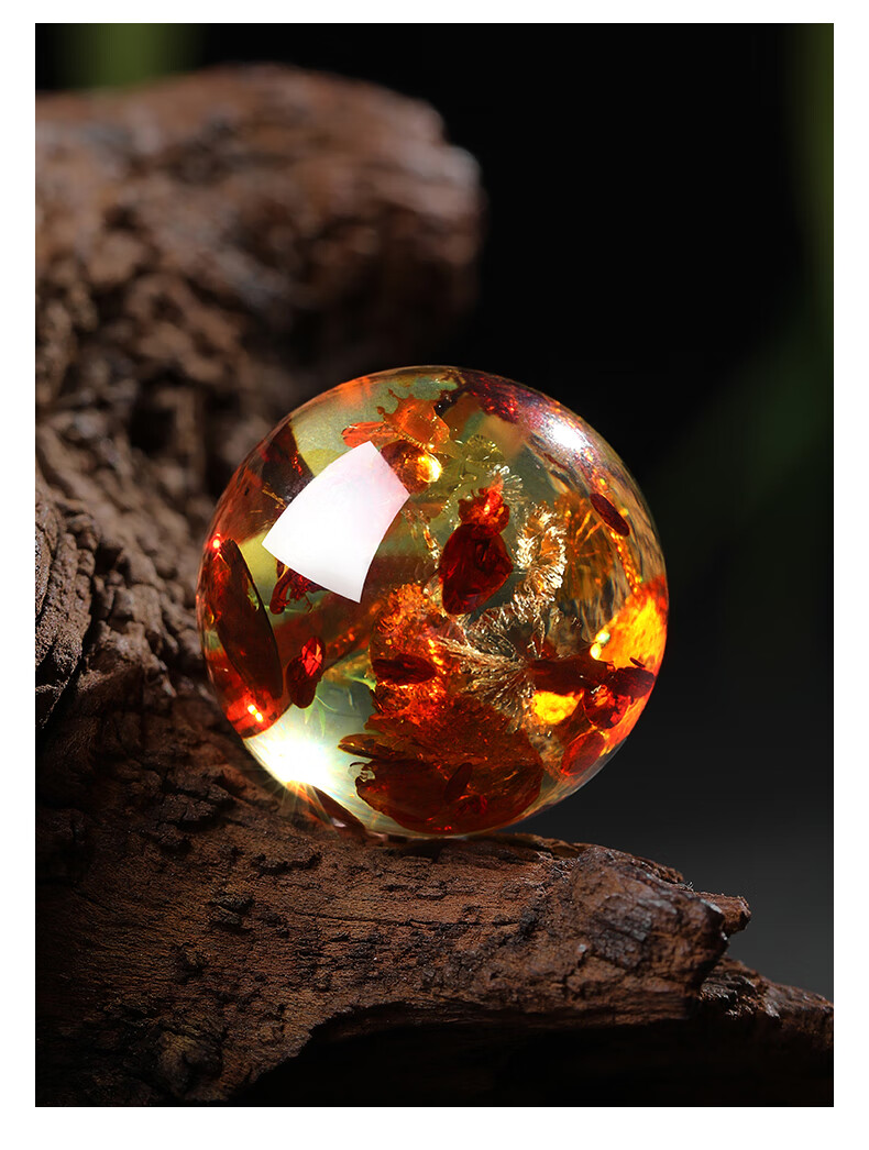 Ten-leaf natural flower amber single bead, amber beeswax loose bead, raw mineral round bead, multi-bead Buddha bead bracelet, star and moon bodhi, cultural toy accessories, collection grade 8mm single bead (selected)