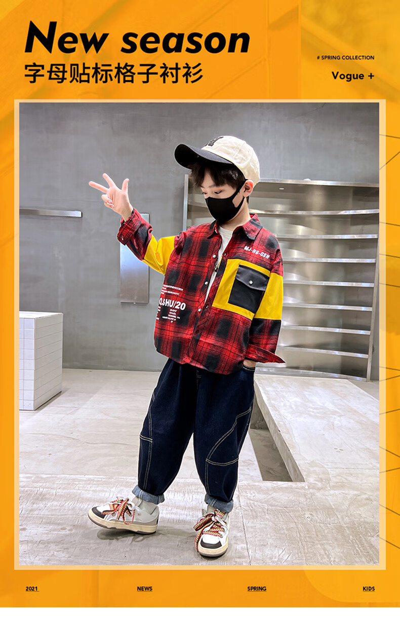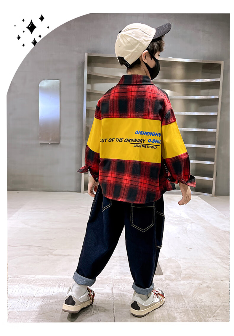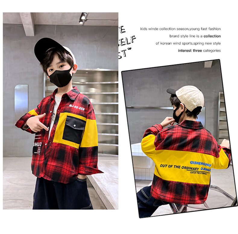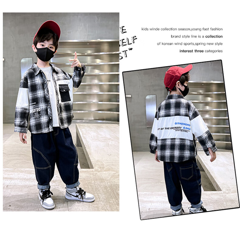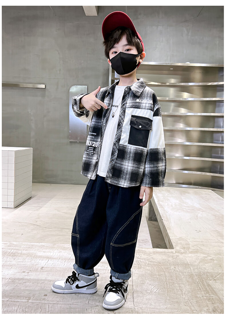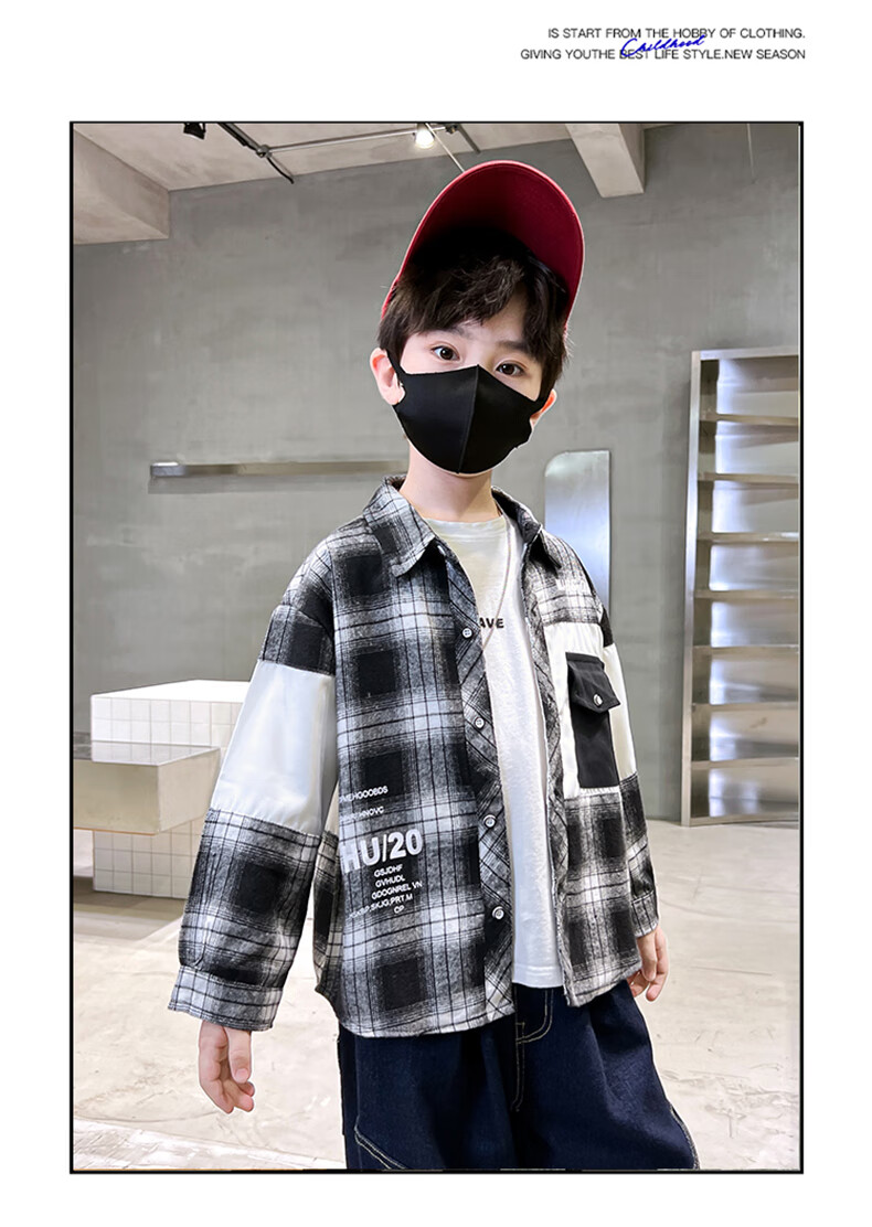 Xinyouyu Boys' Shirt 2025 New Spring and Autumn Clothes for Big Children's Shirts Fashionable Plaid Tops Trendy and Cool Outfits Black 170