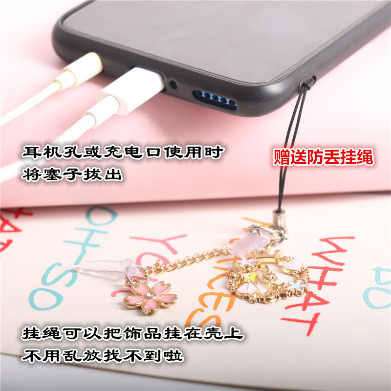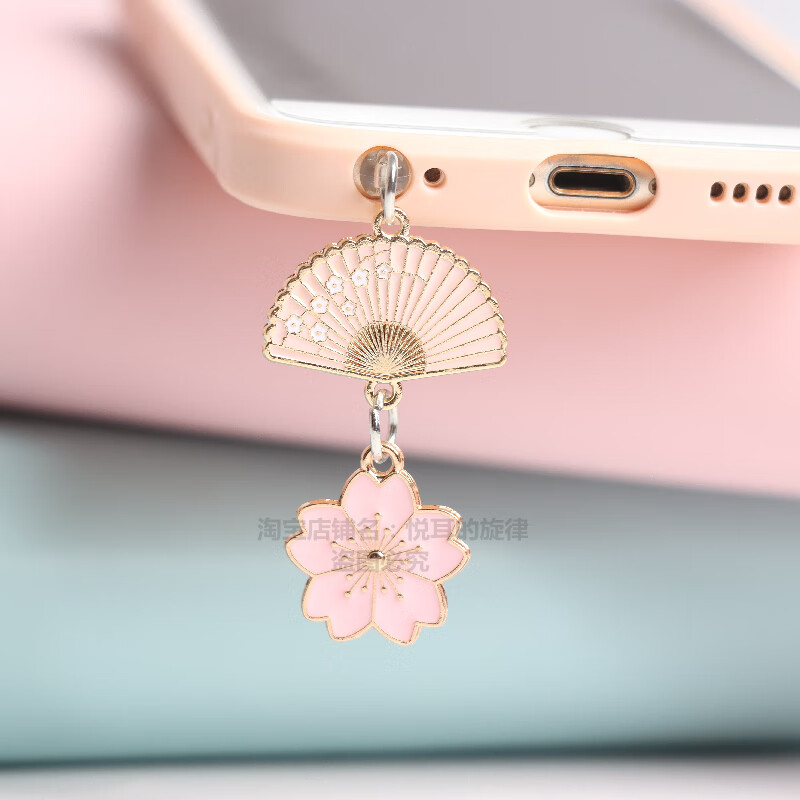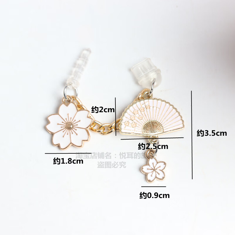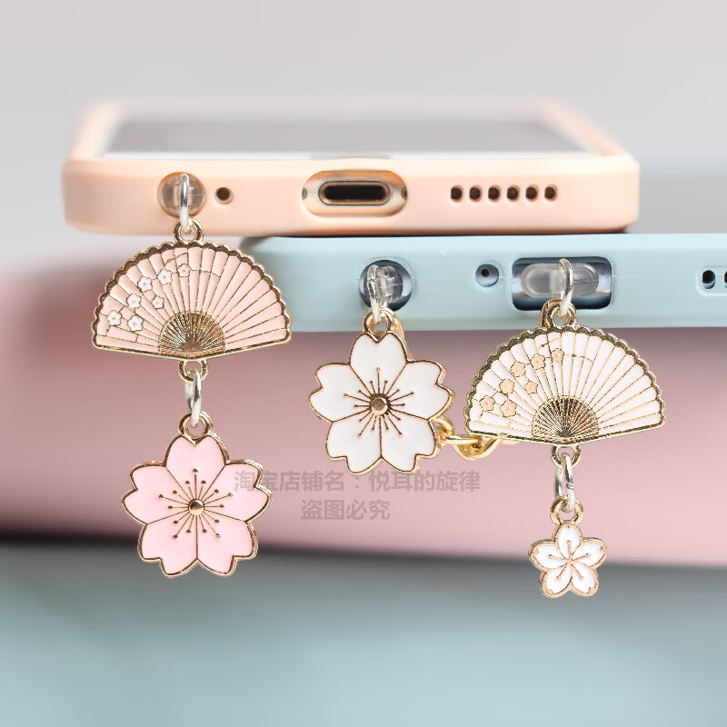 Kaooseen retro fan size cherry blossom mobile phone charging port earphone hole dust plug pendant choke plug male and female couple single type-c oval charging plug A white fan big cherry blossom