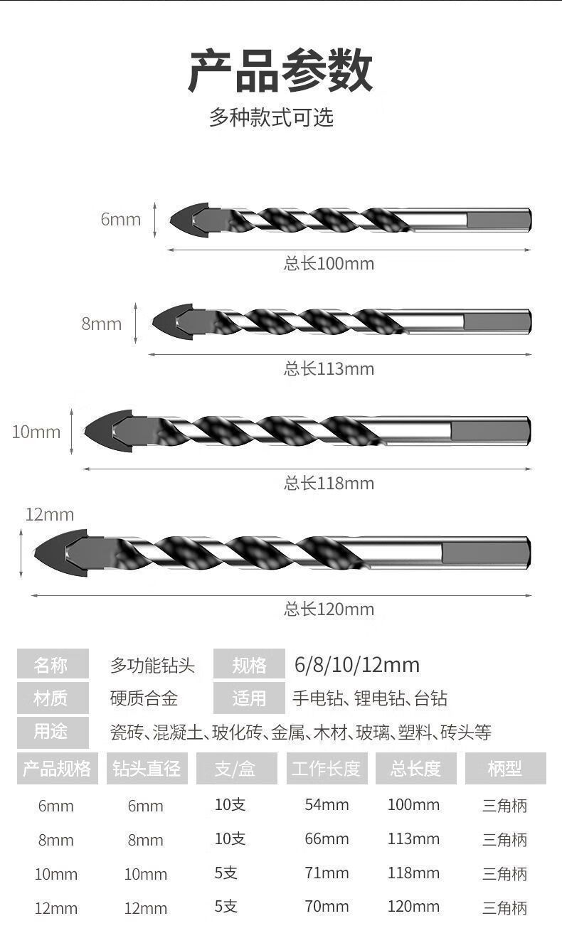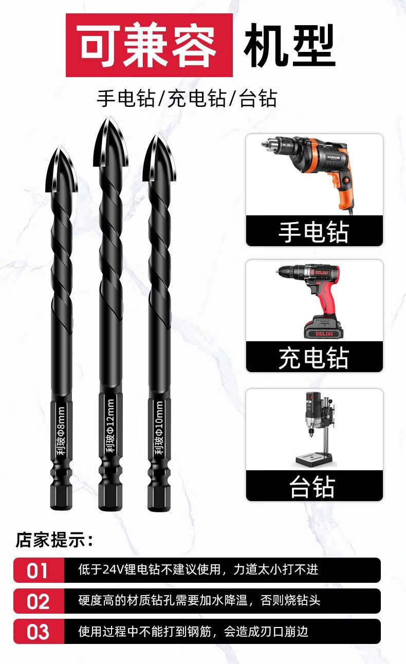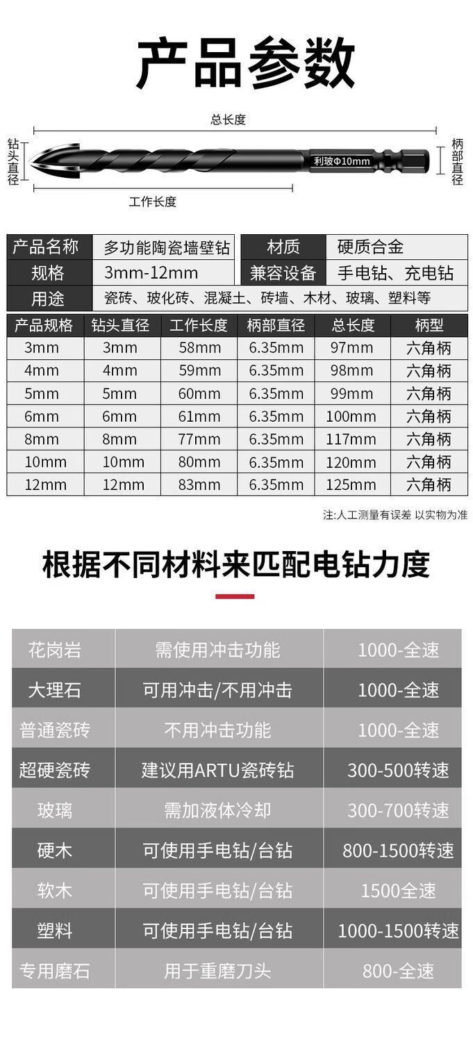 Vinoa high-hardness ceramic tile cross drill bit ceramic glass concrete marble cement wall drilling hand electric drill bit 6mm 10 pieces super sharp cross drill can dry drill full ceramic tile ferroconcrete
