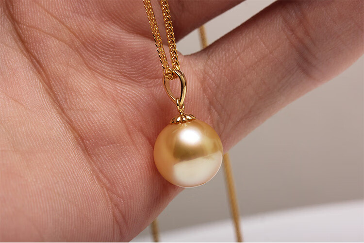 DRJEFUN South Sea gold bead pendant natural freshwater pearl 18K gold thick gold version pendant extremely bright untoned natural gold South 14.5-15mm