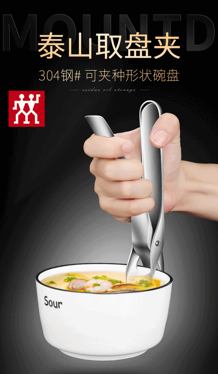 Zwilling (ZWILLING) German 304 stainless steel anti-scalding clip, bowl clip, kitchen non-slip clip, casserole plate steaming clip, 304 anti-scalding clip 1 piece